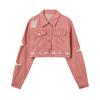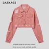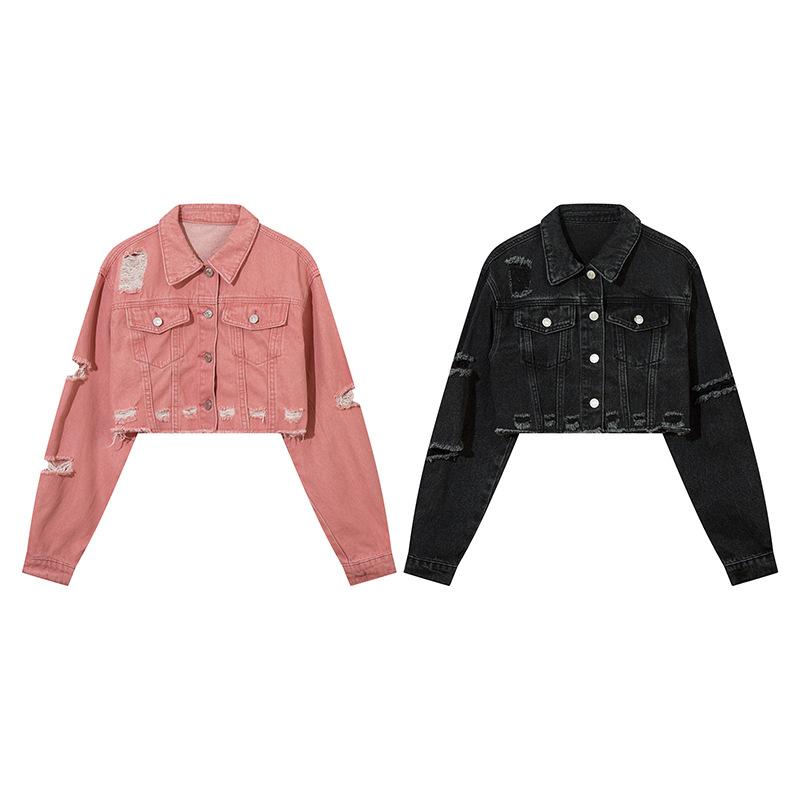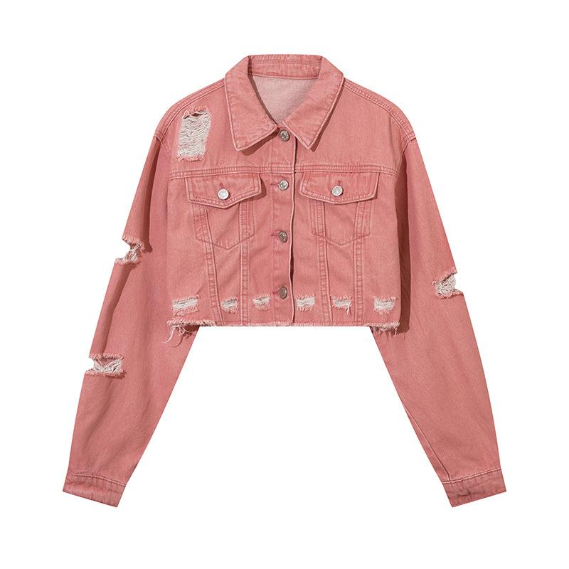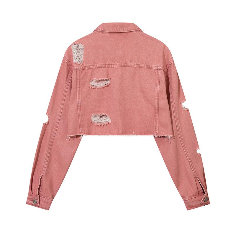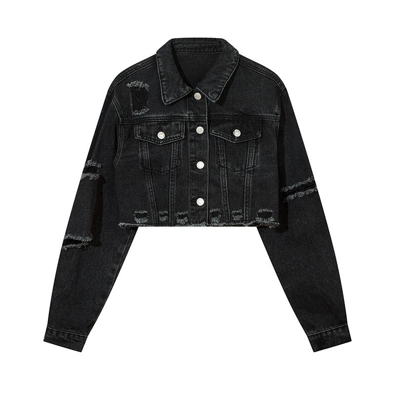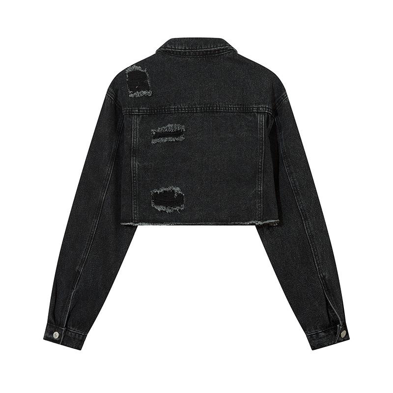 Casaco Jeans Retrô Lavado Velho Rasgado Estilo Americano Moda Feminina Marca Solto Casual Combina com Tudo Jaqueta Curta Hot Girl