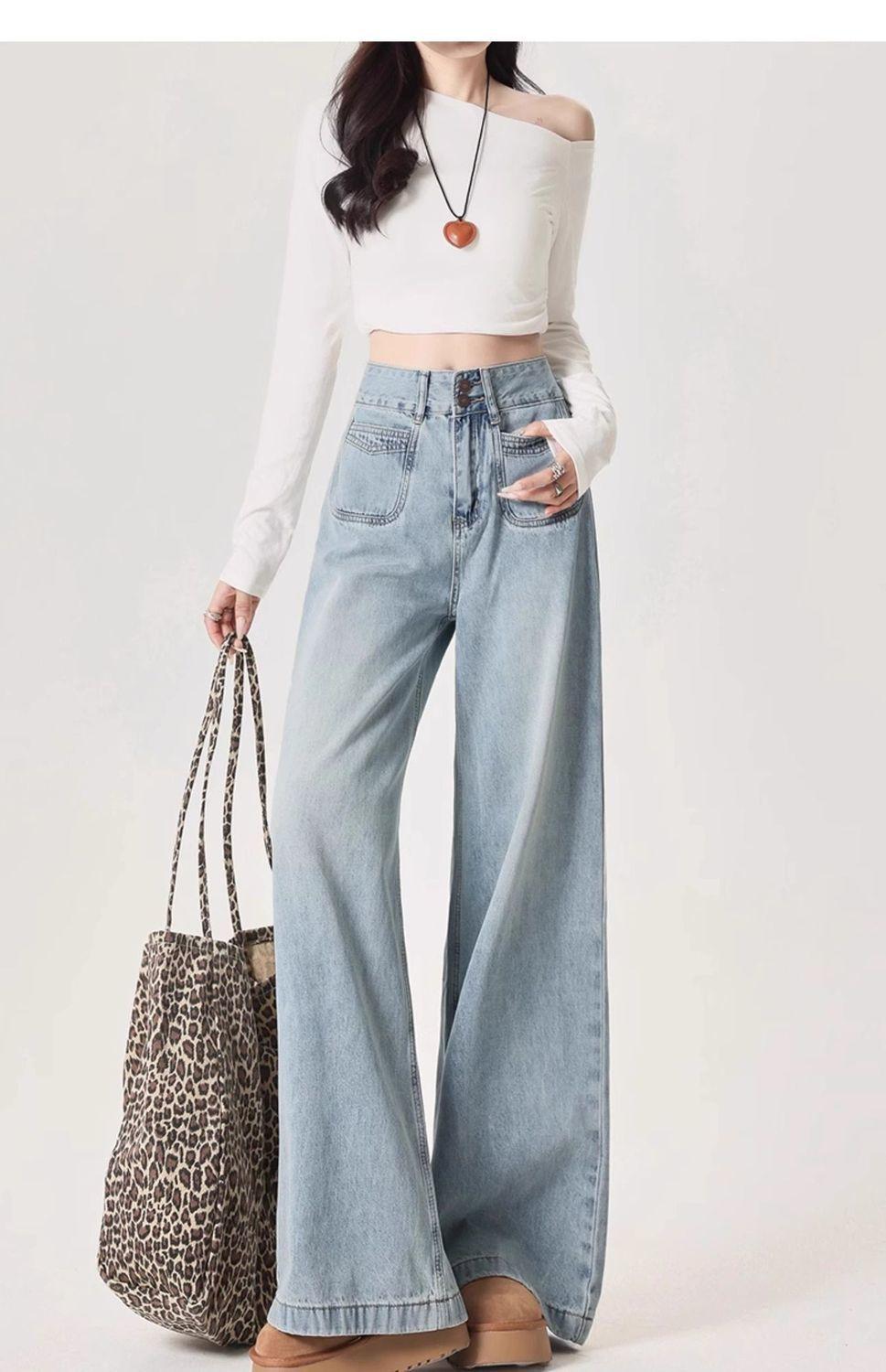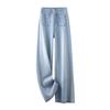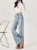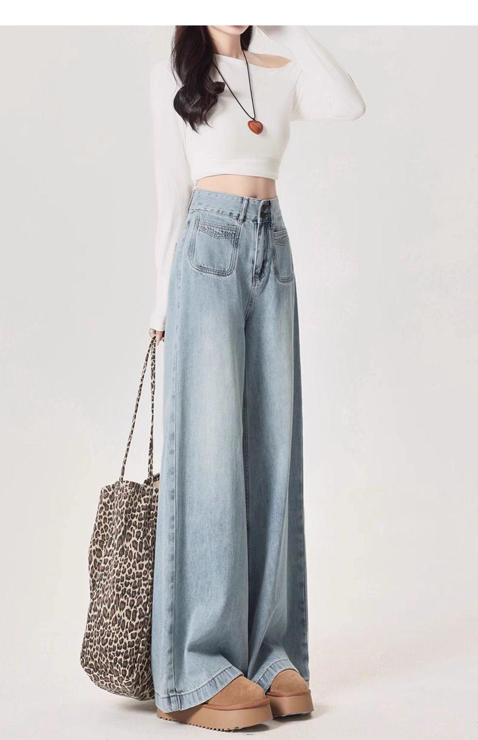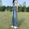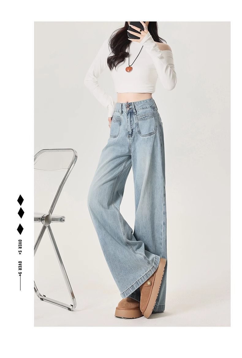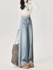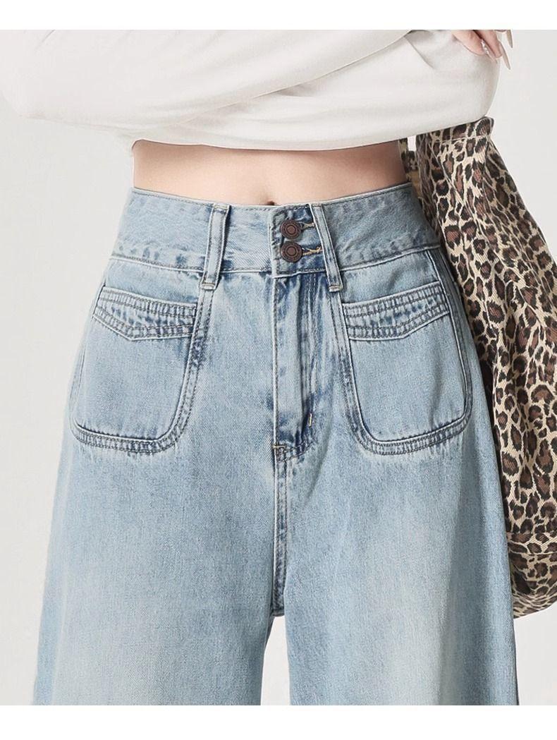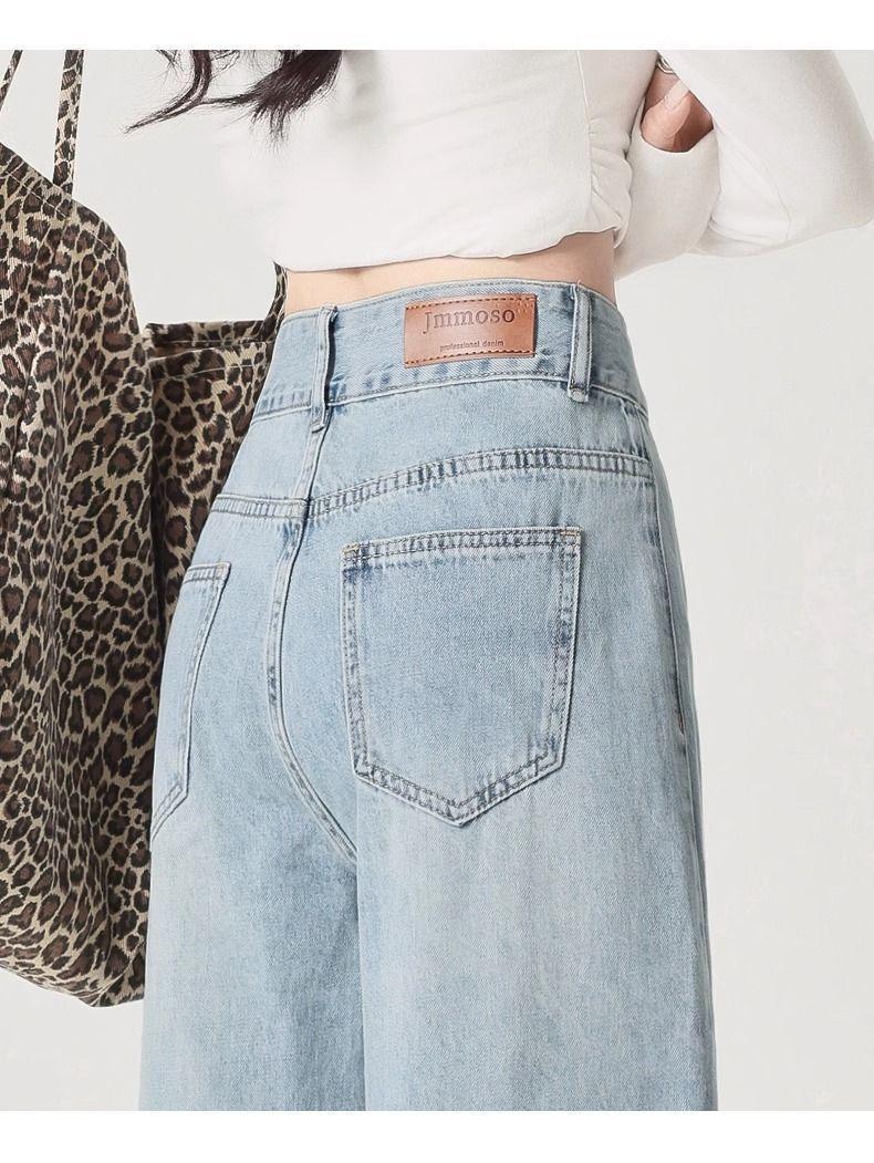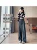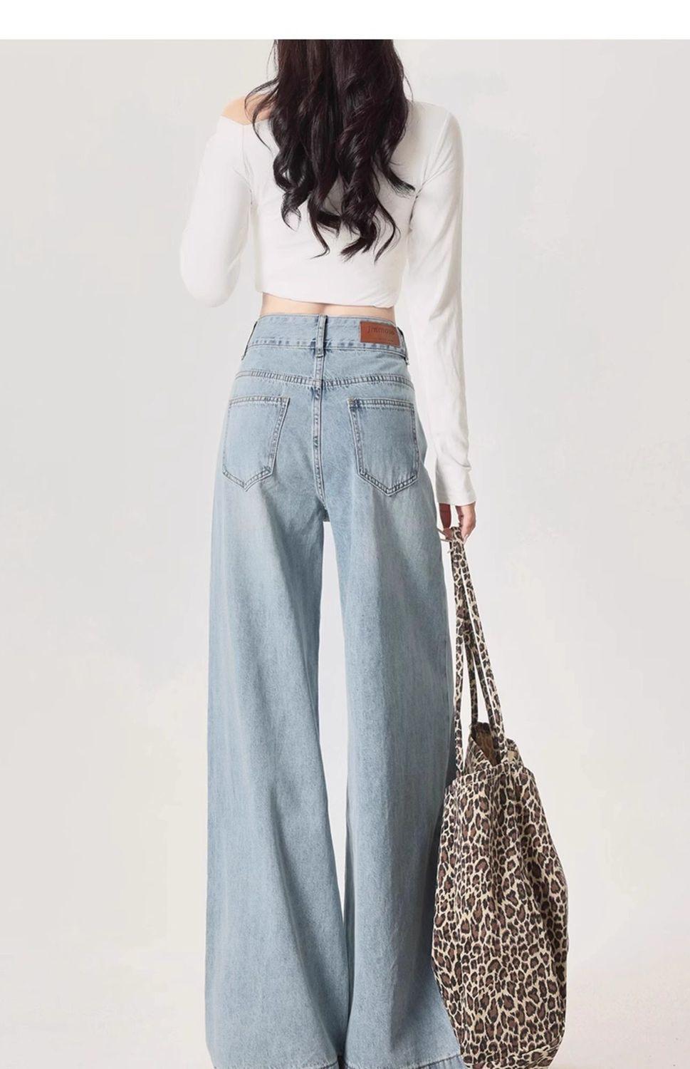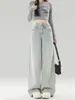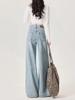 Jeans azul claro de perna larga feminino 2025 primavera/verão novo cintura alta solto emagrecedor caimento preguiçoso perna reta calças compridas