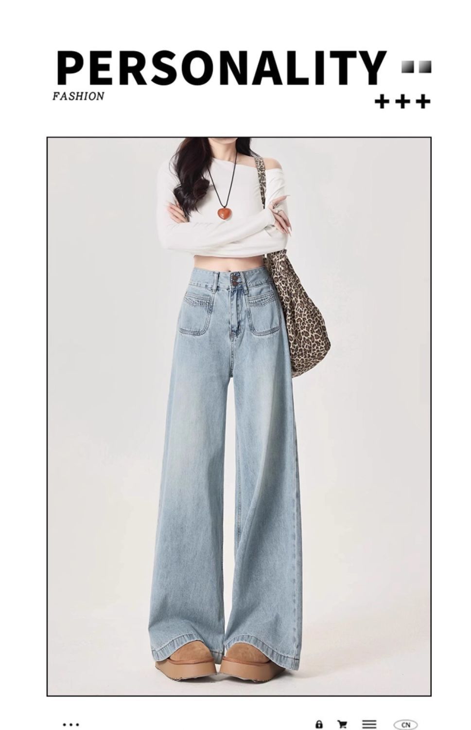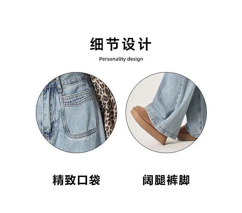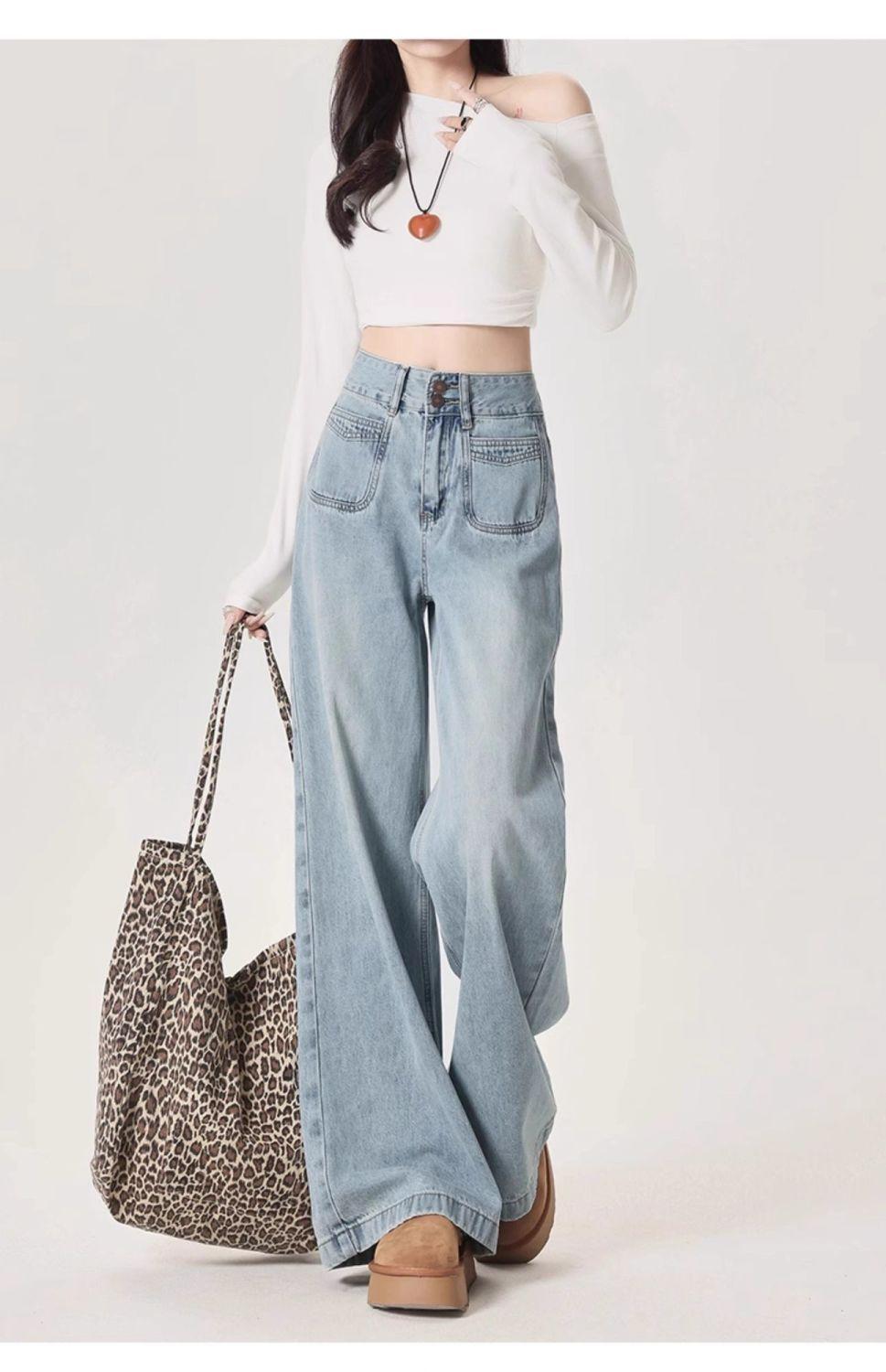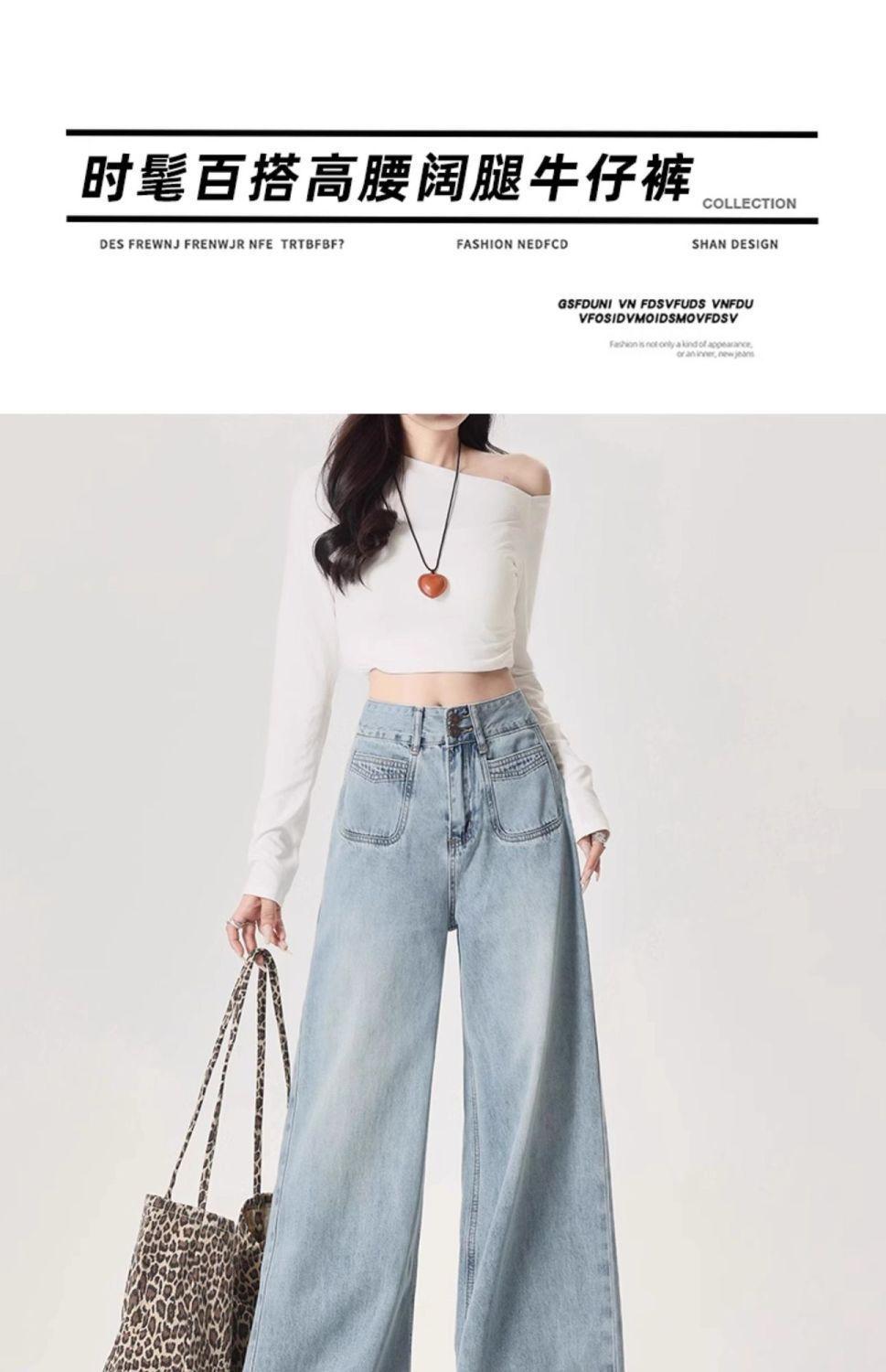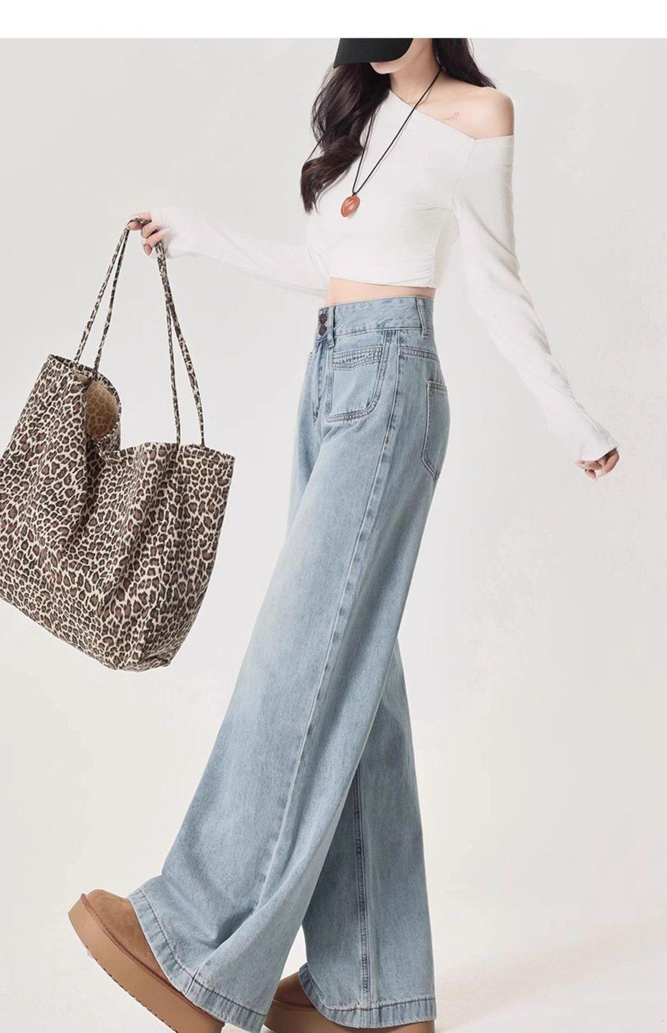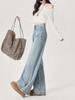 Jeans azul claro de perna larga feminino 2025 primavera/verão novo cintura alta solto emagrecedor caimento preguiçoso perna reta calças compridas