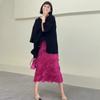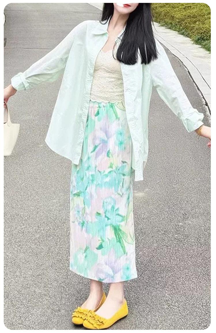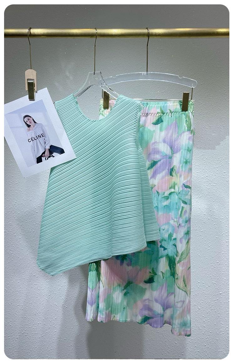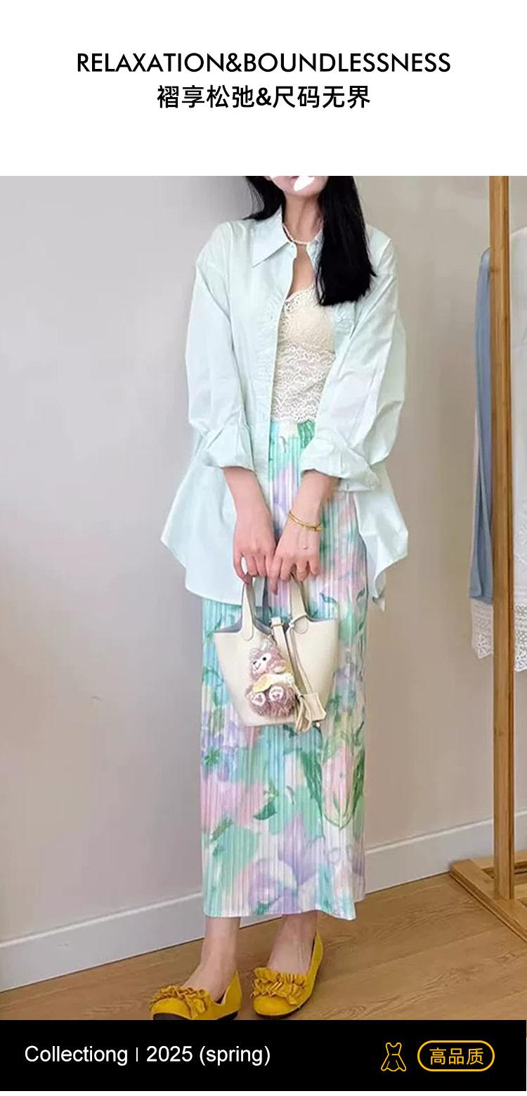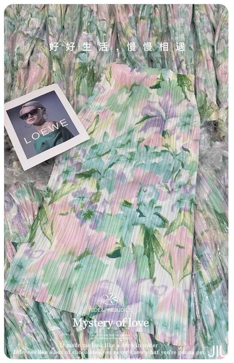 Saia Miyake Feminina 2025 Nova Saia Plissada Floral Feminina Verão Cintura Emagrecimento Look Saia Envelope Saia com Fenda Saia Plissada