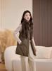 Colete Elegante de Algodão Plush com Emendas de Comprimento Médio e Ajuste Slim para Mulheres, Colete de Algodão da Moda