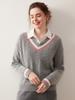 Outono e Inverno Novas Malhas de Caxemira Femininas Gola V Combinando Cores Moda Pulôver Trançado Malharia Base