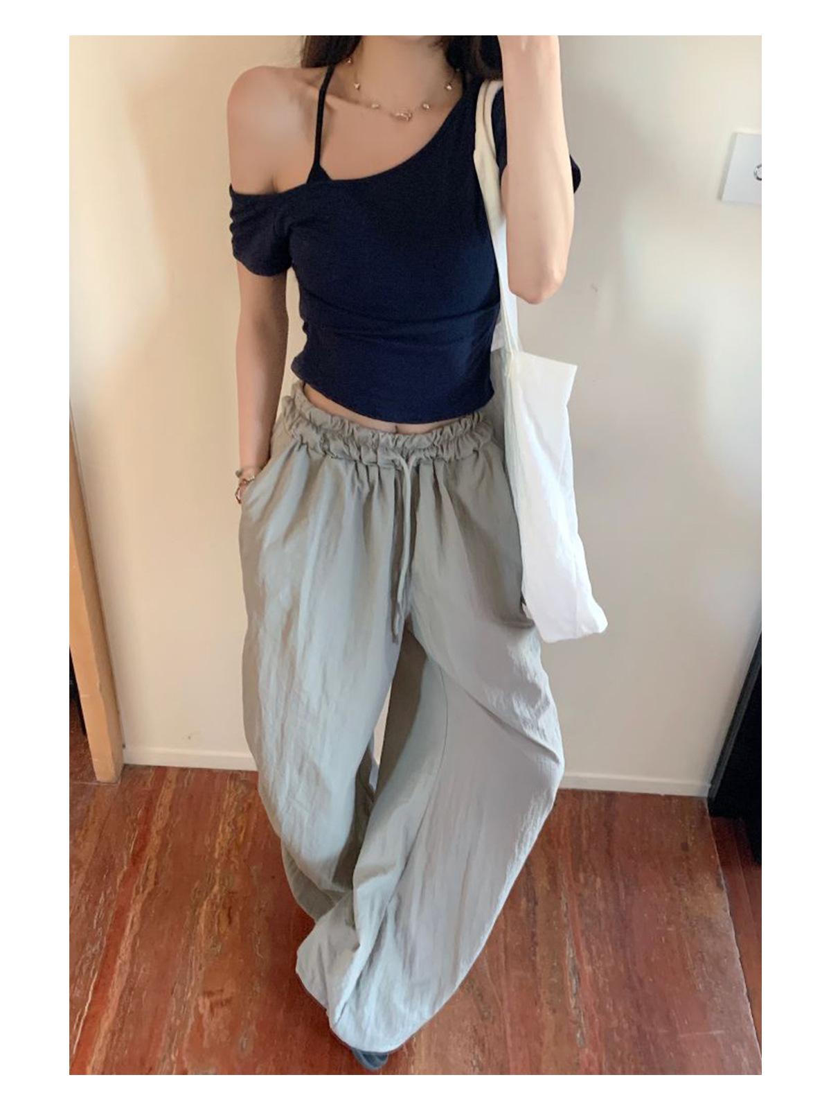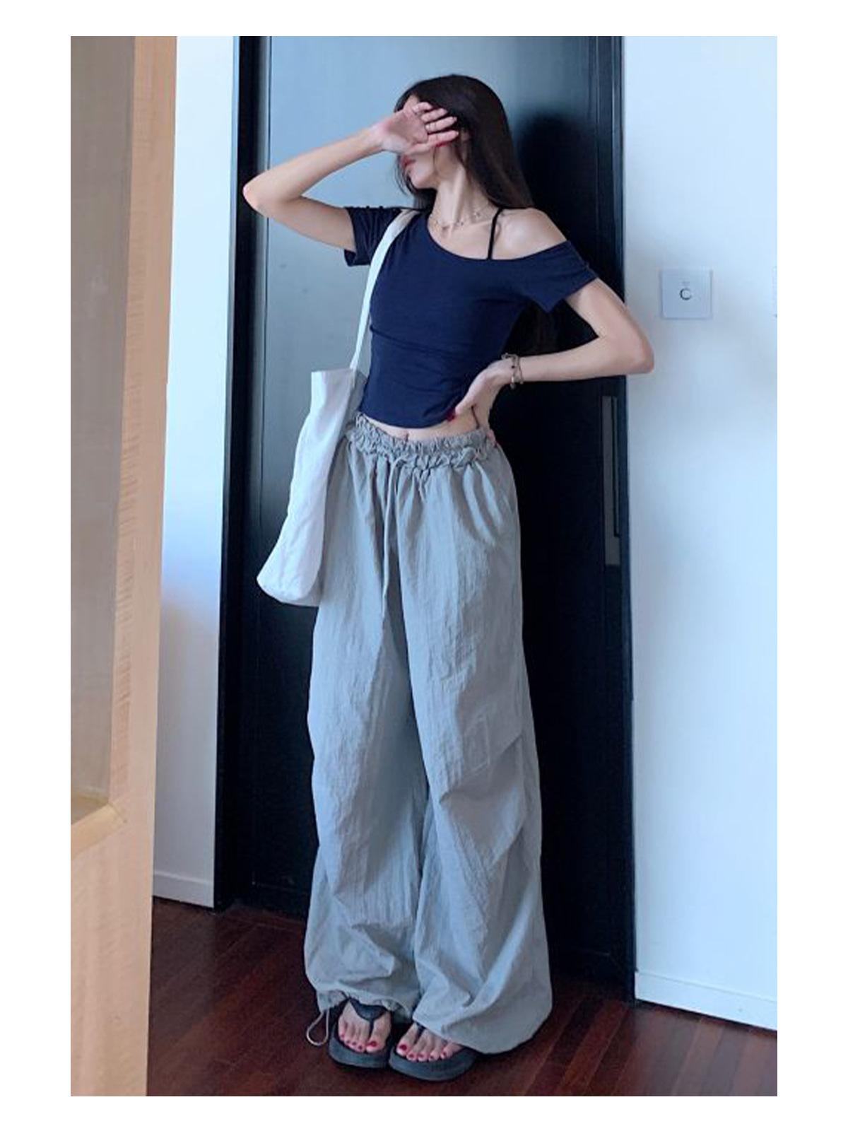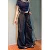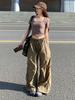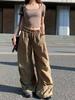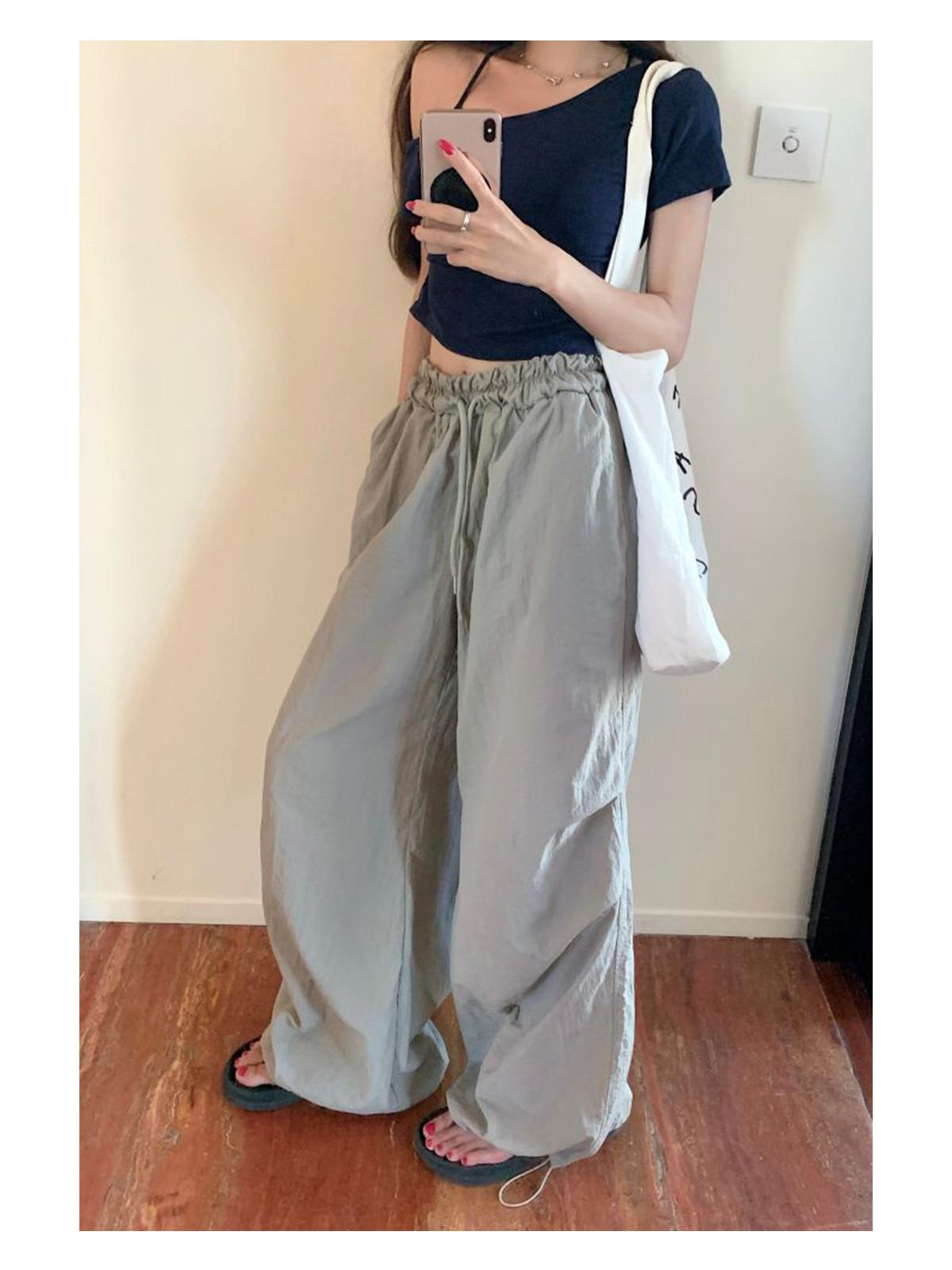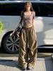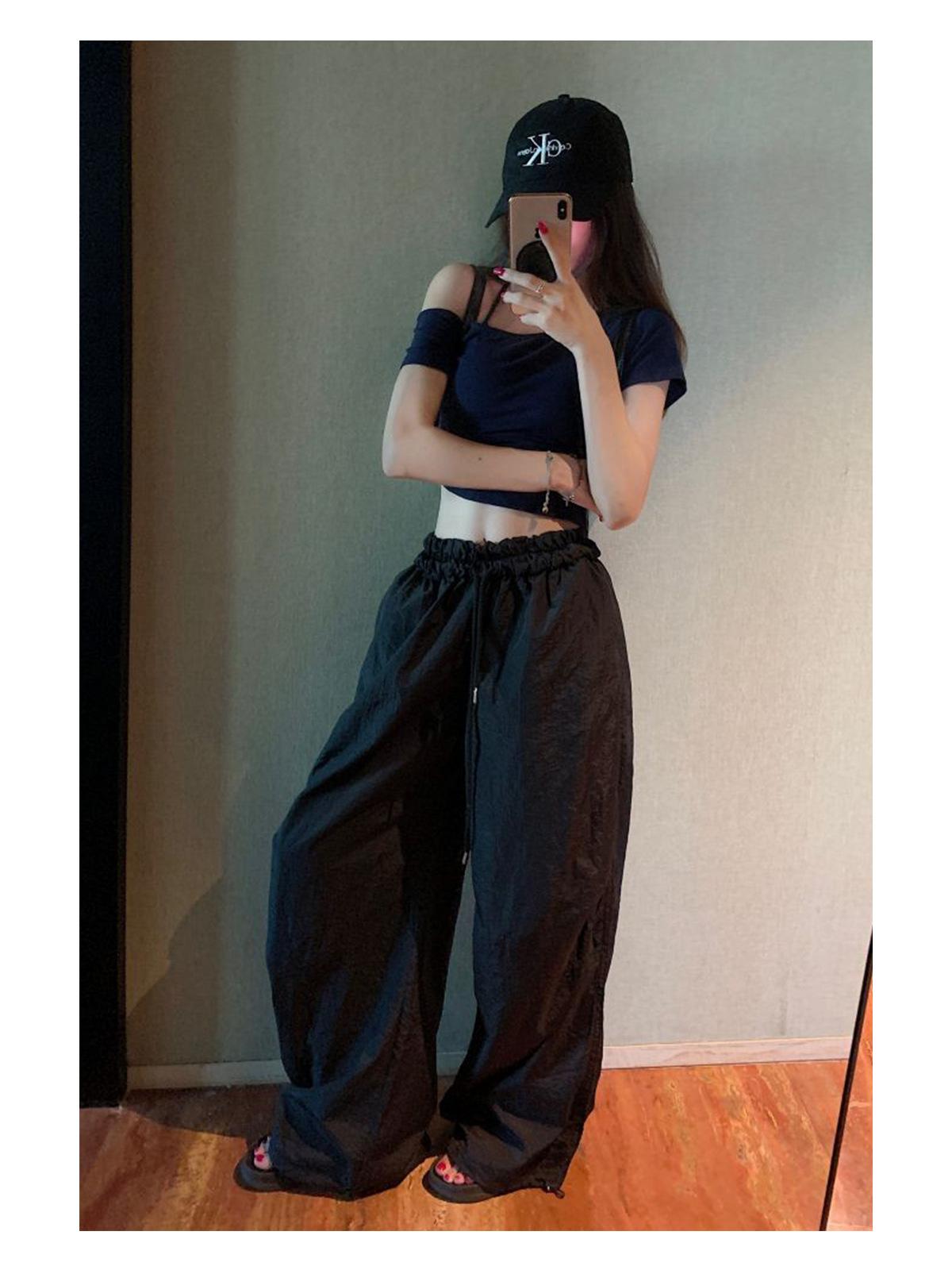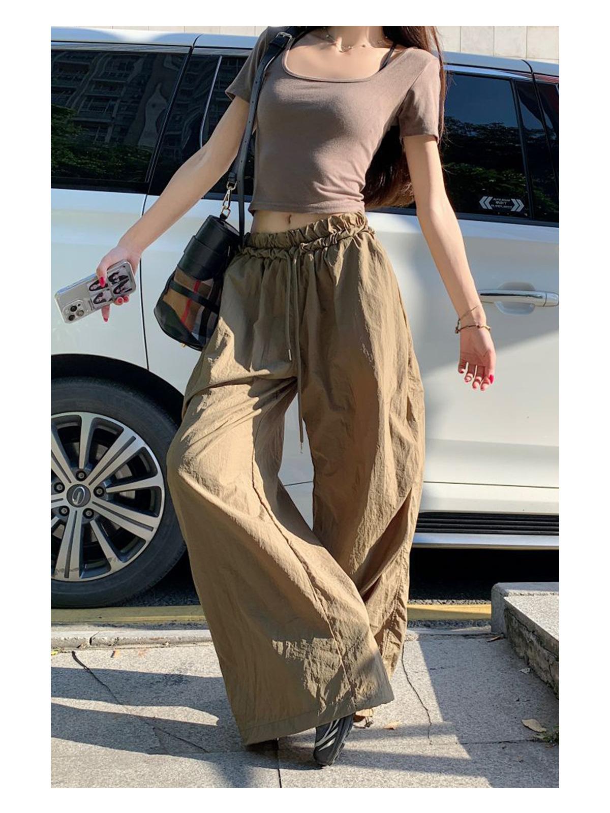 Calças cargo paraquedas retrô americanas com cordão plissado de secagem rápida para mulheres, verão, finas, versáteis, esportivas, de perna larga