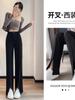 Calça Wide Leg Preta de Cintura Alta para Mulheres 2026 Nova Coleção Primavera e Outono Estilo Reto Drapê Barra Dividida Petite Casual Conjunto Calça de Comprimento Total