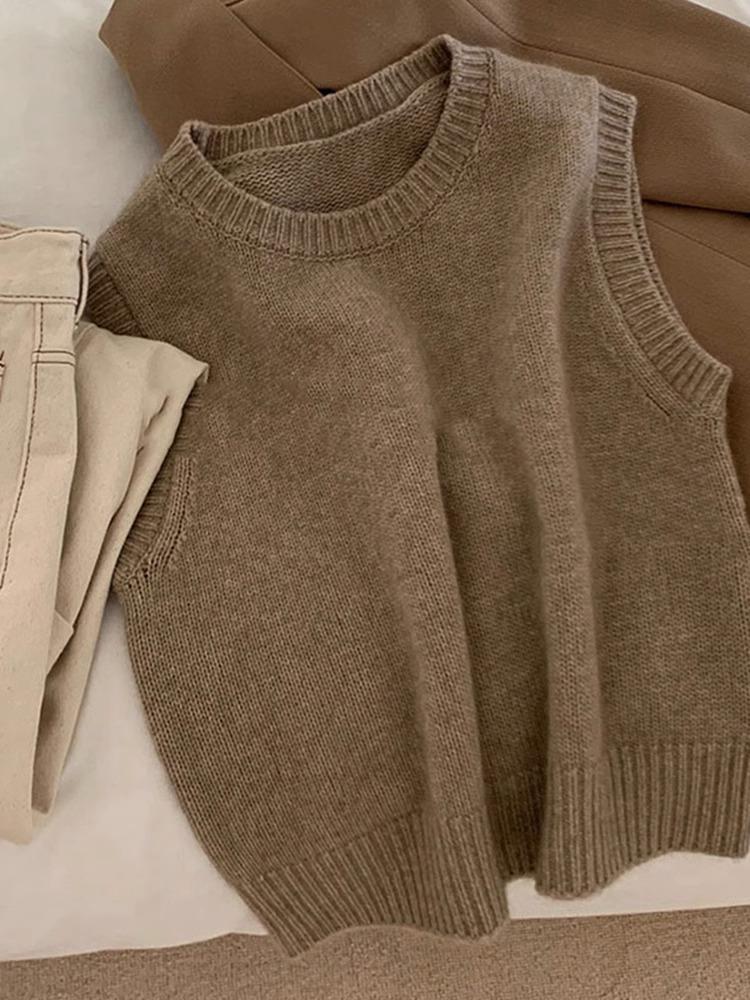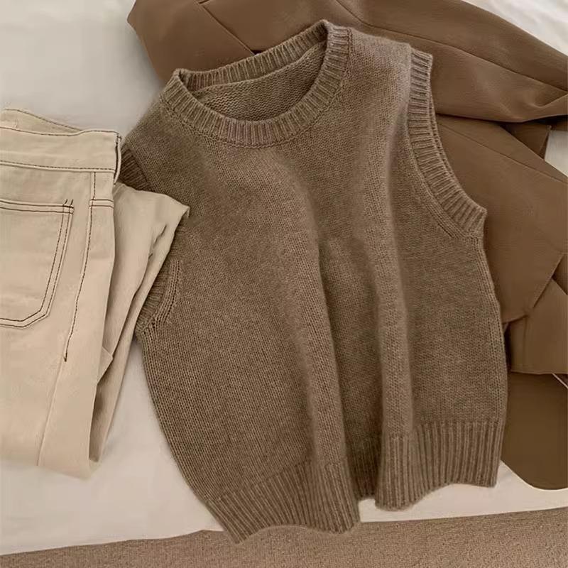 Início do outono em camadas sem mangas lã gola redonda pulôver colete suéter tops para mulheres retrô novo estilo coreano colete suéter