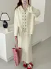 Conjunto de Cardigan com Zíper Suéter Preguiçoso Saia Tricotada Crochê Feita à Mão Design Novo Outono Conjunto de Duas Peças para Mulheres