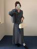 Conjunto de Suéter de Tricô com Fita para Mulheres Outono e Inverno Novo Conjunto de Duas Peças de Cardigã de Tricô Solto e Saia Transfronteiriço