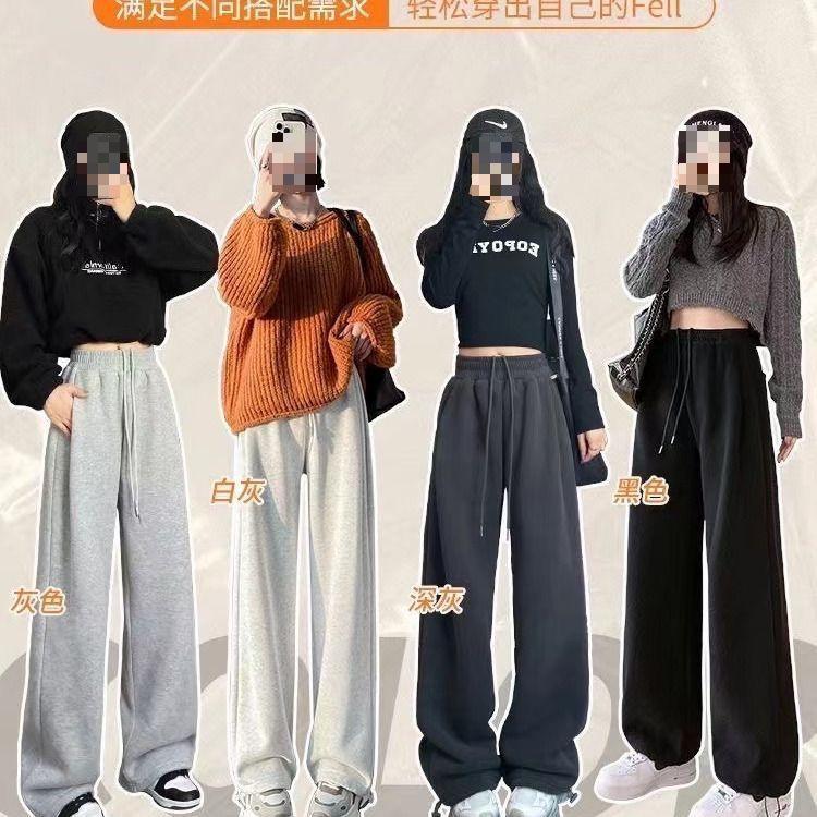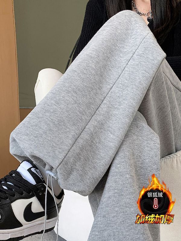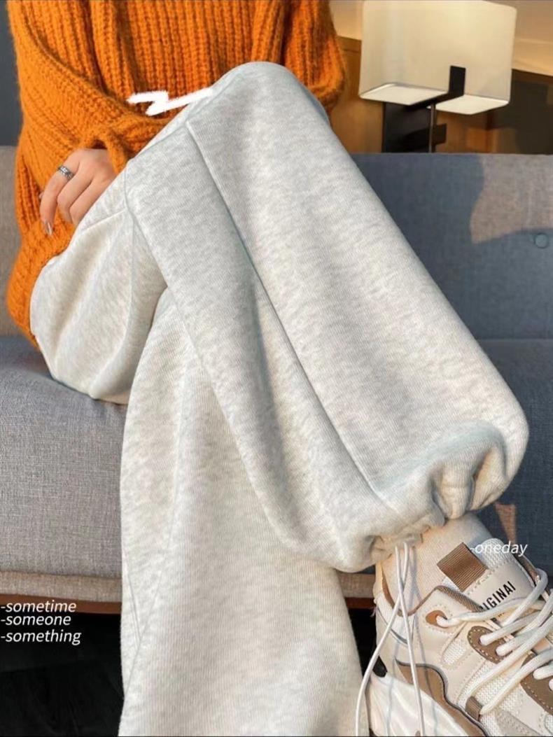 Calças de Moletom Brancas Primavera Outono Retas Perna Larga Cinza Soltas Casuais Calças Compridas ins Versátil Joggers Punho Homens Mulheres
