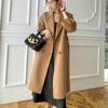 Casaco de Lã Feminino Comprimento Médio 2025 Outono e Inverno Novo Estilo Hepburn Temperamento Petite Solto Espessado Sobretudo de Lã