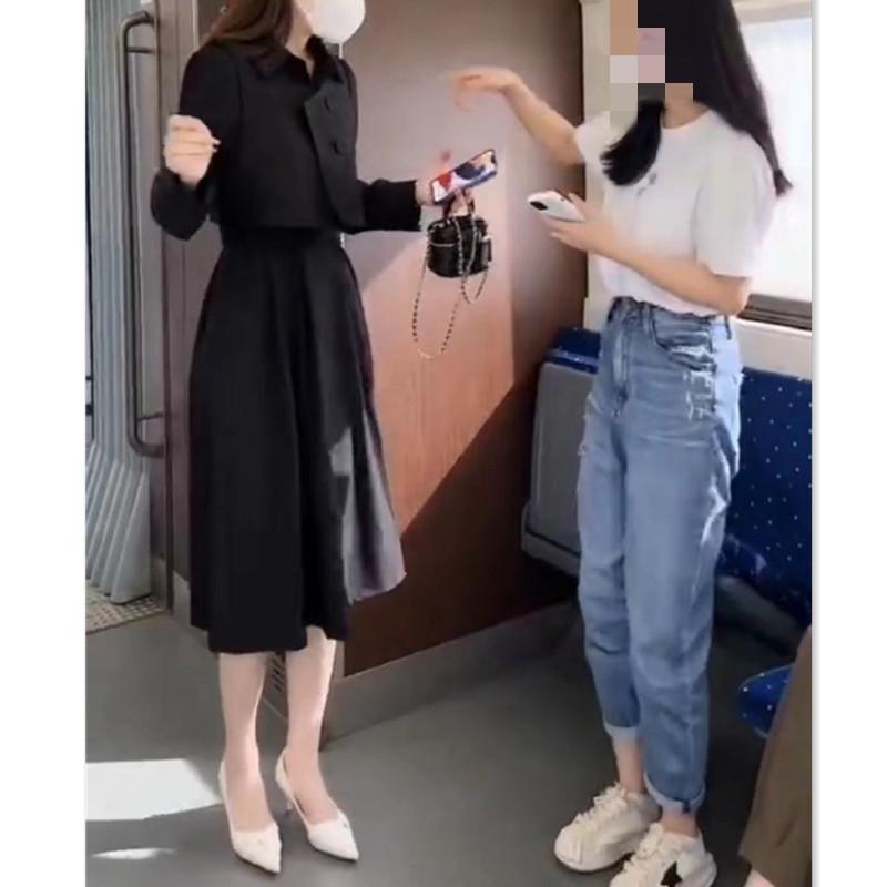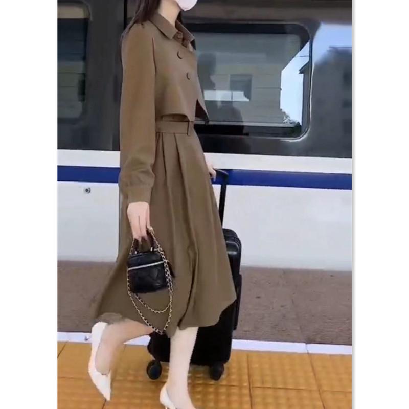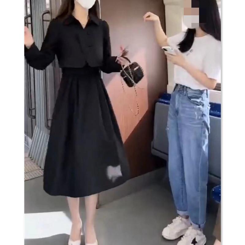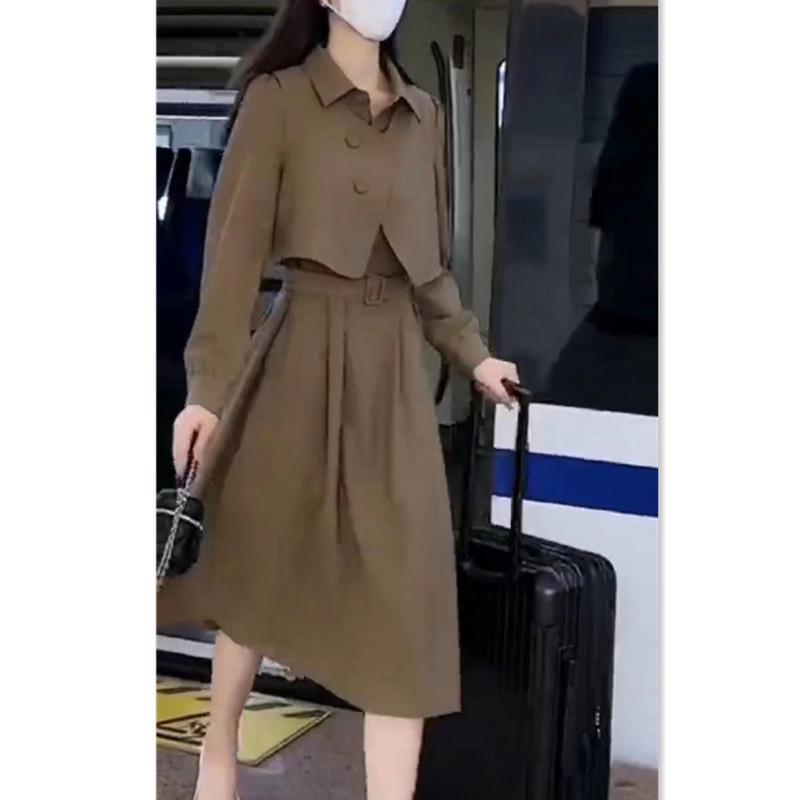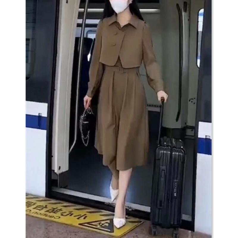 22737 Big Aimei Yiyuan 2023 Outono Novo Terno Coreano Moda Vest Vestido Duas Peças Emagrecimento Set