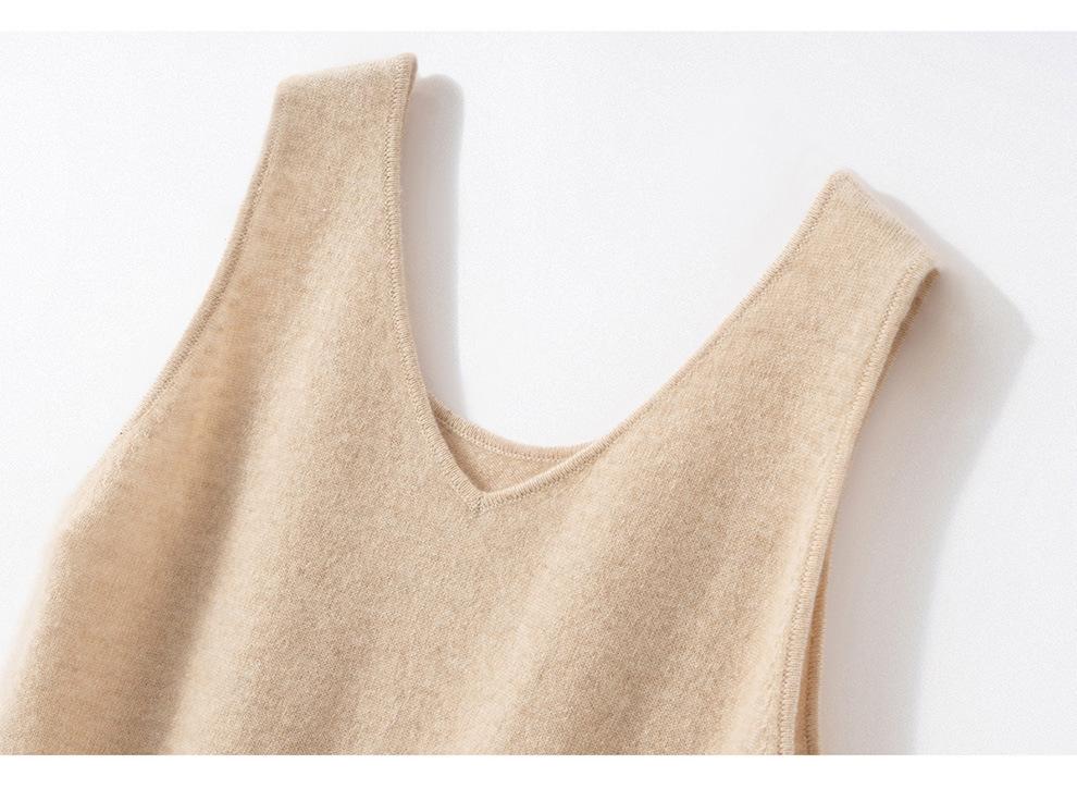 Suéter de caxemira feminino 100% caxemira pura cor sólida sem mangas camada base outono e inverno novo pulôver de malha camisola colete maré