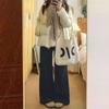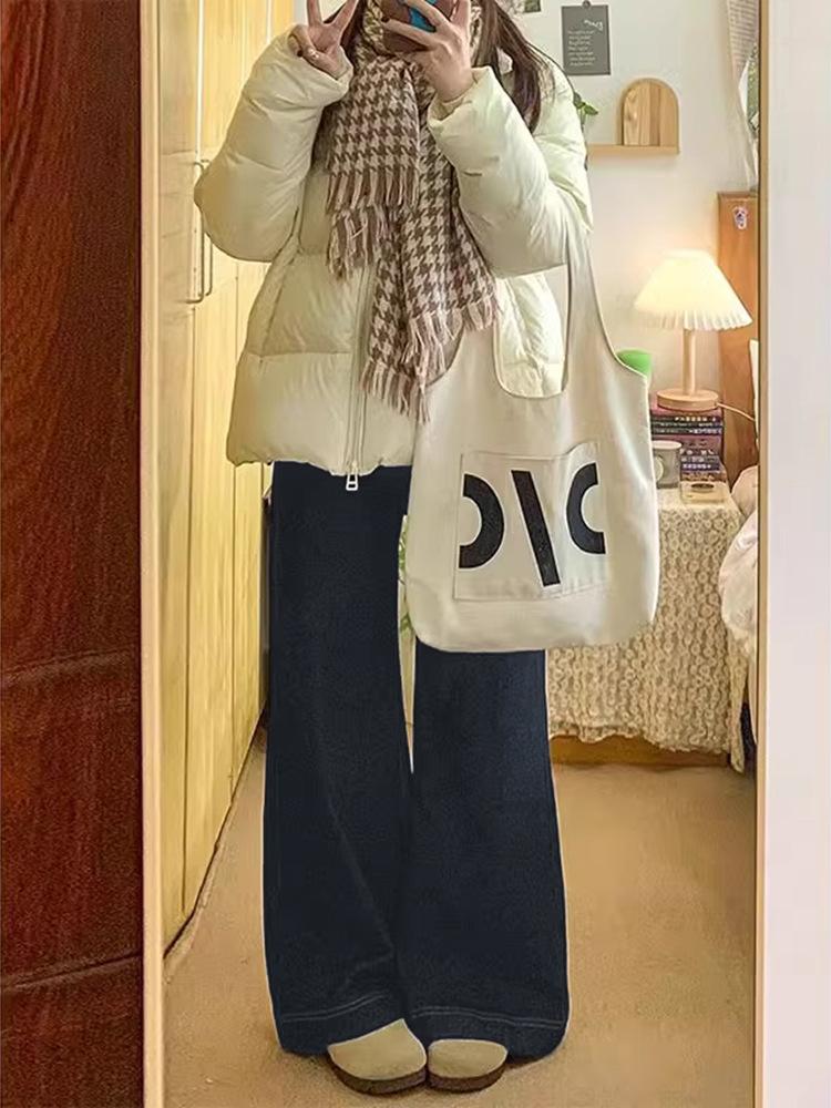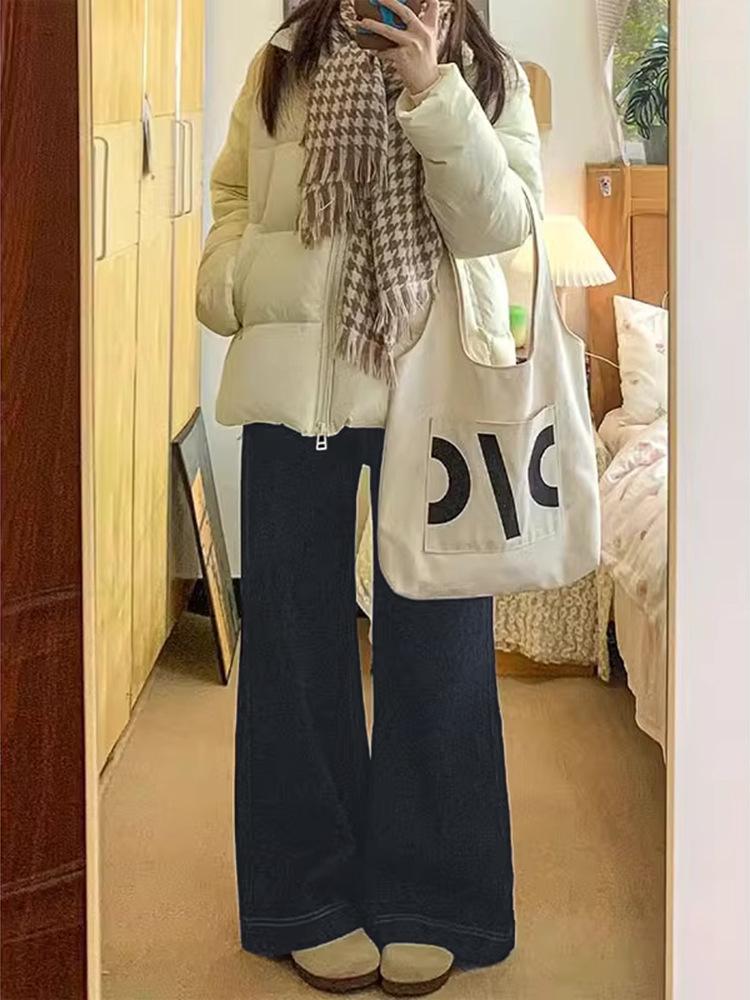 Plus size Pera Micro-flare Jeans de Perna Larga Mulher menina gordinha Primavera e Outono Cintura Alta Emagrecedor Solto Calça Reta