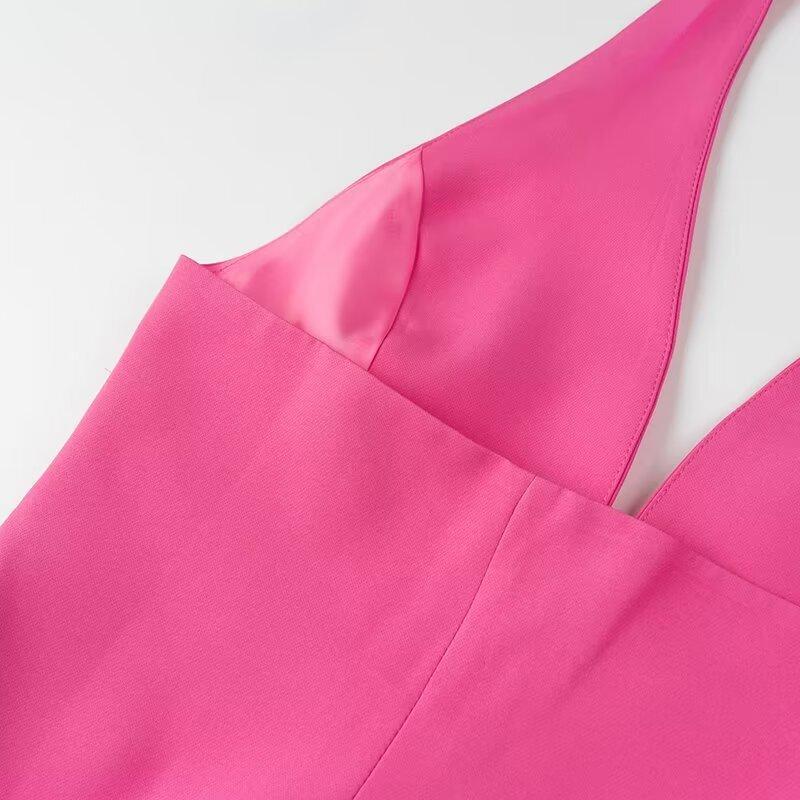 ZAR Primavera Nova Roupa Feminina Estilo Europeu e Americano Design de Moda Francês Regata de Alça Halter