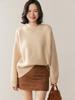 Suéter de Cashmere Espesso Novo Outono Inverno Feminino Gola Redonda Preguiçoso Solto Tricô Manga Longa Curto Camada Base Top