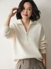 Suéter Feminino de Caxemira Tricotado Grosso de Manga Comprida Novo de Outono e Inverno Cor Pura com Lapela e Zíper até a Metade Solto, Slim e Versátil