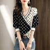 Estilo europeu e americano design de nicho senso gola V camisa xadrez feminina manga longa novo estilo transfronteiriço acinturada versátil casual camisa azul