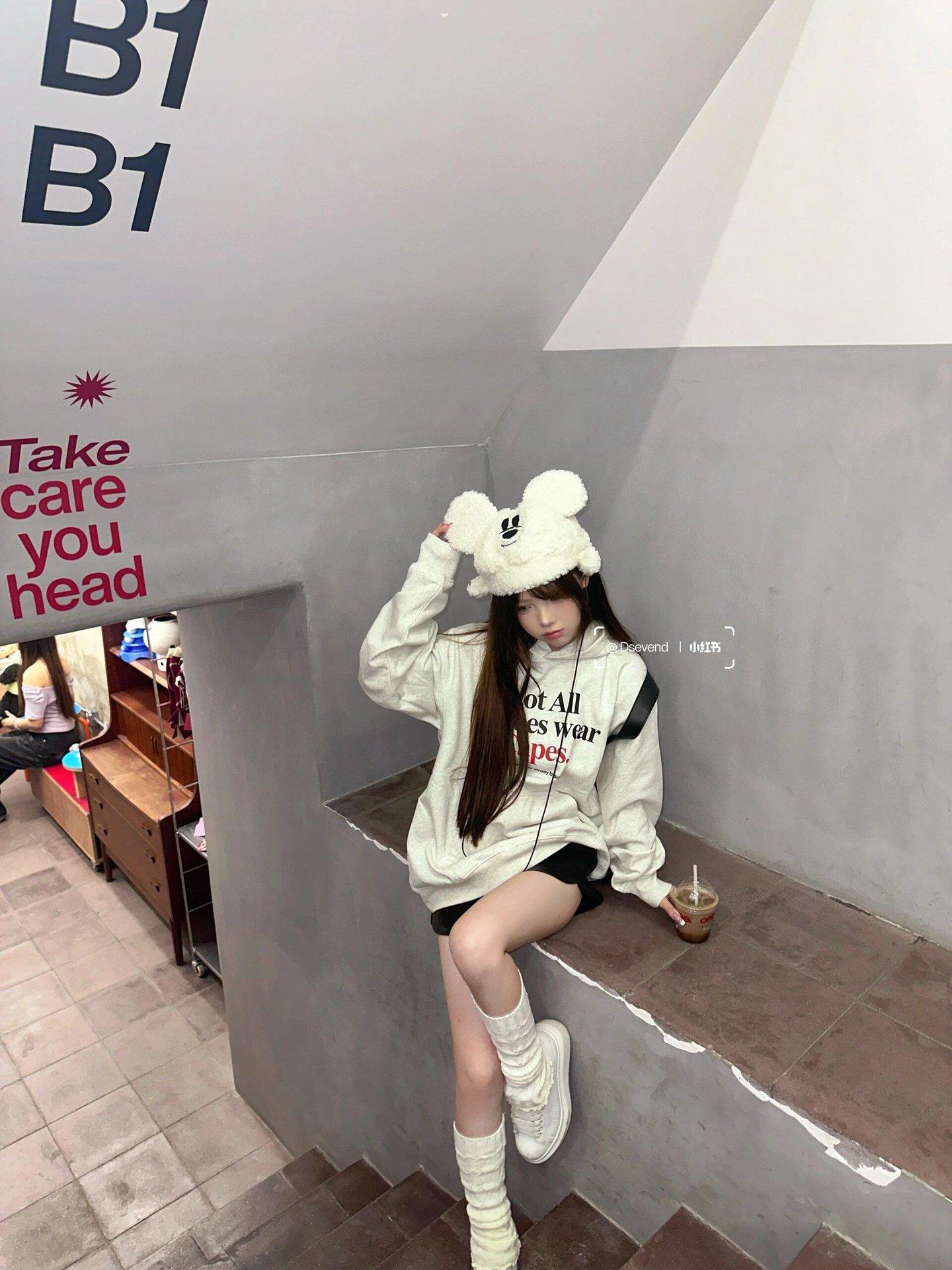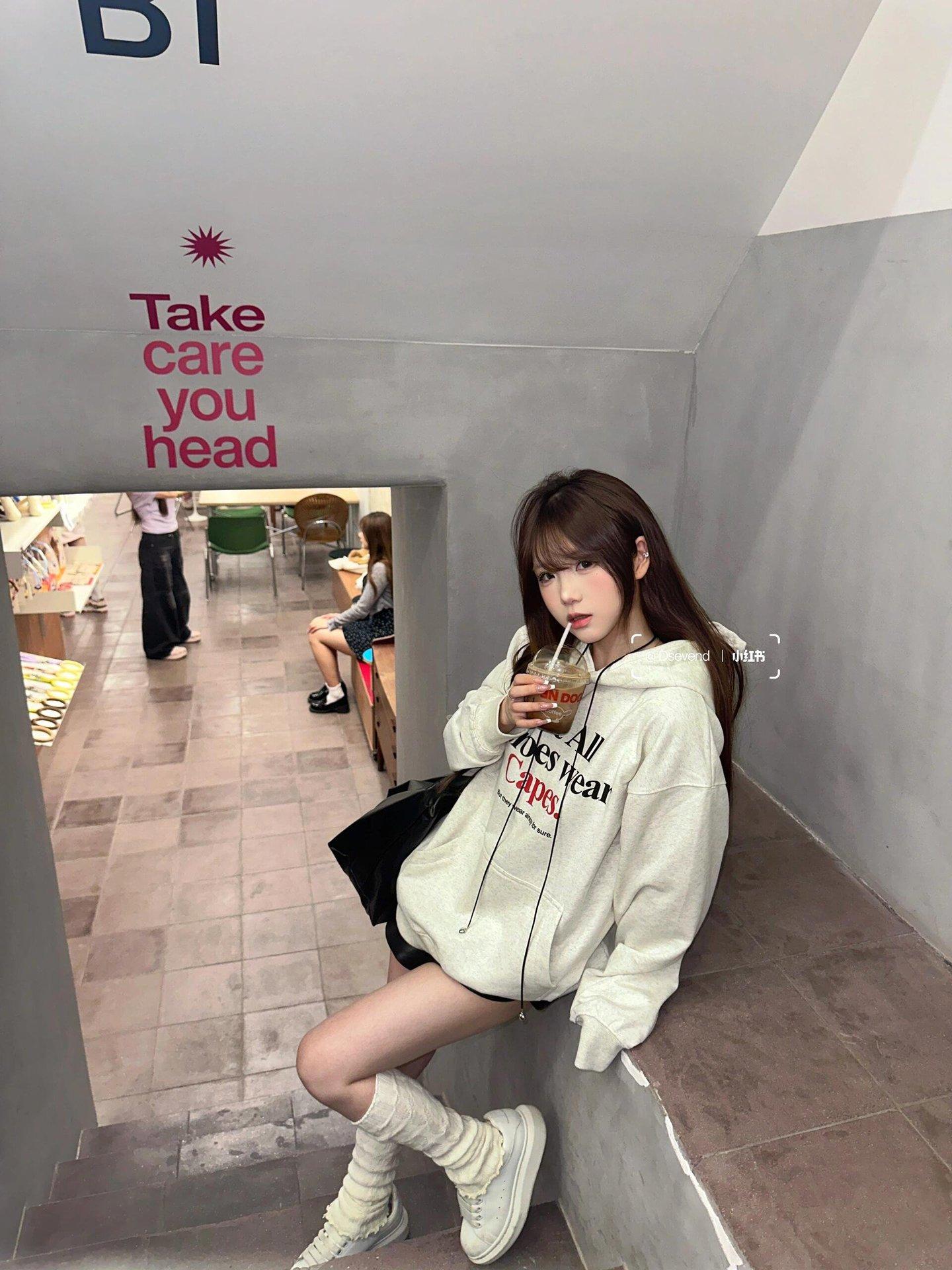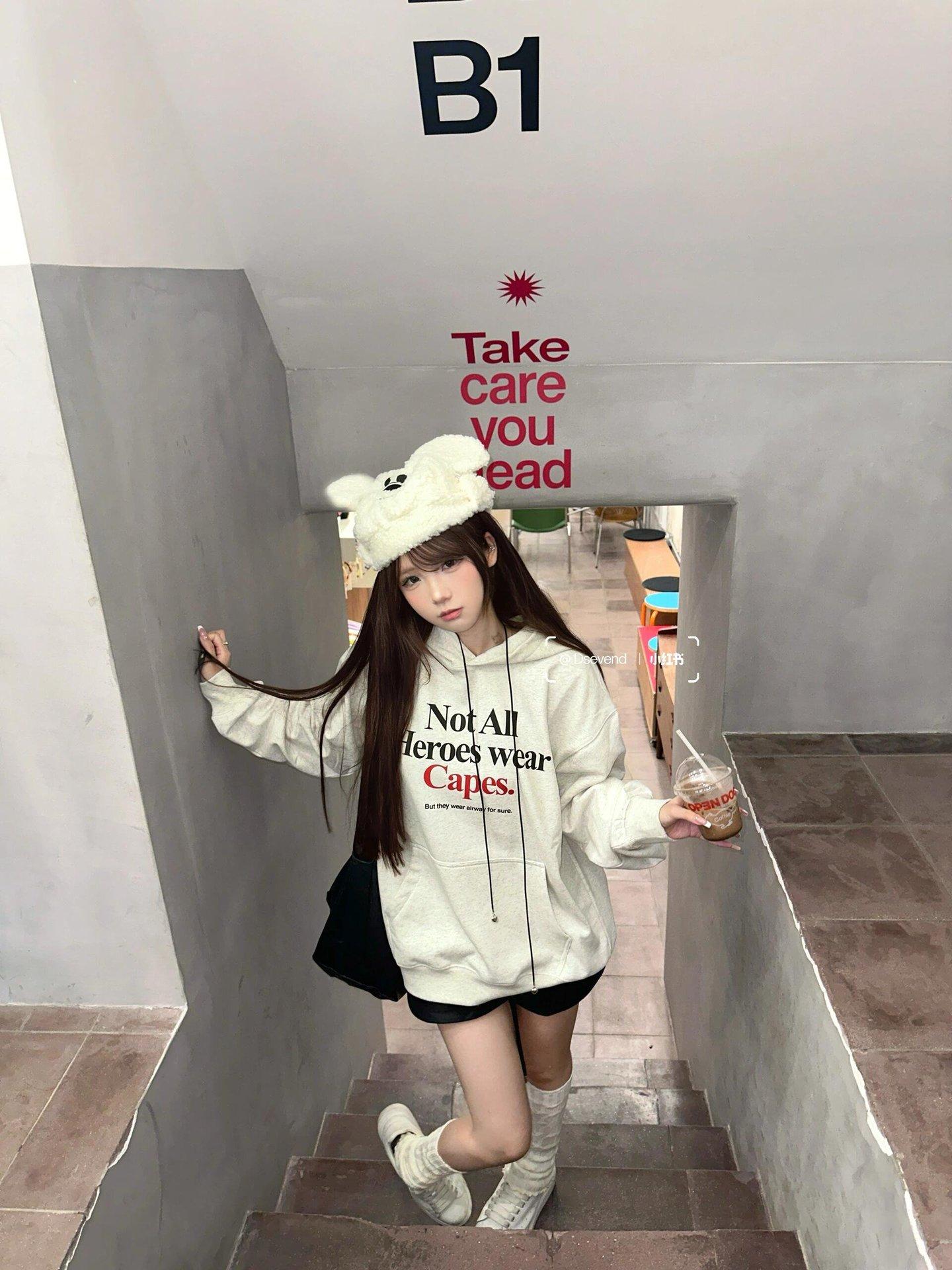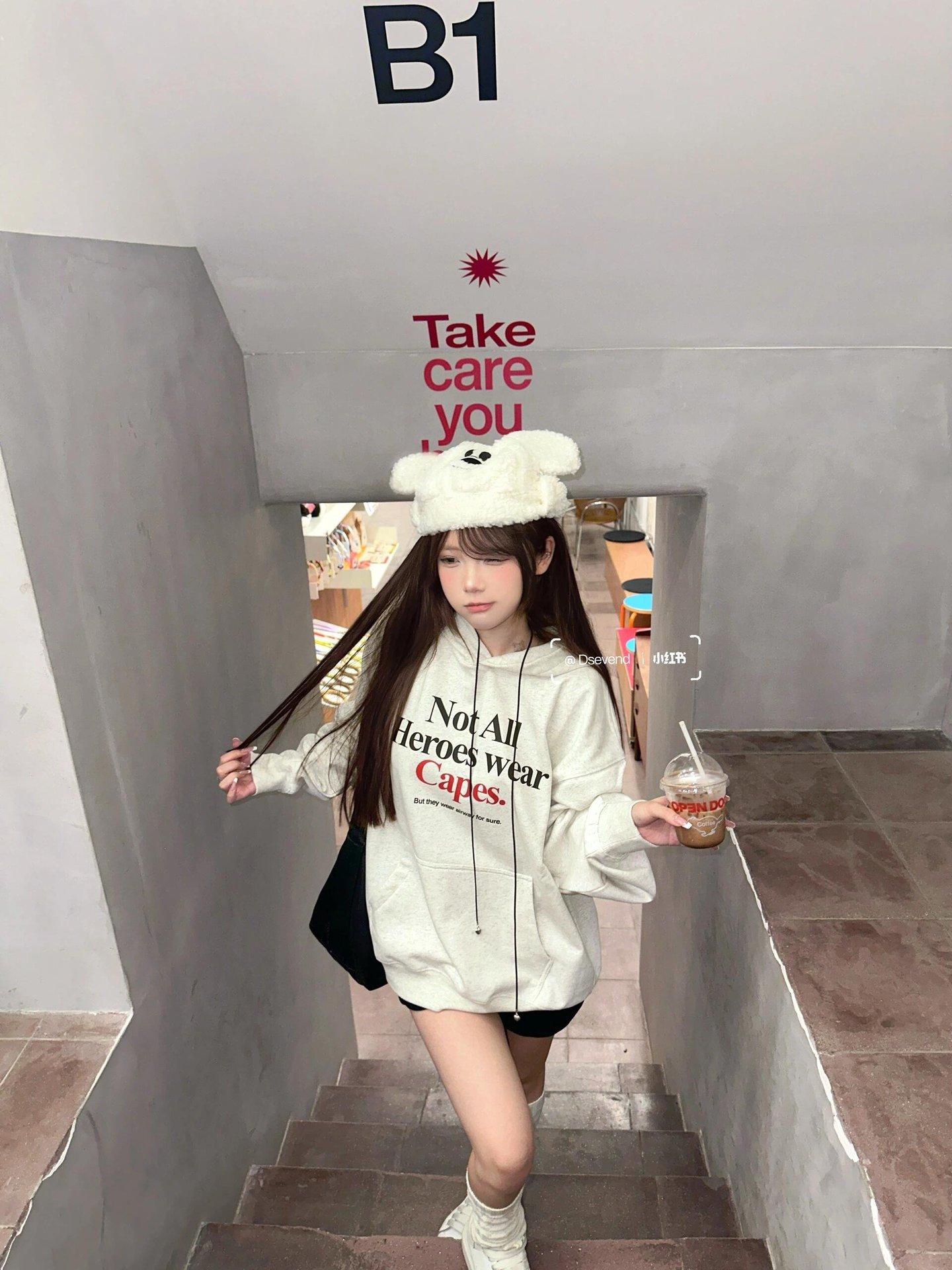 Roupa Exterior Pesada com Capuz Moletom Popular na Internet com Capuz Feminino Estampado Simples Emagrecimento High-end Primavera e Outono