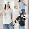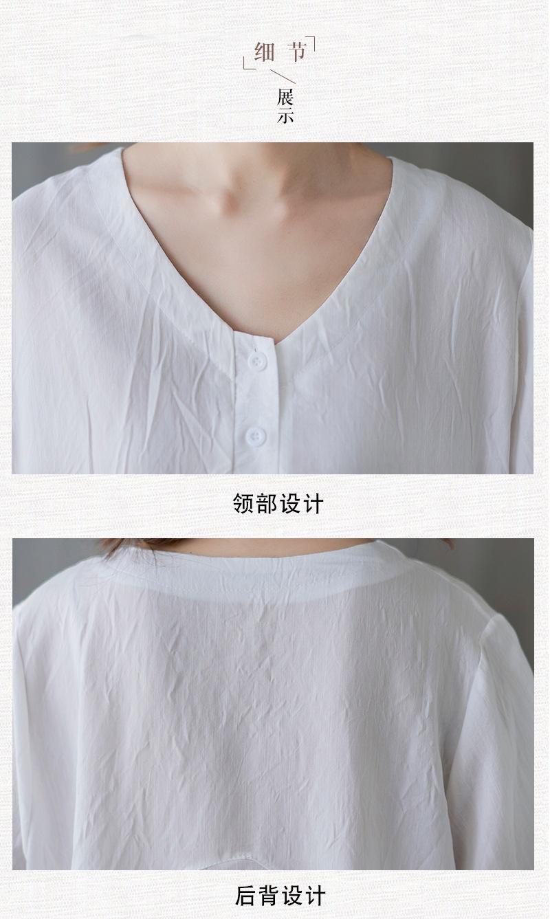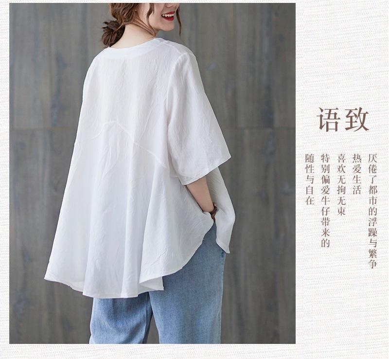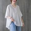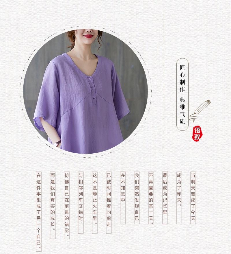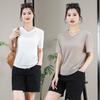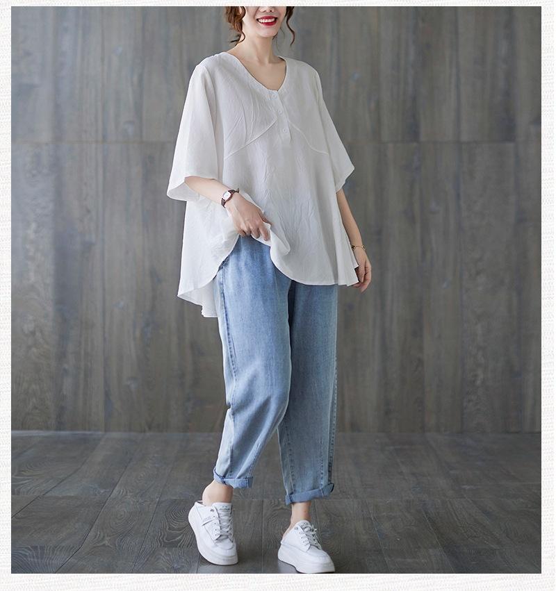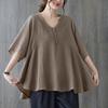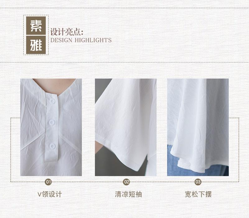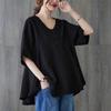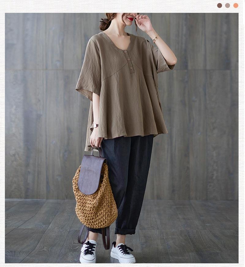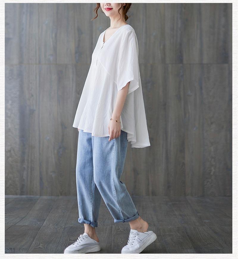 2025 Nova Camiseta Feminina de Verão Plus Size Solta Cor Pura Decote V Manga Média Top para Mulheres