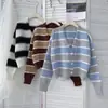 Suéter de malha com decote V nicho de senso de design feminino outono novo solto emagrecedor estilo preguiçoso casual top listrado