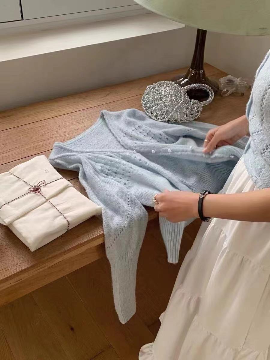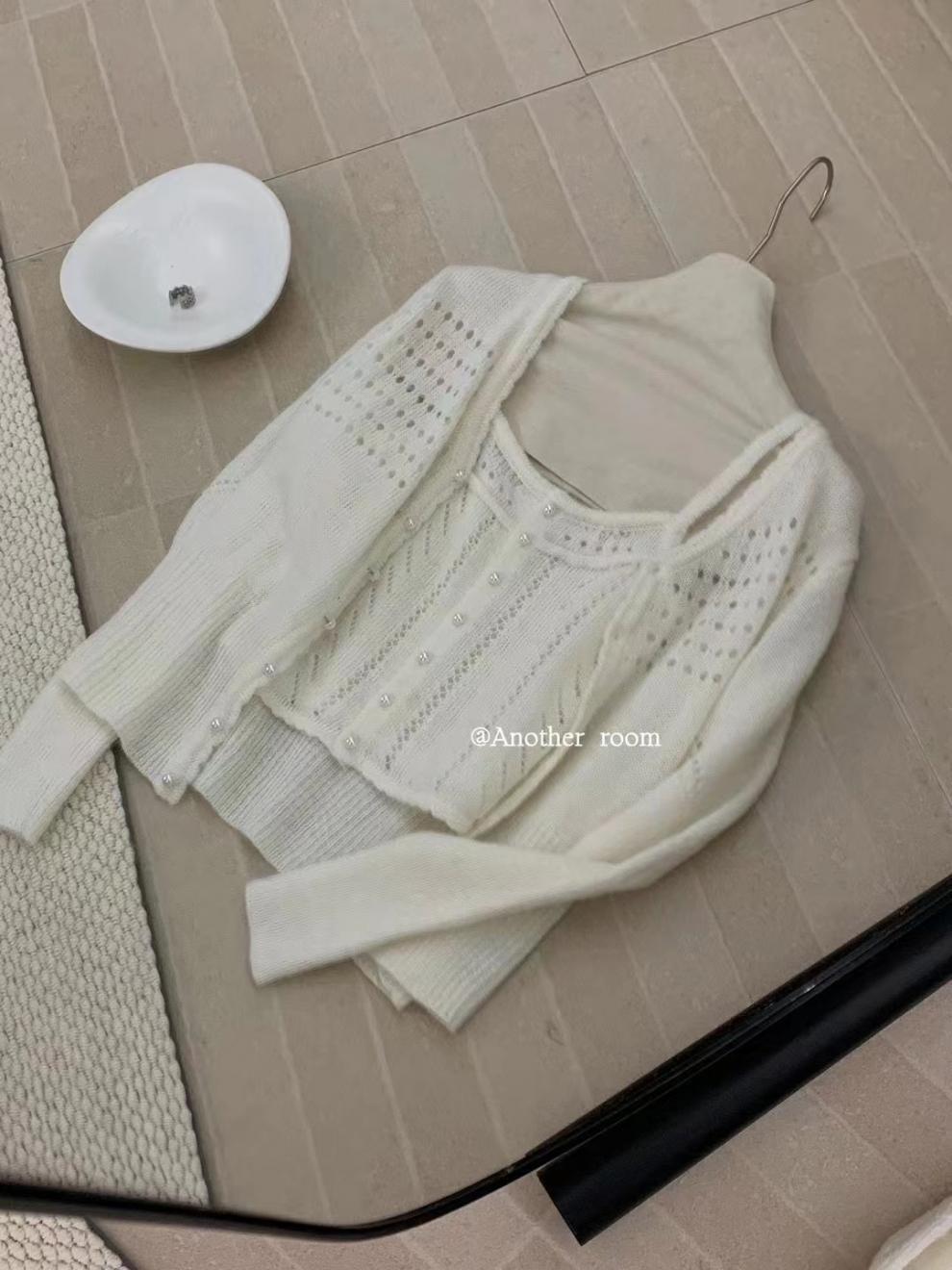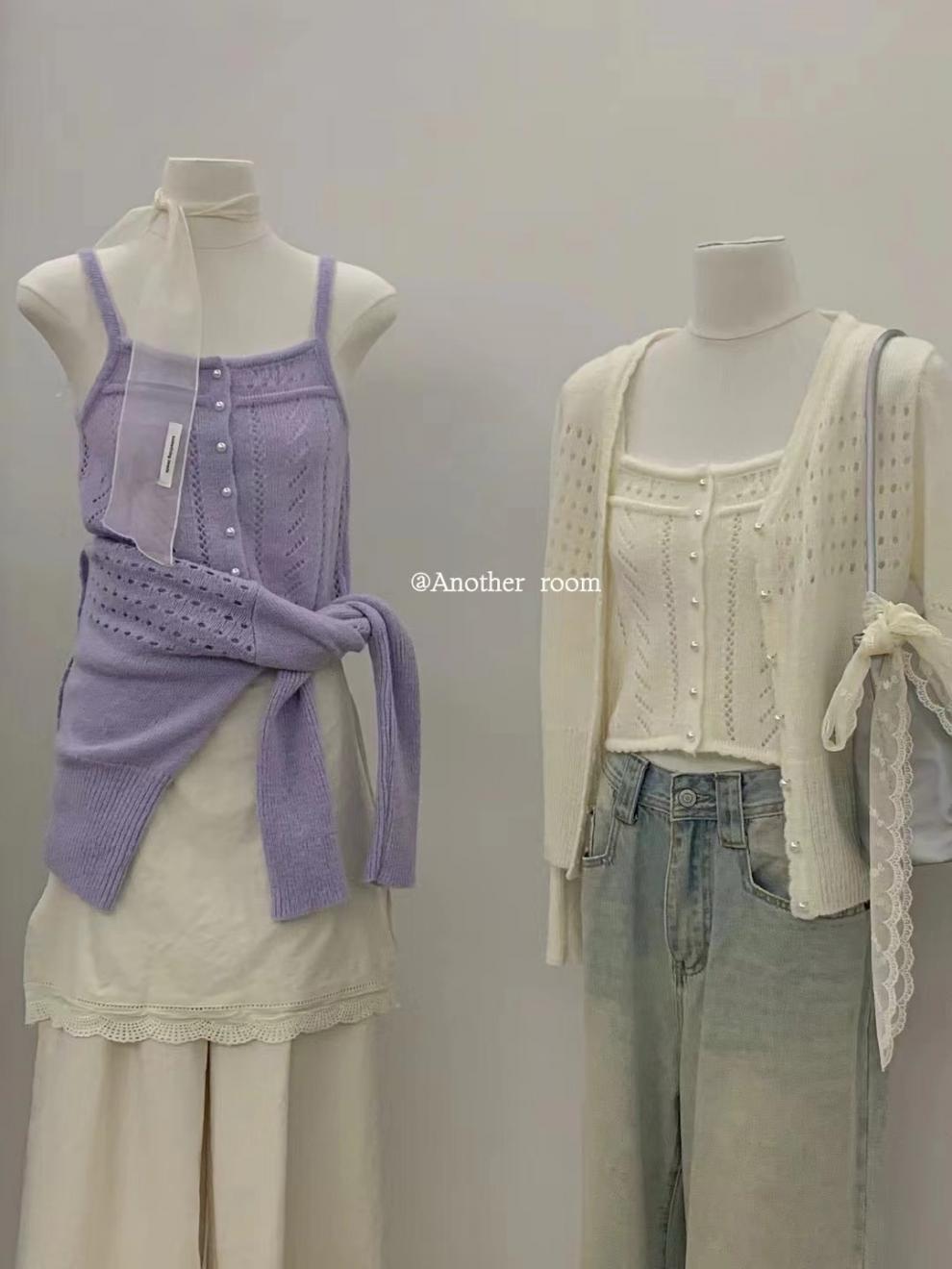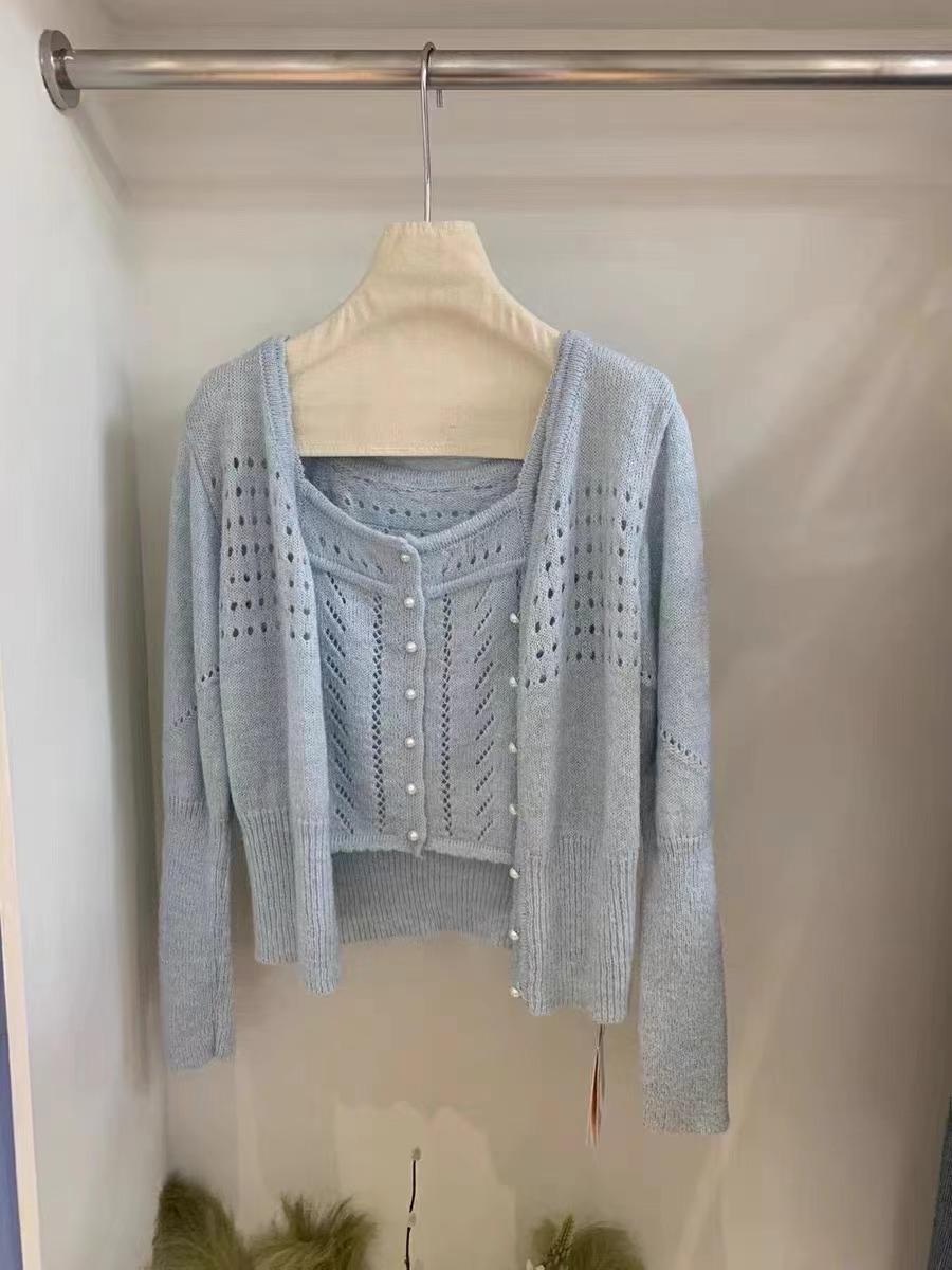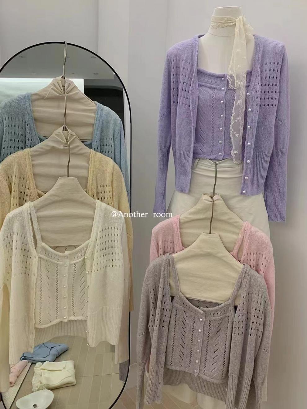 Conjunto Cardigã Tricotado Estilo Coreano Delicado Regata Mulher 2025 Primavera Novo Temperamento Cor Sólida Conjunto Duas Peças Tendência