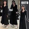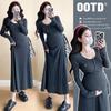 Vestido de Maternidade 2025 Outono e Inverno Nova Moda Mamãe Quente Fashion Decote V Alta Elasticidade Slim Midi Tricotado Moderno