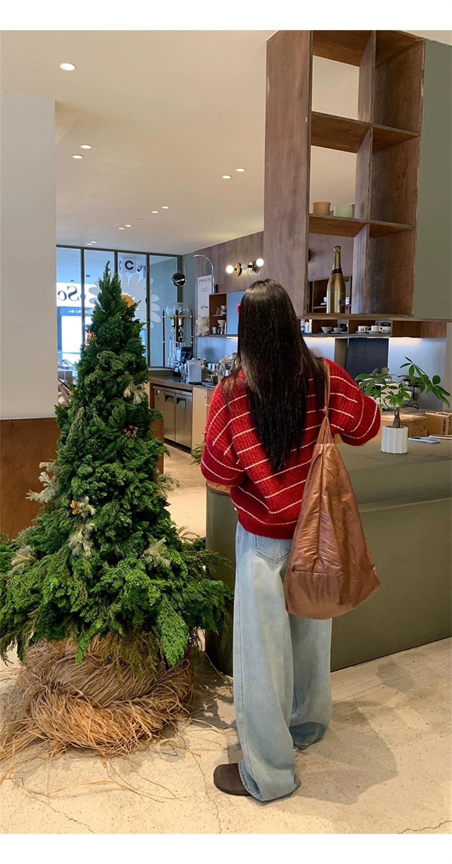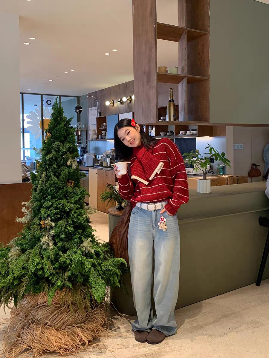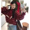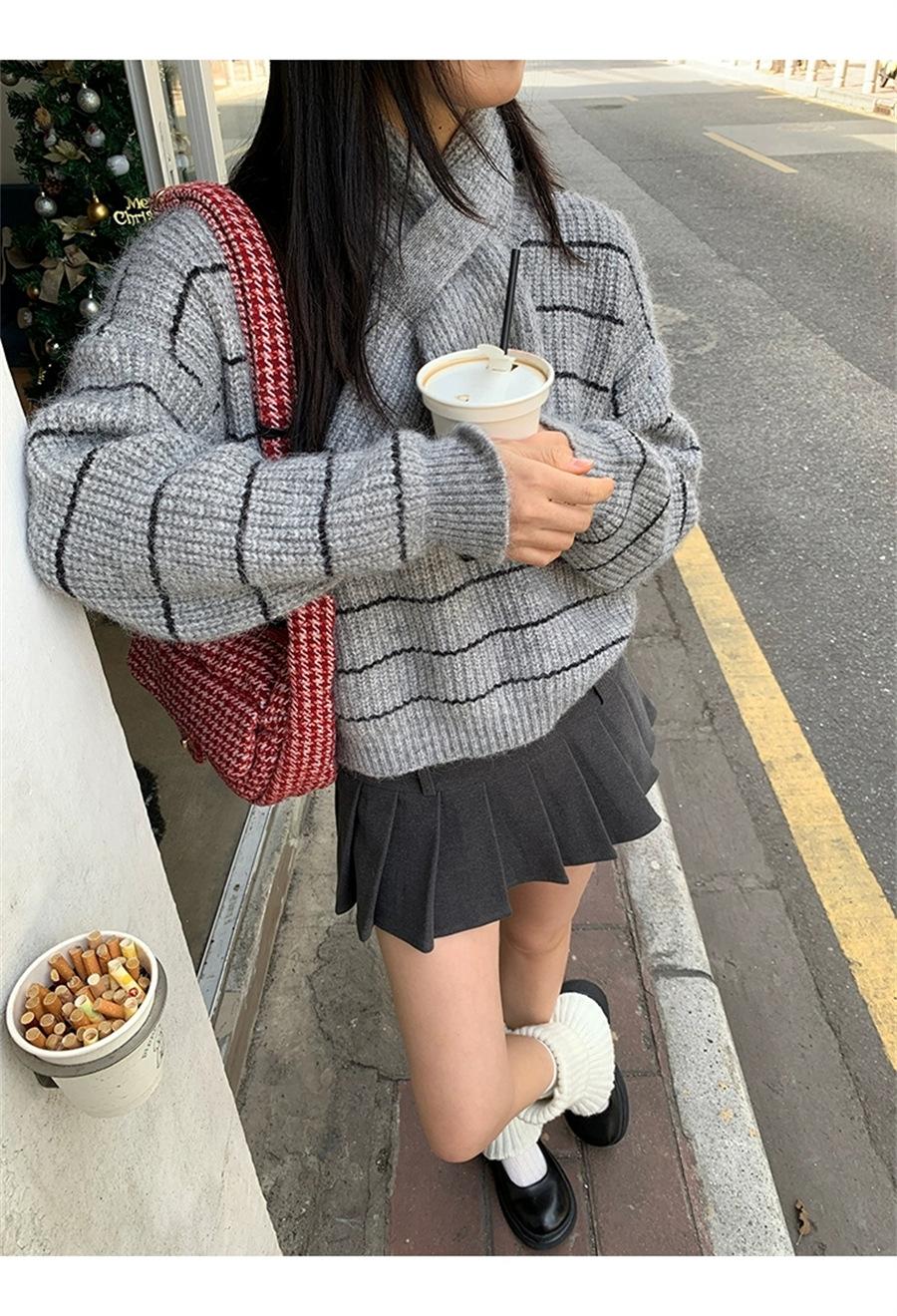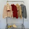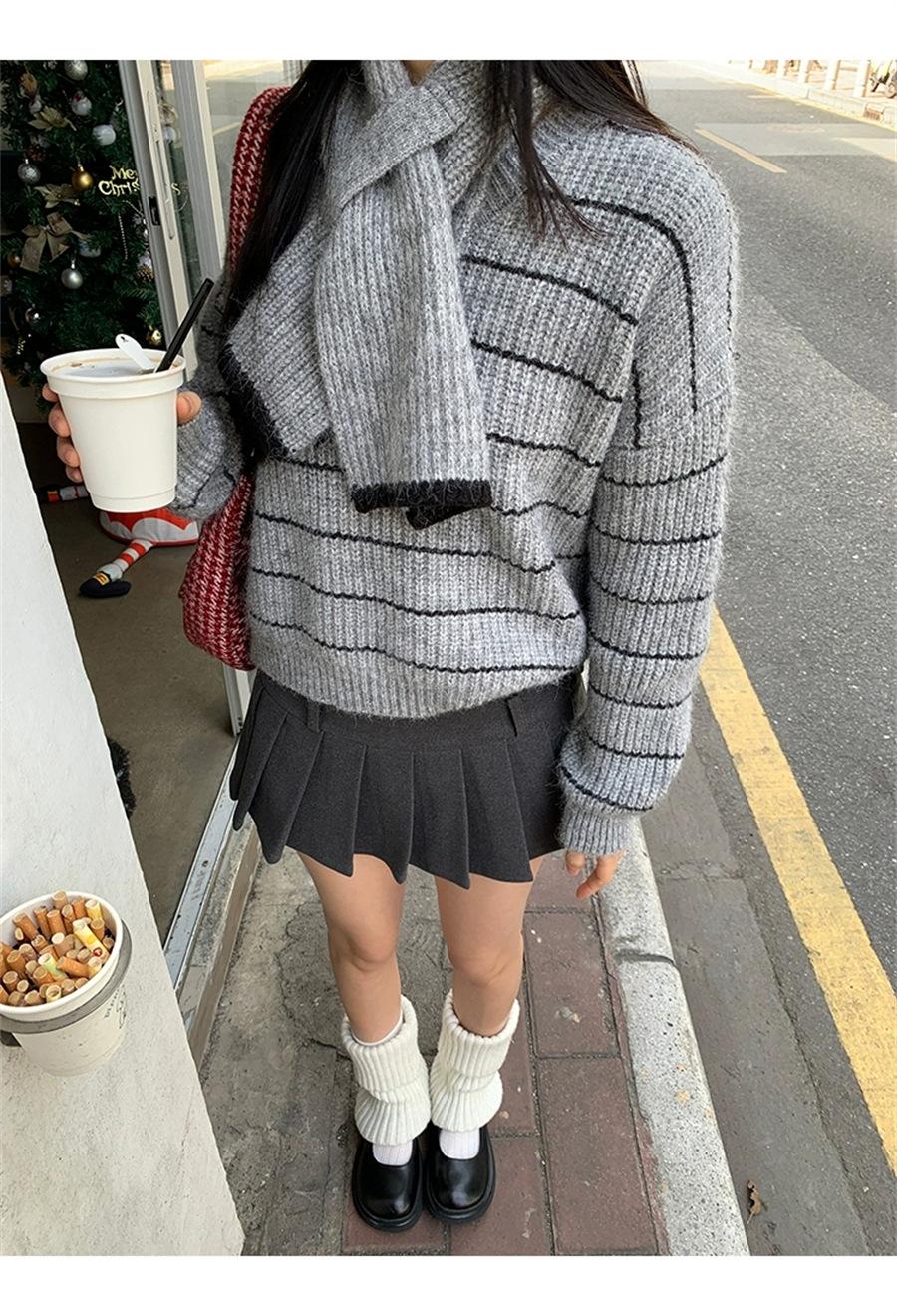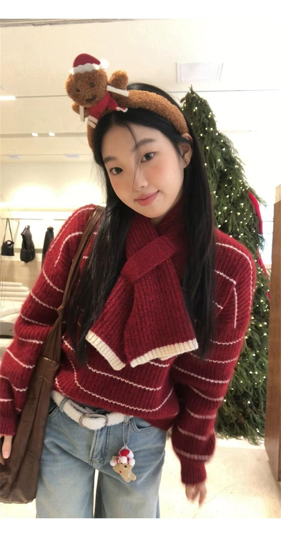 Novo Cardigã de Tricô Listrado com Bloco de Cores Versátil Solto Estilo Coreano da Moda Outono/Inverno com Cachecol Top