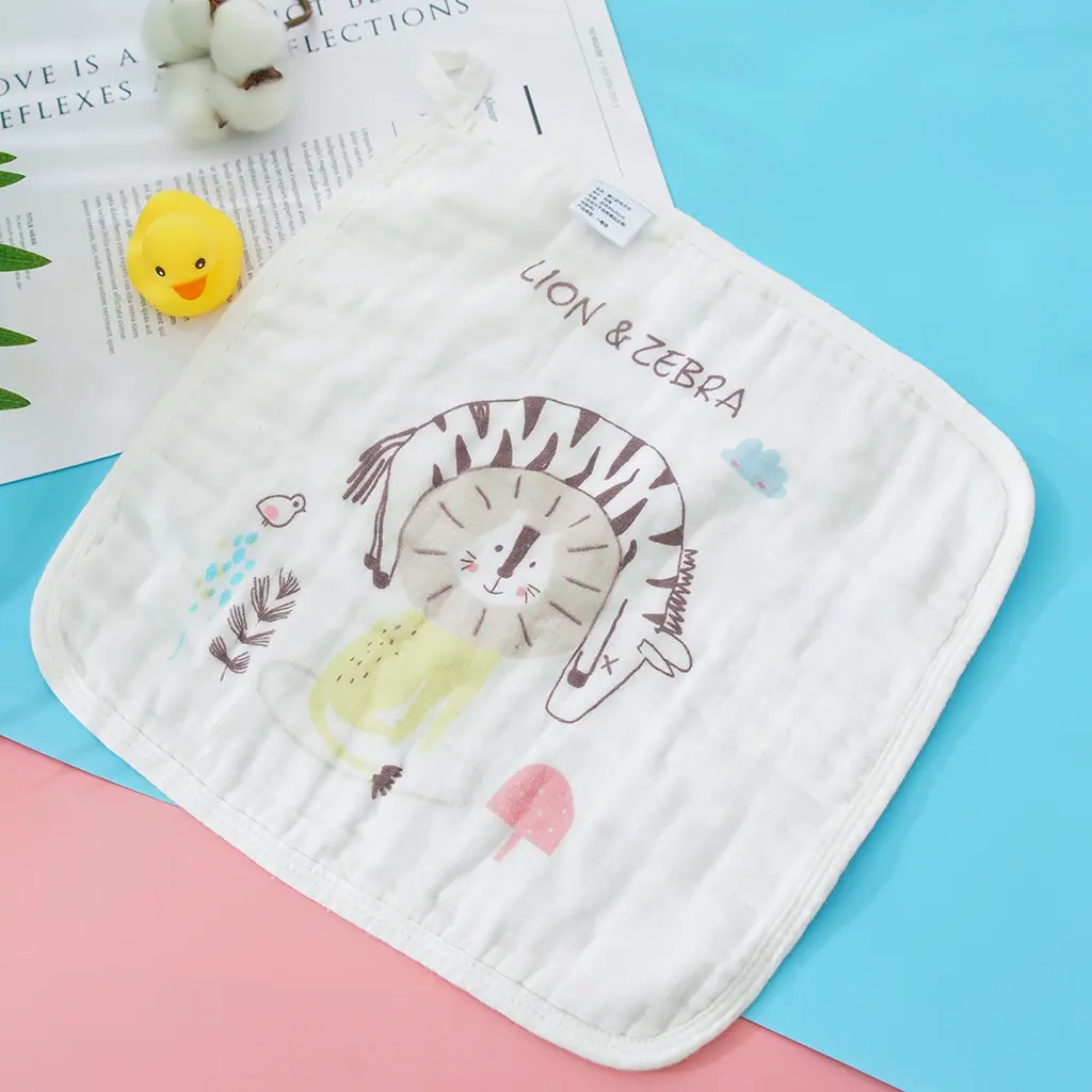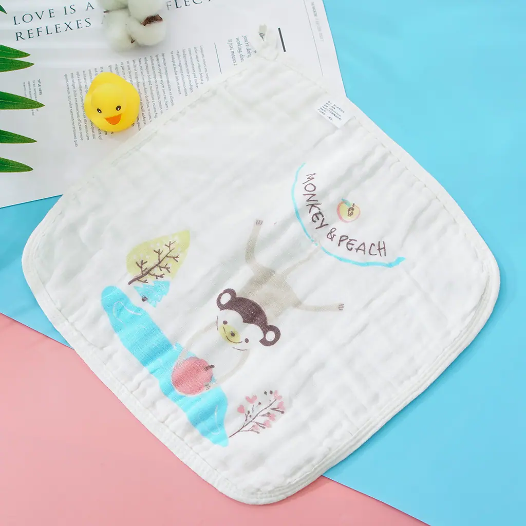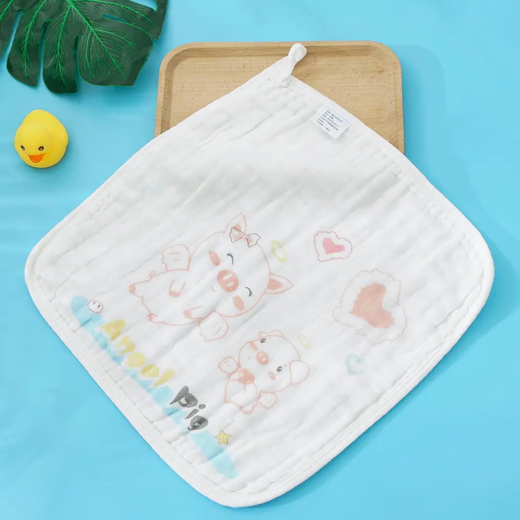 Toalha Quadrada de Algodão Puro com Borda Estampada Babador de Gaze Enrugada Personalizado Toalha de Bebê de Algodão Classe A Gaze de Seis Camadas