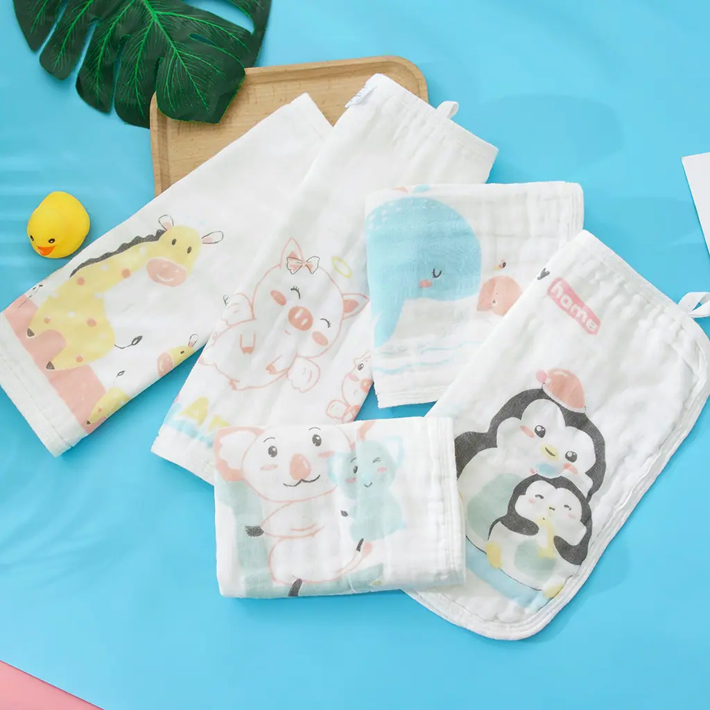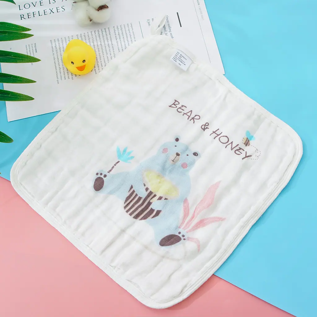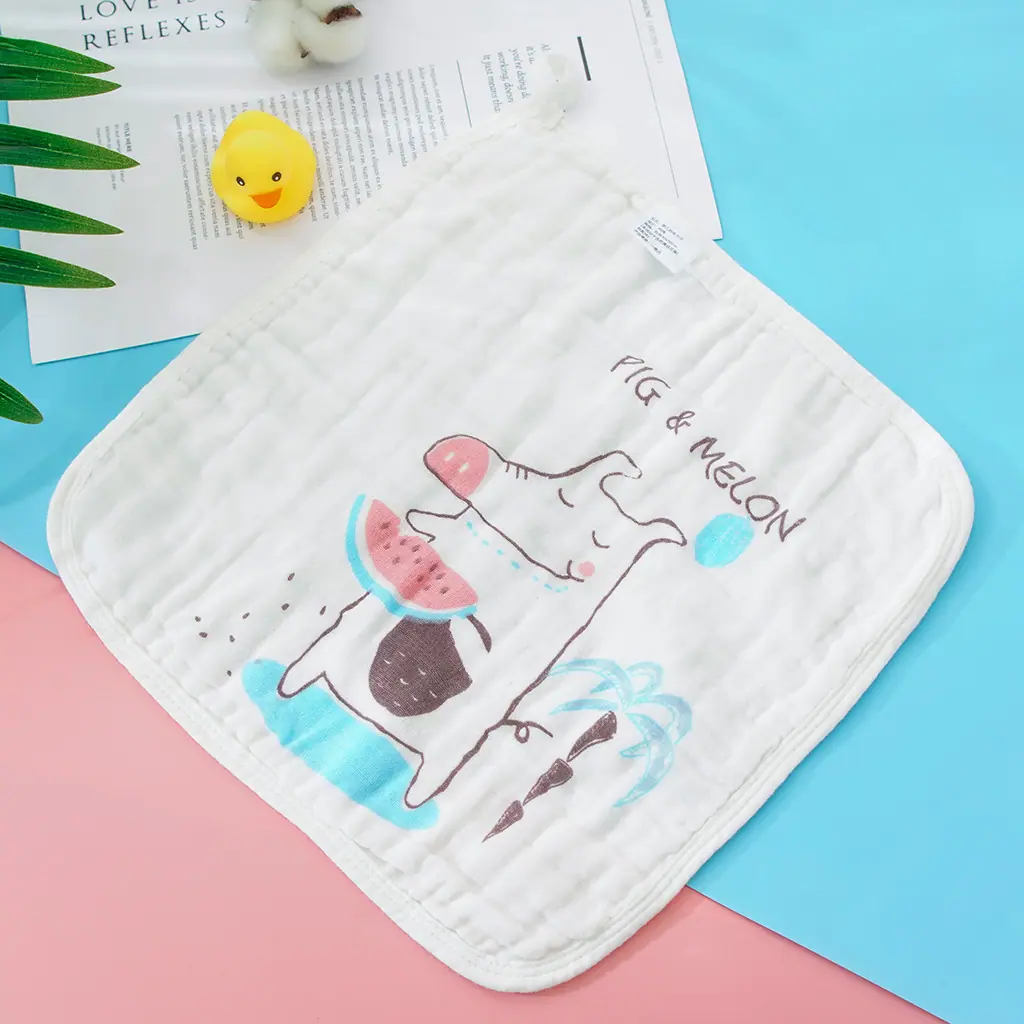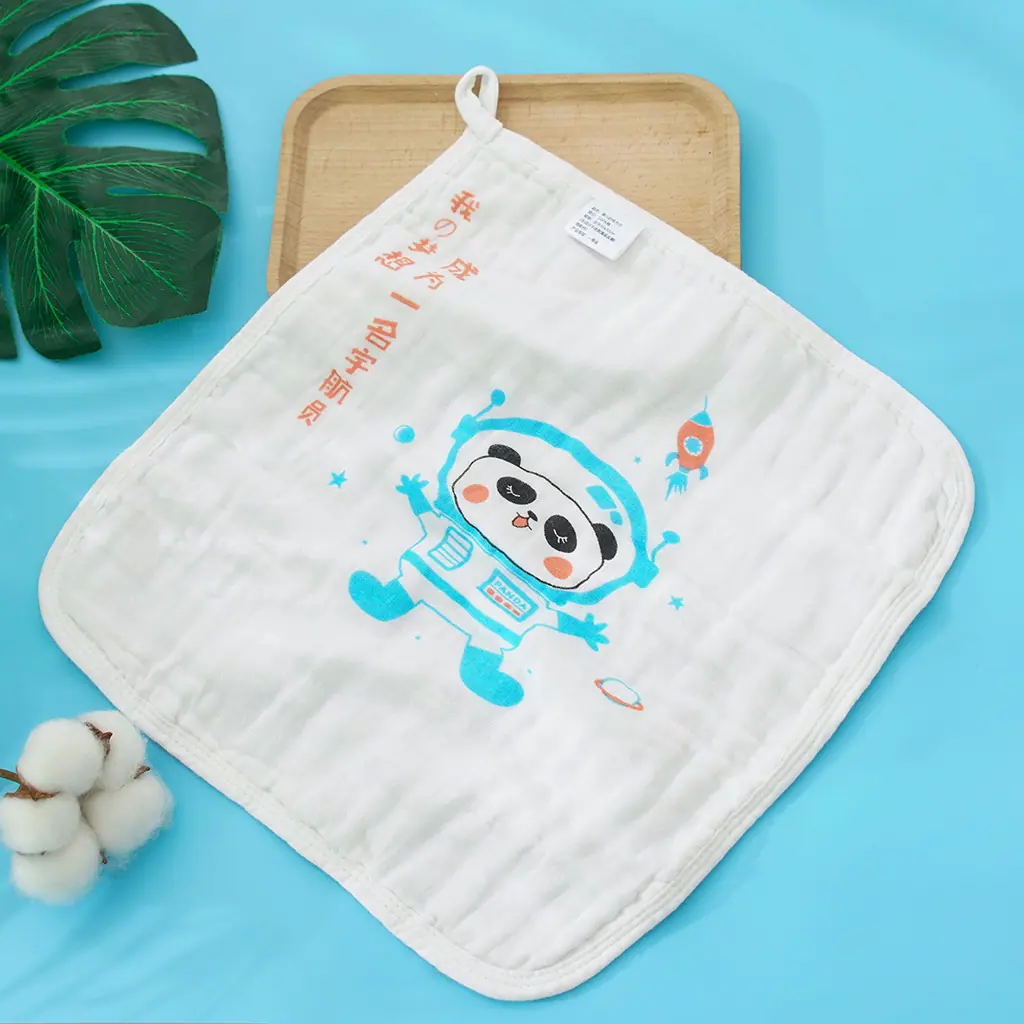 Toalha Quadrada de Algodão Puro com Borda Estampada Babador de Gaze Enrugada Personalizado Toalha de Bebê de Algodão Classe A Gaze de Seis Camadas