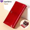 Carteira Longa de Couro Transfronteiriça Couro Bovino Camada Superior Bolsa de Mão Feminina de Alto Nível Brilhante Carteira Estilo Novo Clipe Longo Feminino