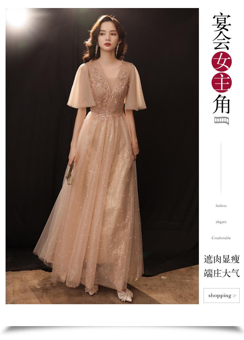 Vestido de Noite para Reunião Anual 2025 Novo Vestido Elegante Estilo Floresta Anfitrião Longo Vestido de Noite para Banquete