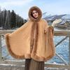Design Transfronteiriço Bainha Bola de Pelo Casaco Capa Mid-length Cor Pura Estilo Ocidental Senhora Tamanho Grande Xale Capa para Mulheres