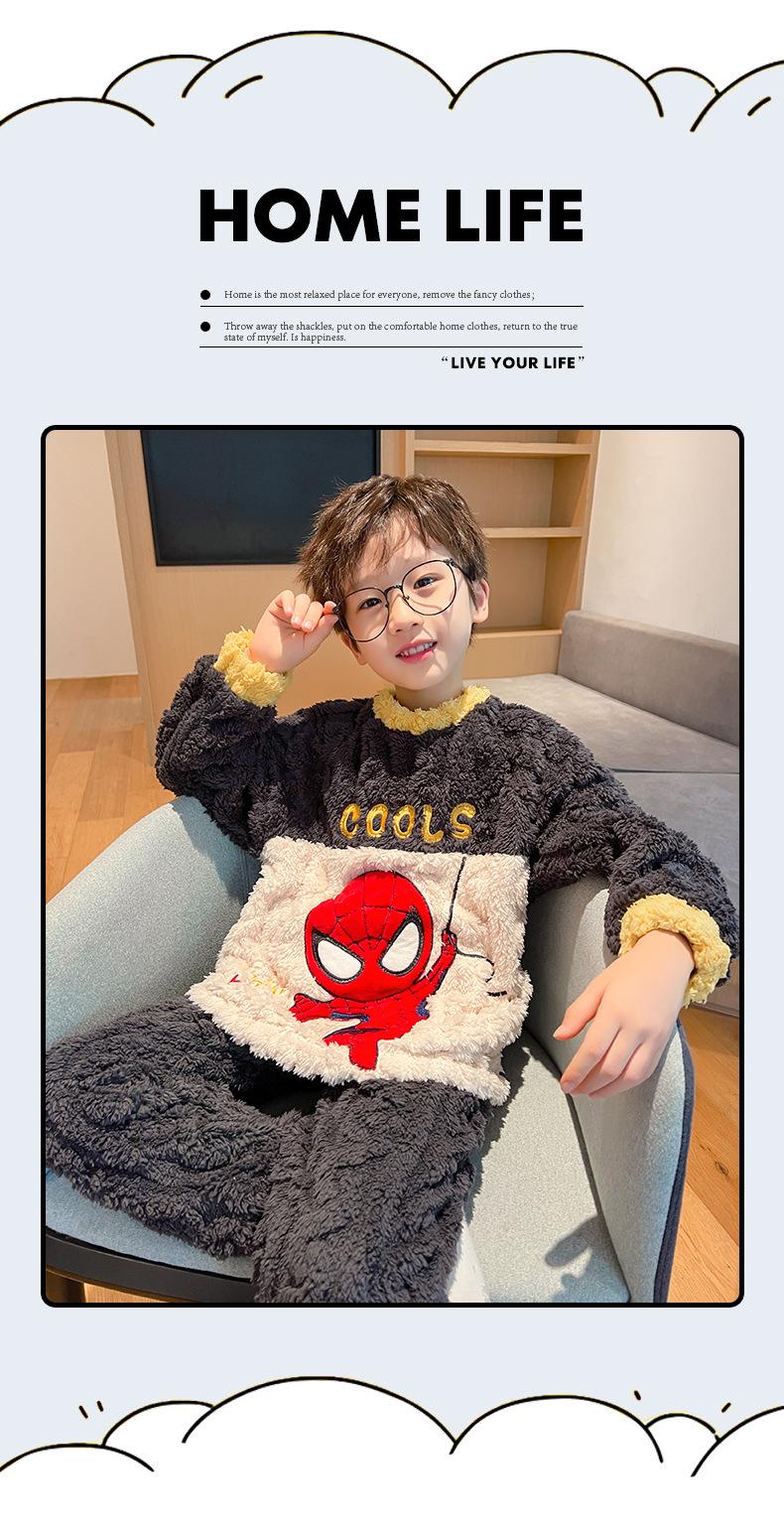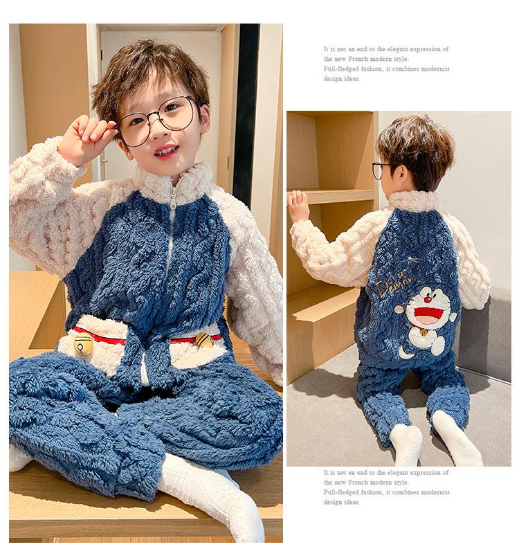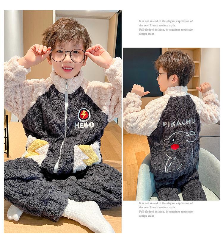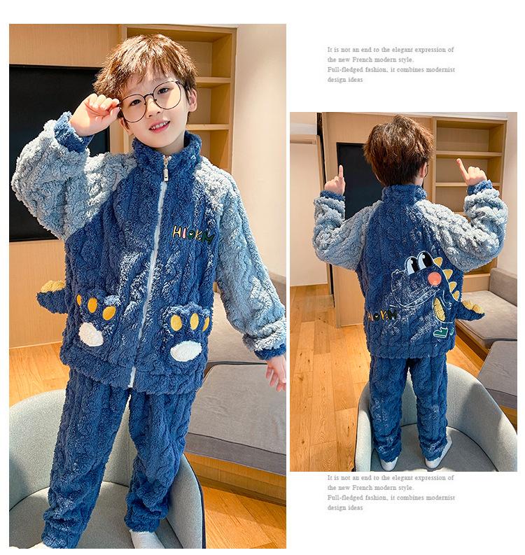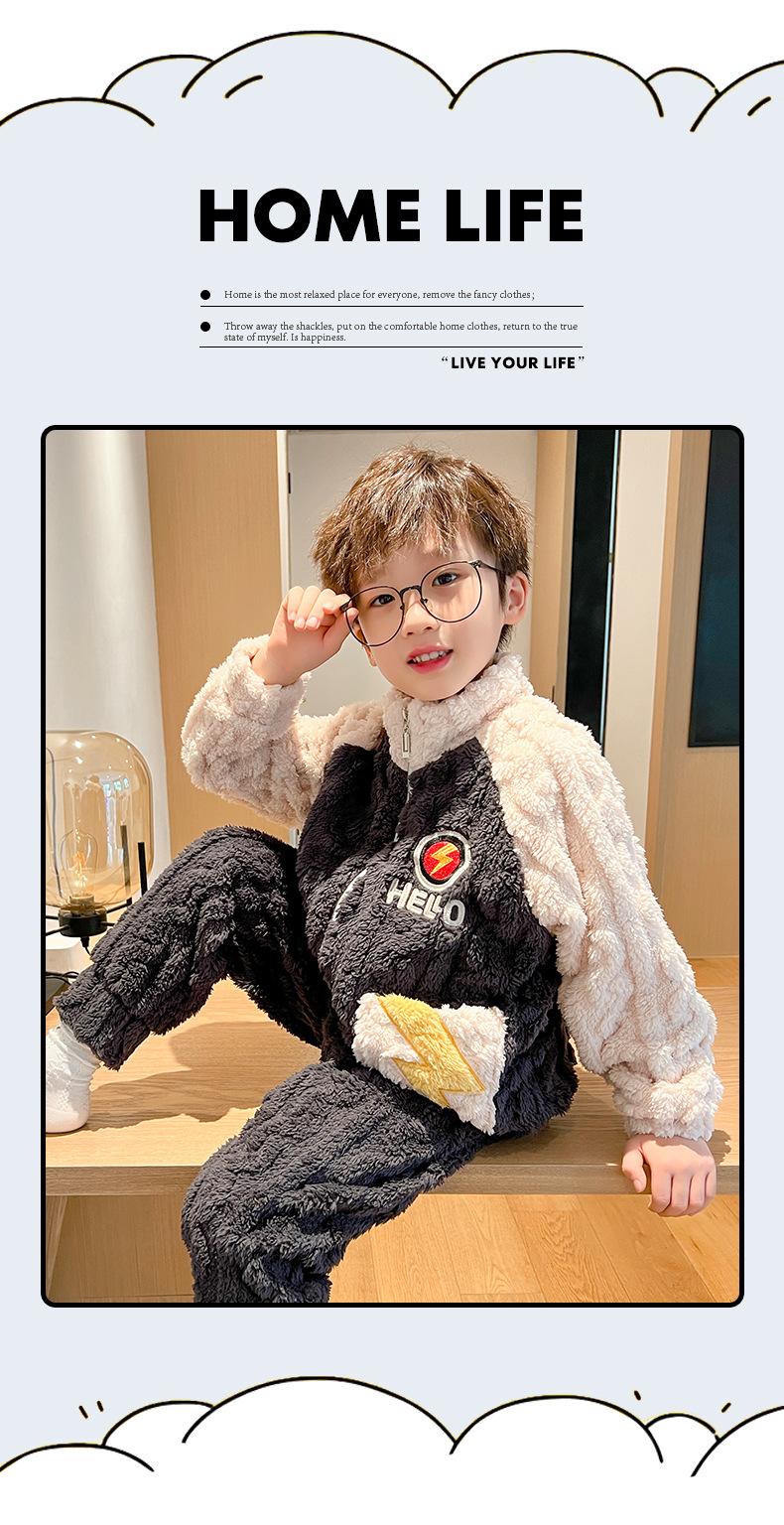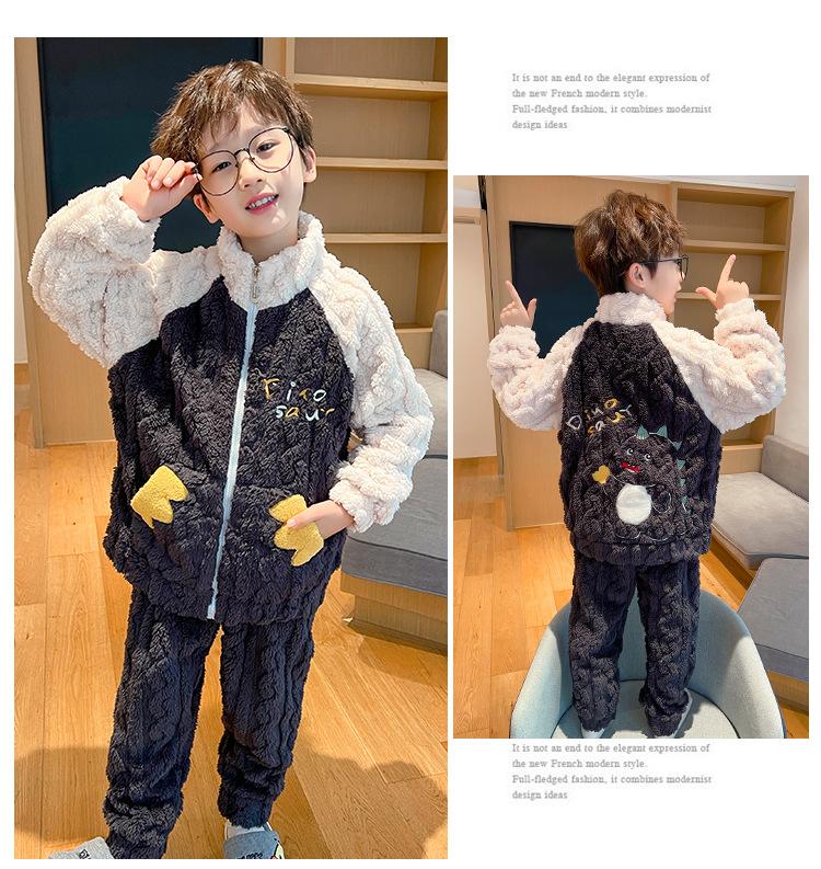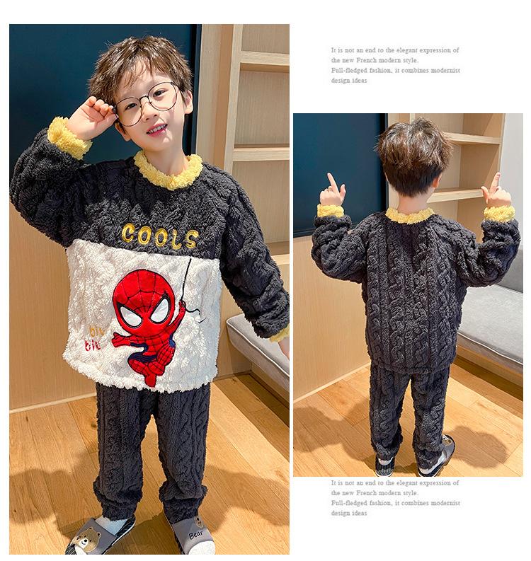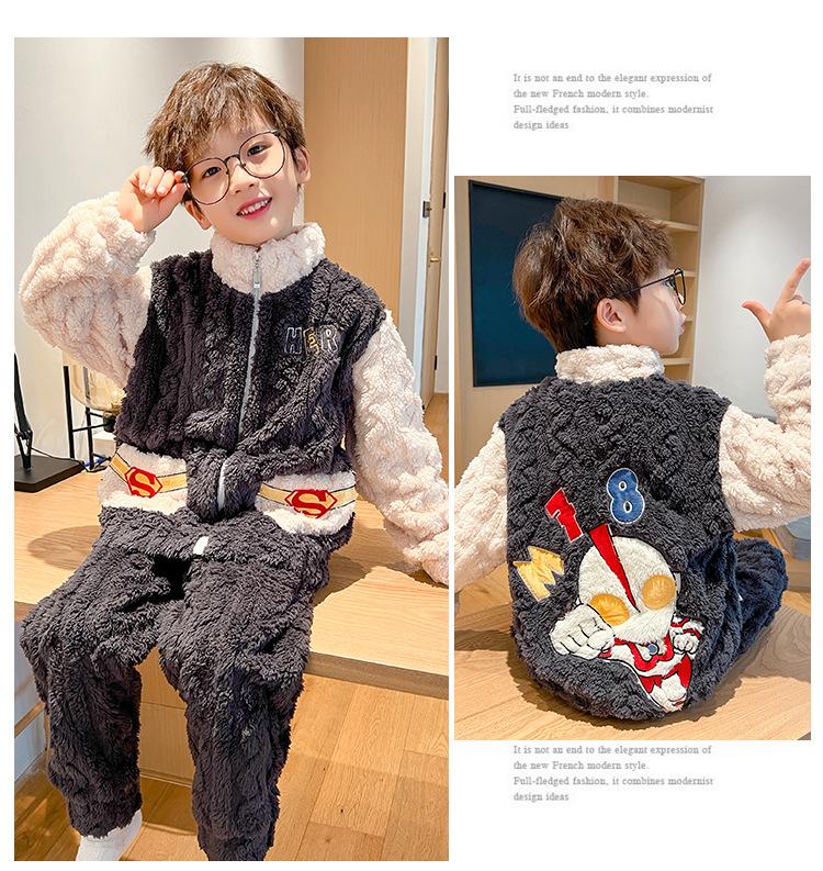 Pijamas de pelúcia infantis para meninos, outono e inverno, lã coral espessada para meninos, roupas de desenho animado para casa
