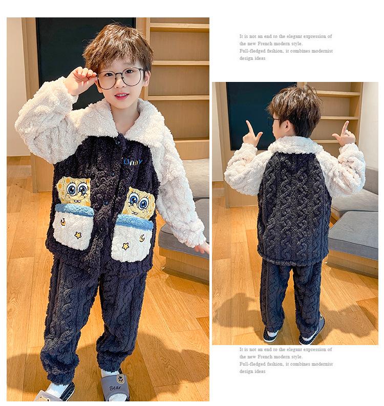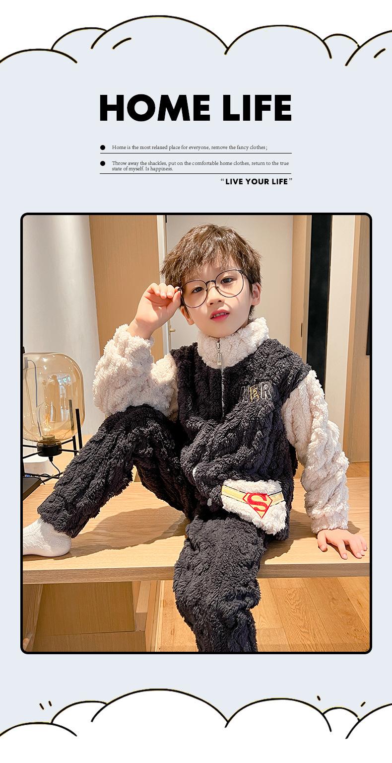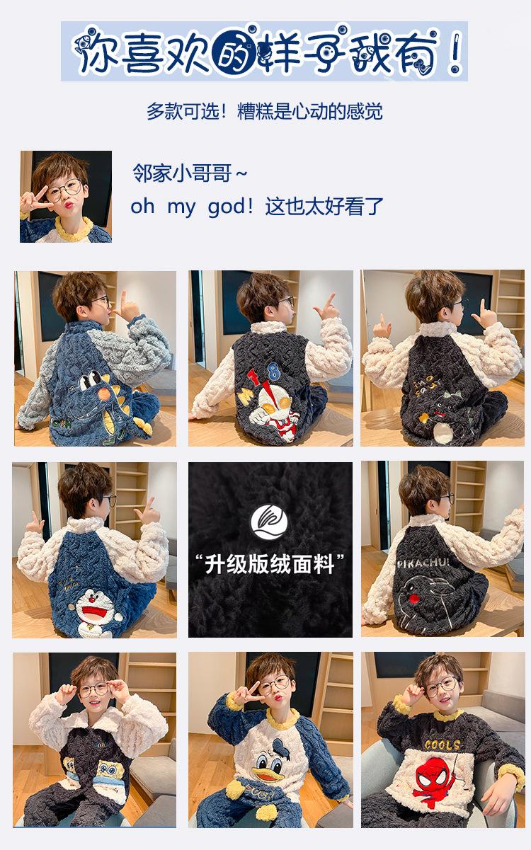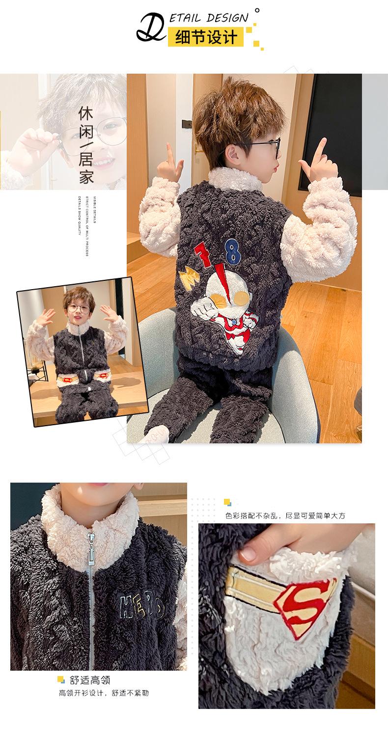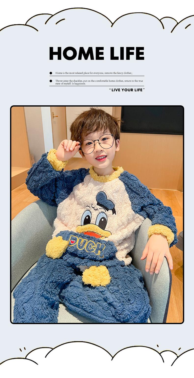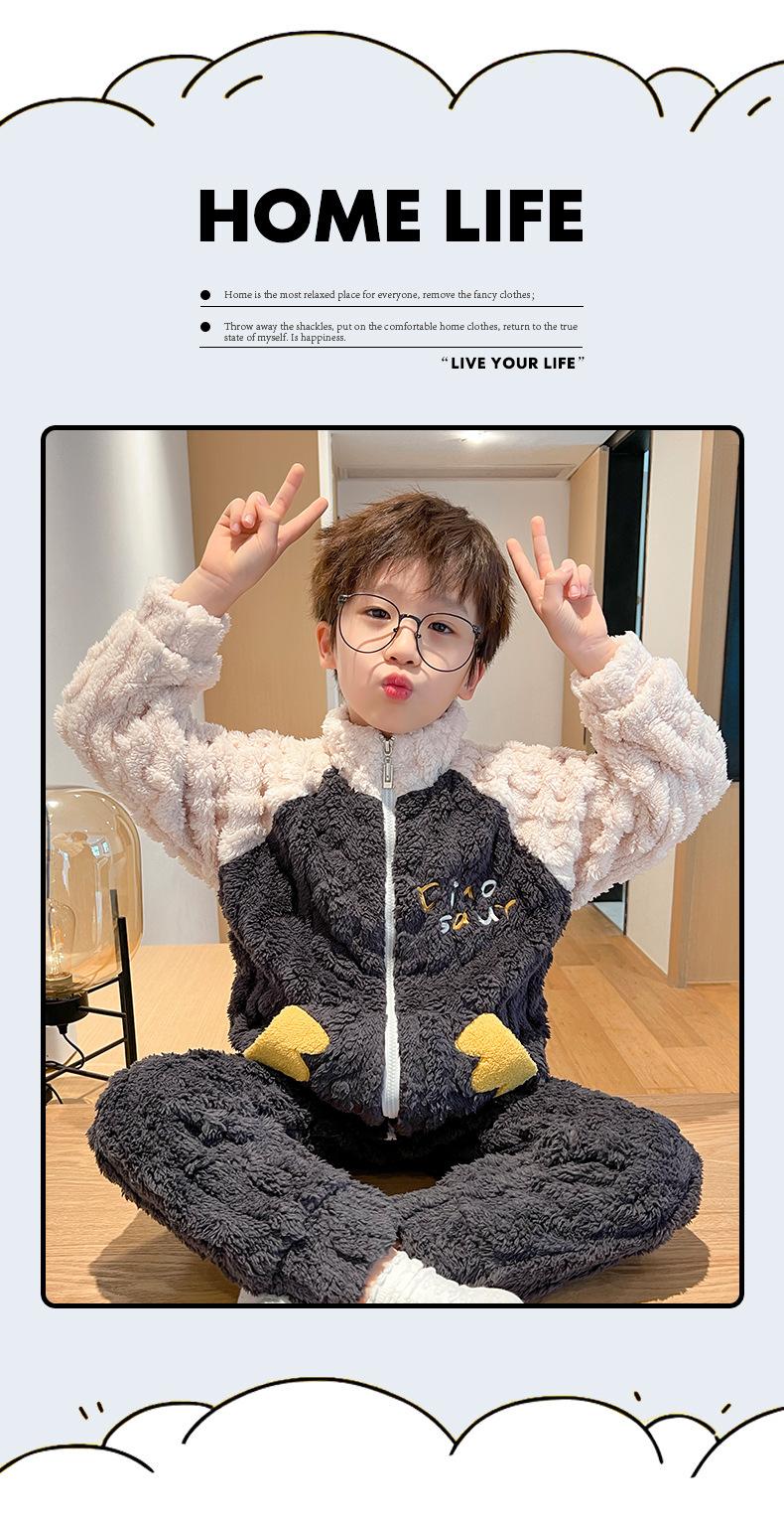 Pijamas de pelúcia infantis para meninos, outono e inverno, lã coral espessada para meninos, roupas de desenho animado para casa