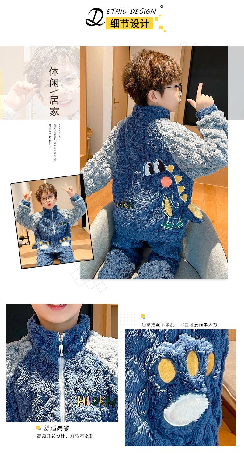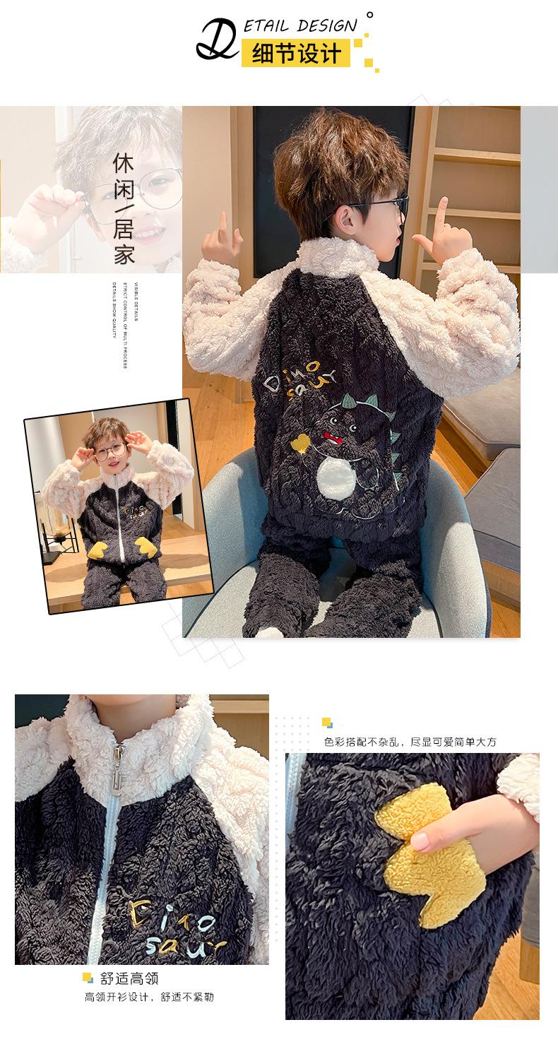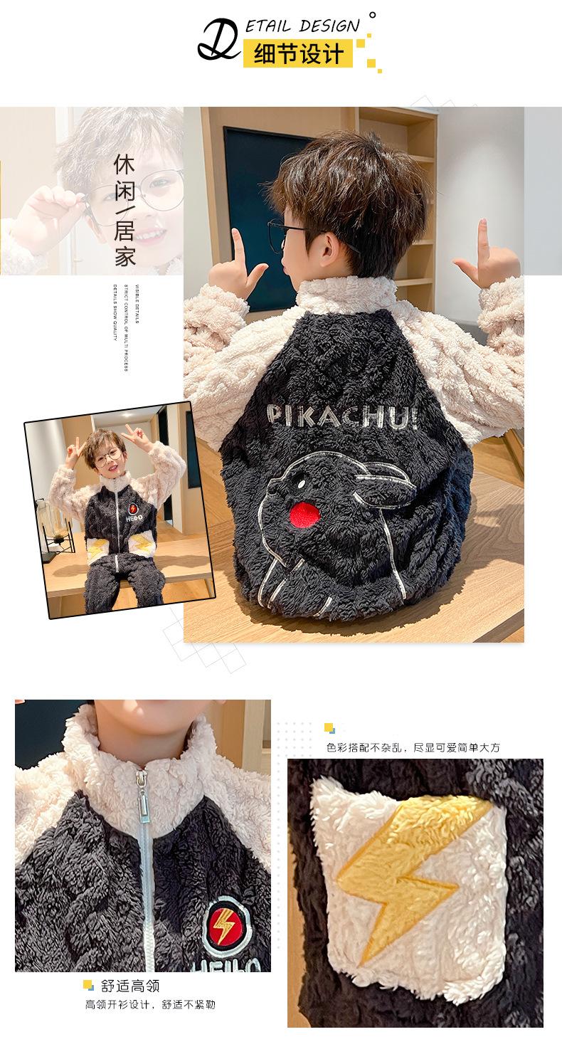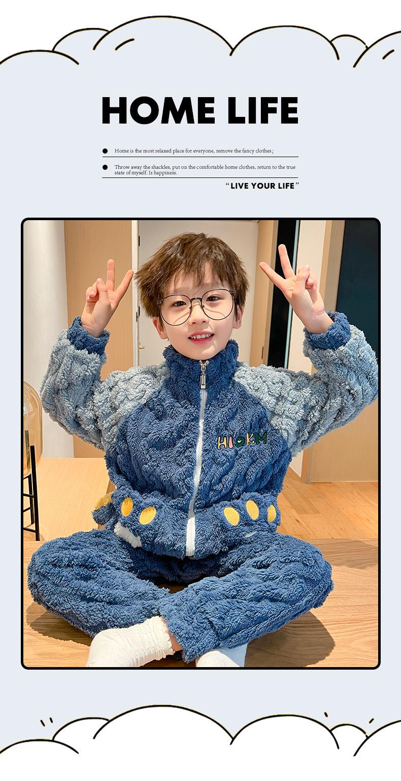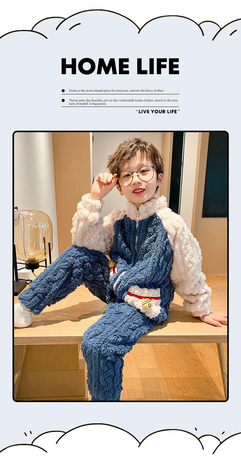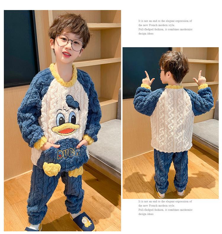 Pijamas de pelúcia infantis para meninos, outono e inverno, lã coral espessada para meninos, roupas de desenho animado para casa