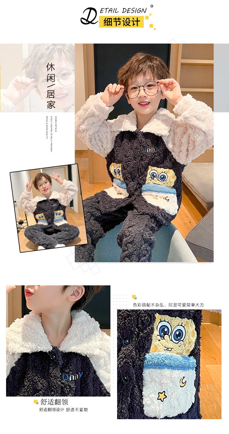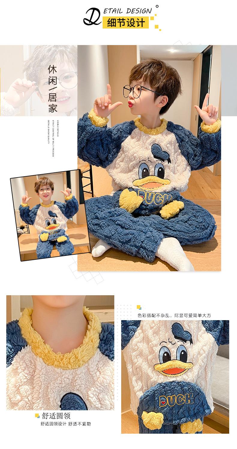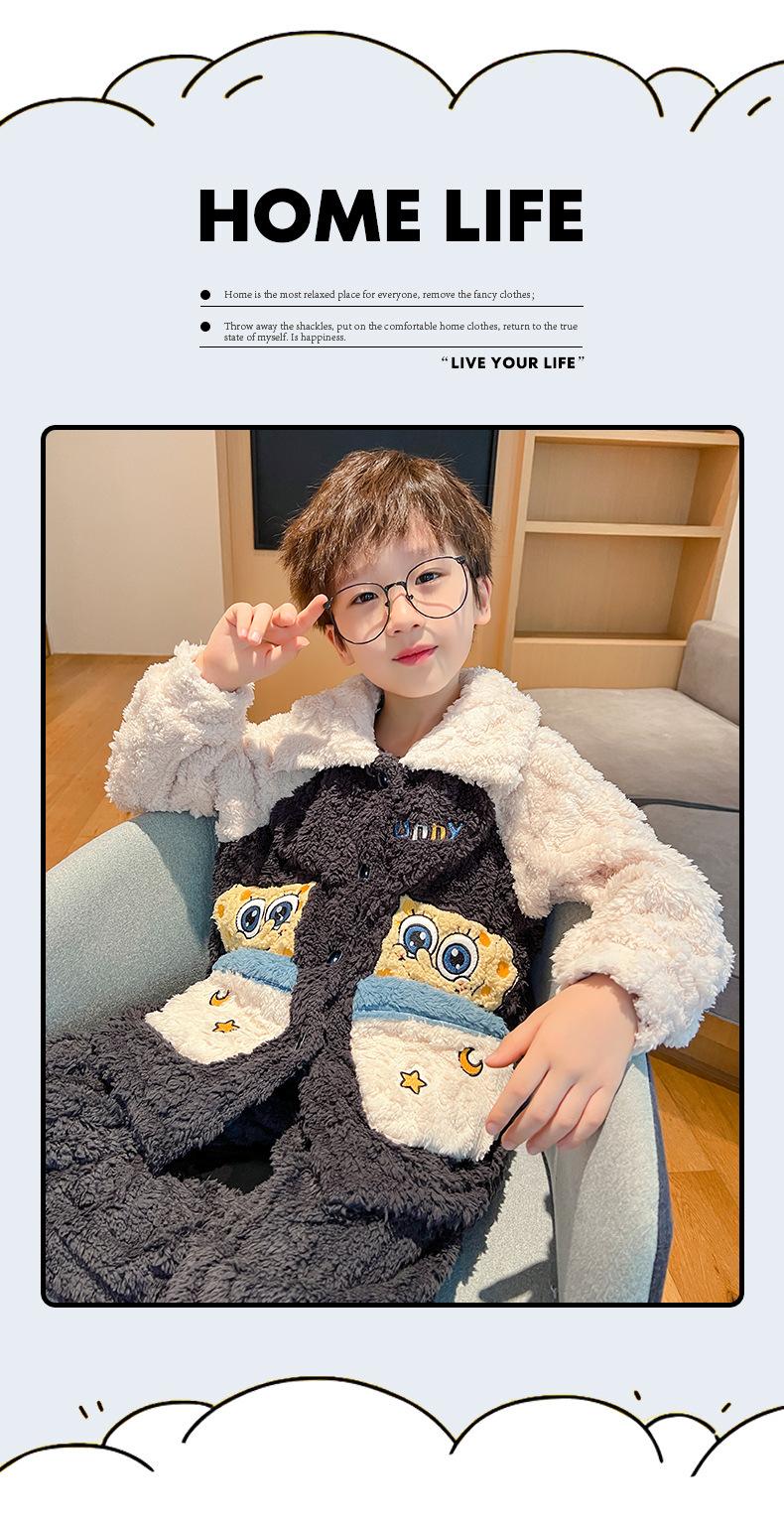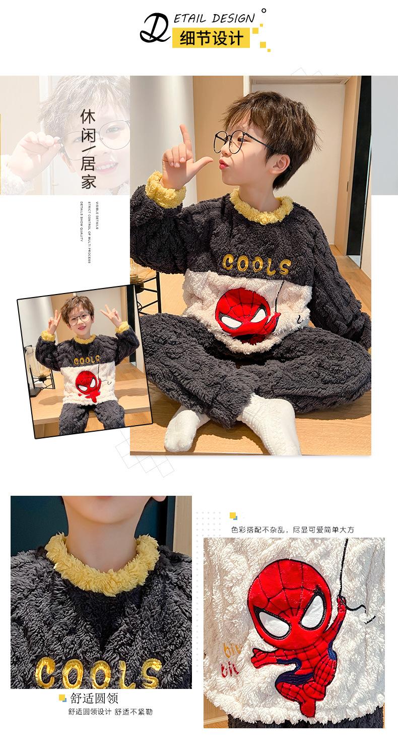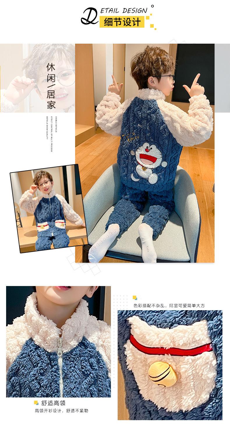 Pijamas de pelúcia infantis para meninos, outono e inverno, lã coral espessada para meninos, roupas de desenho animado para casa