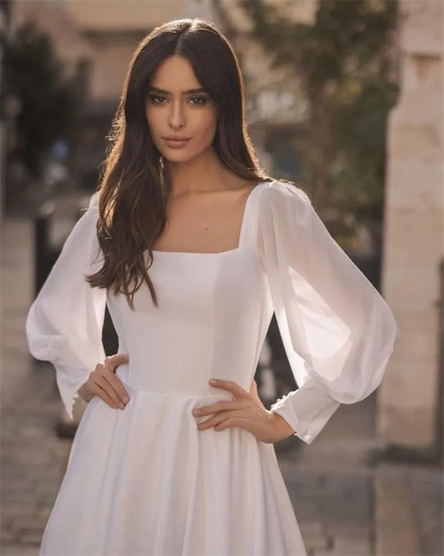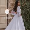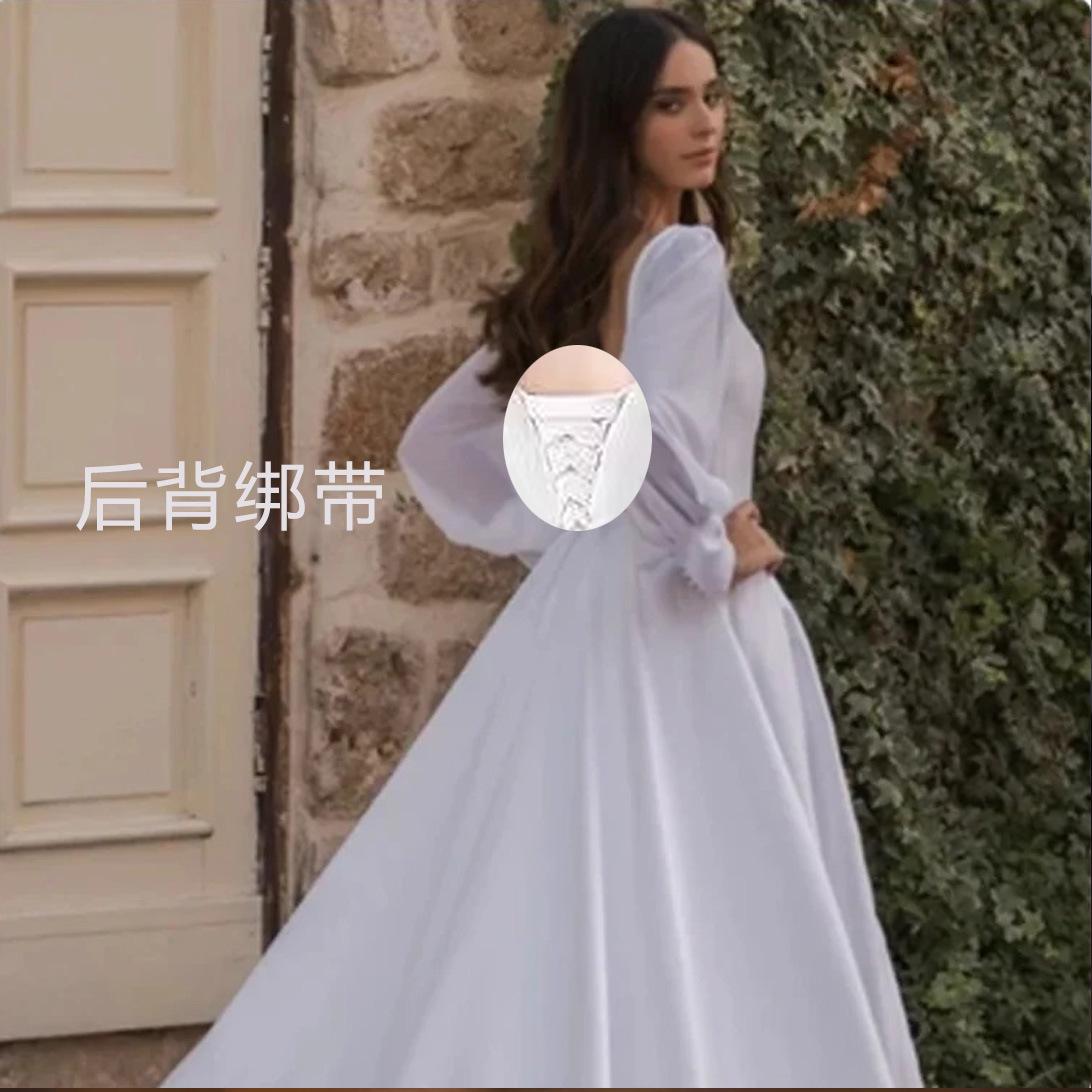 Vestido de Noiva Europeu e Americano 2025 Novo Cetim Manga Longa Chiffon Vestido de Noiva Longo Moda Sem Costas
