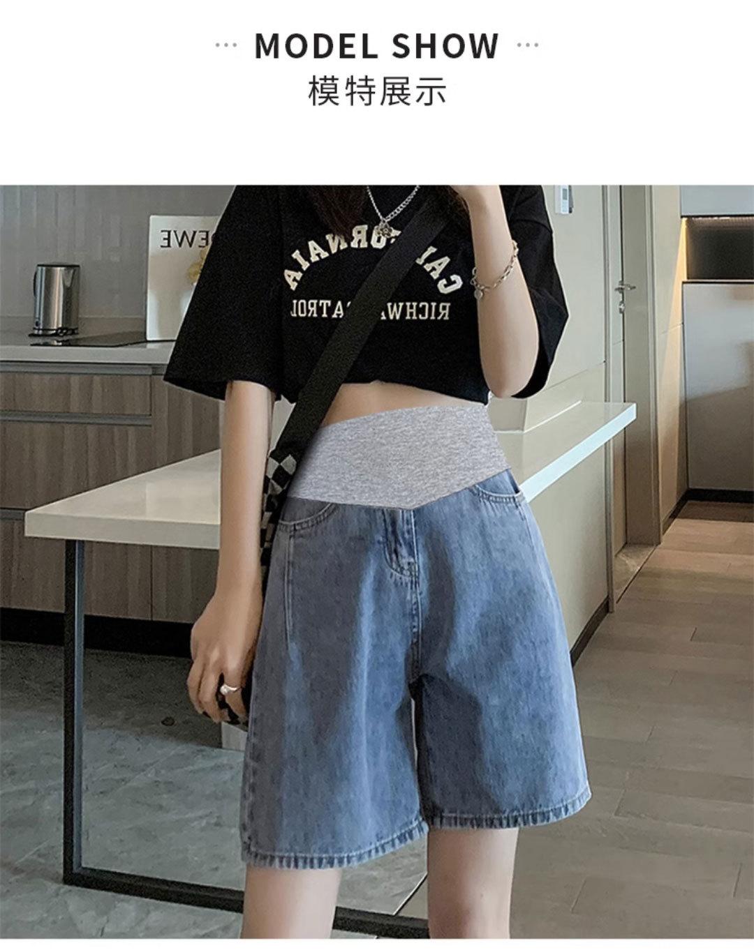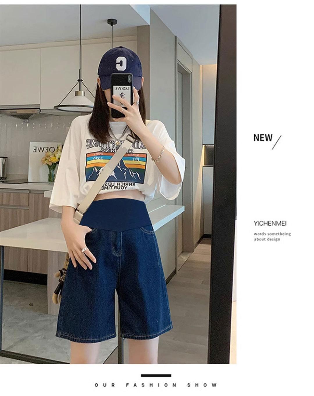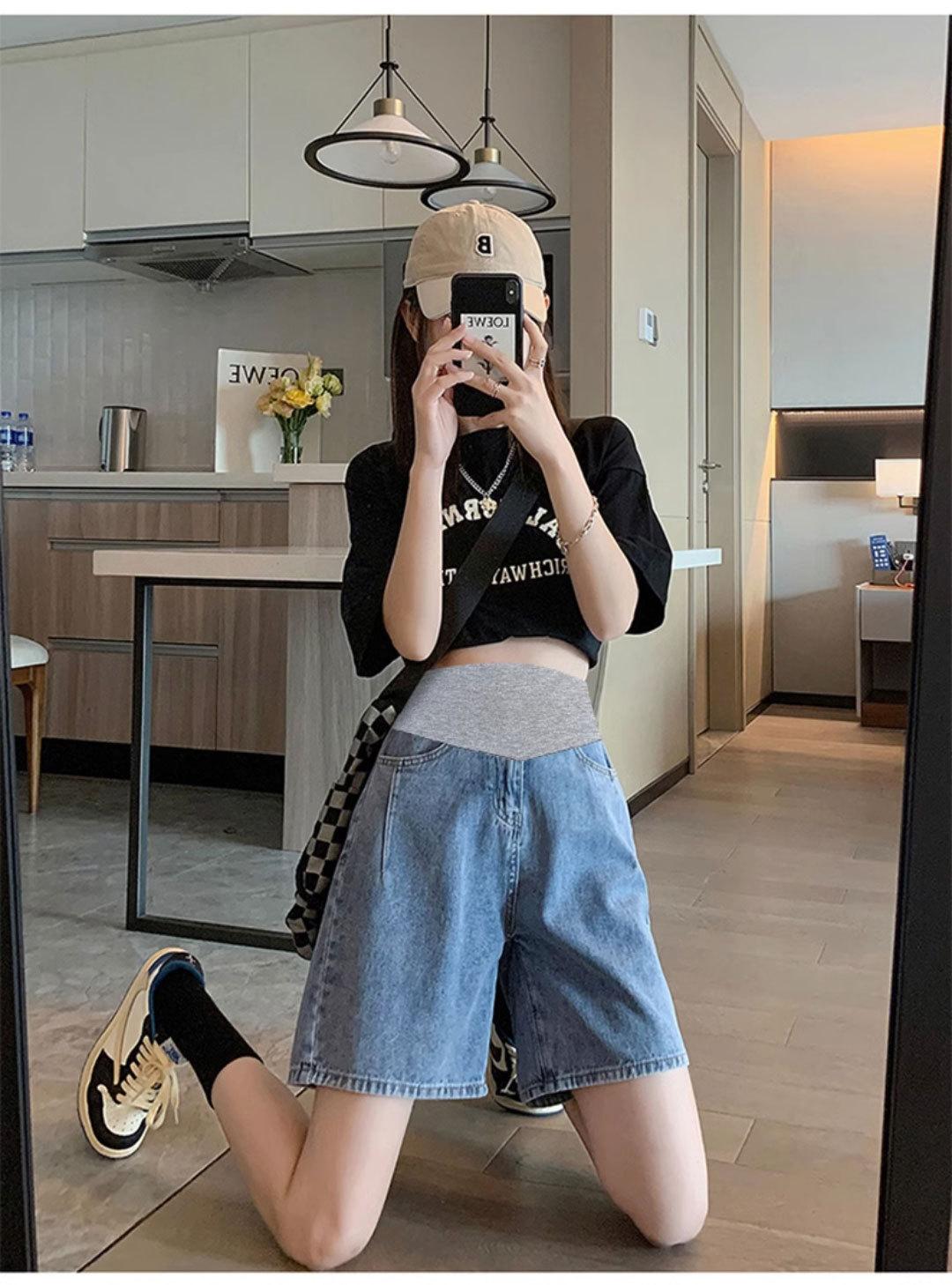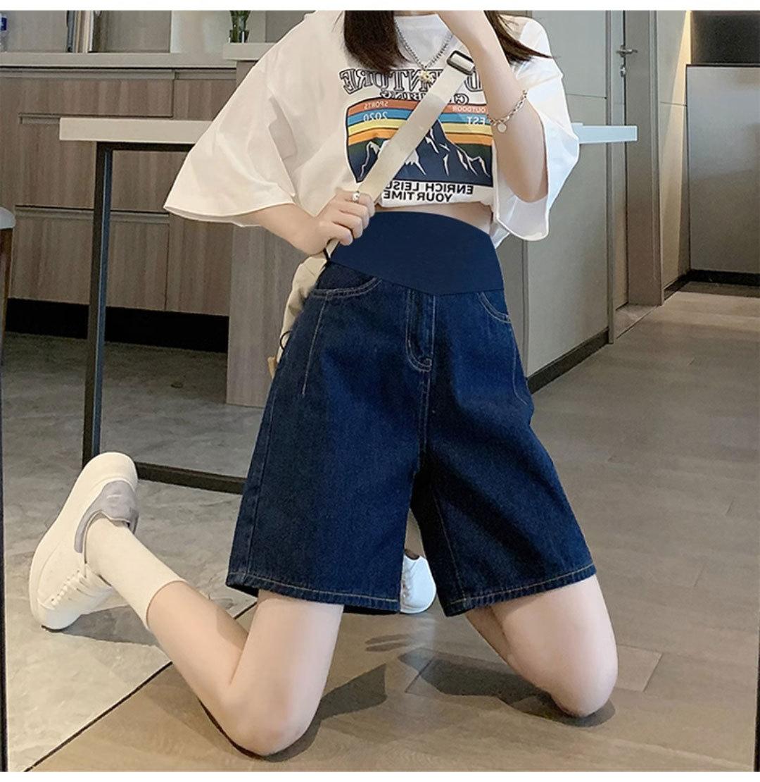 Shorts para Gestantes Roupas de Verão Femininas Cintura Alta Abdominal Calças para Gestantes 2024 Novo Estilo Coreano Solto Combina com Tudo Jeans Moderno