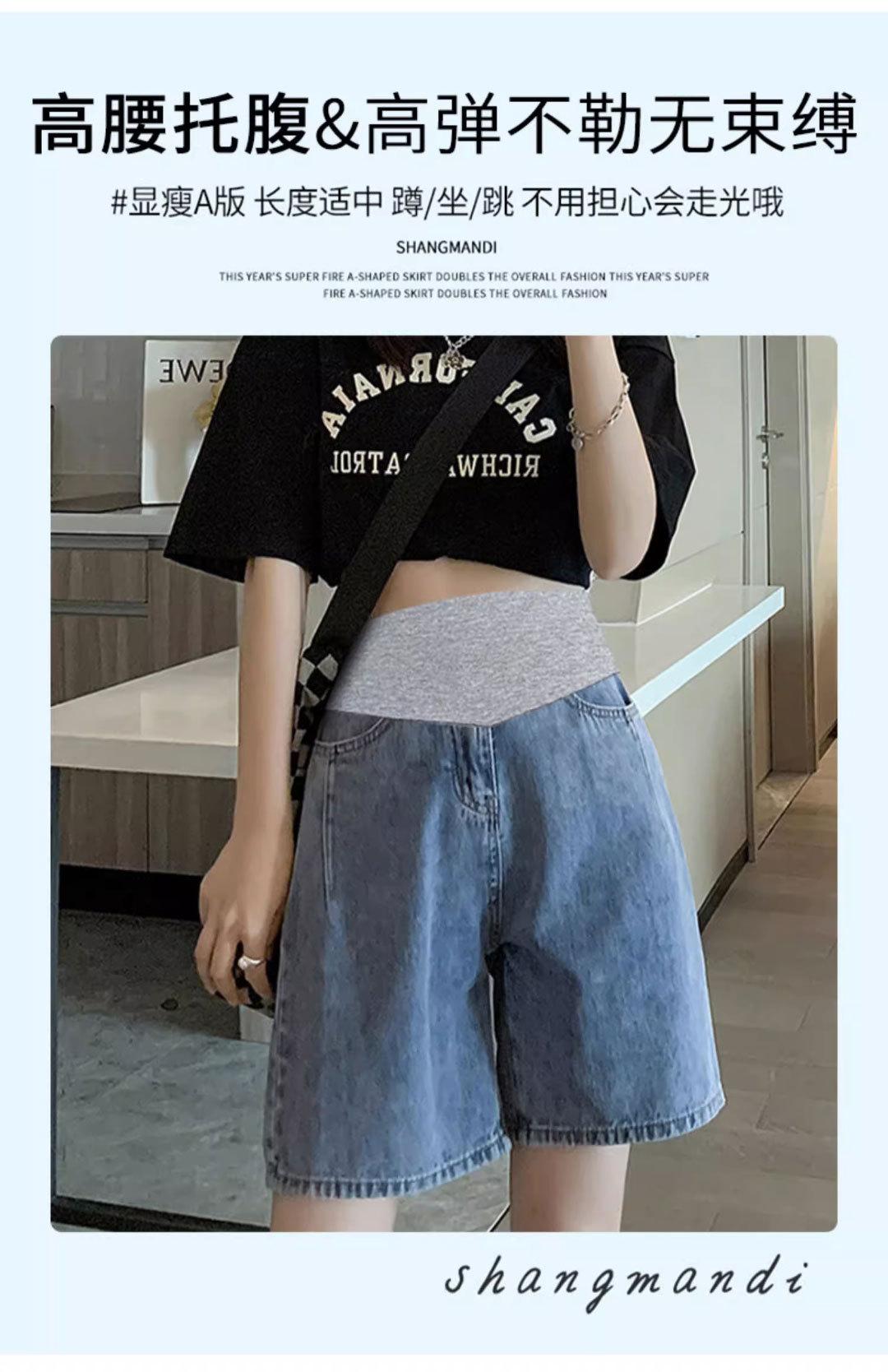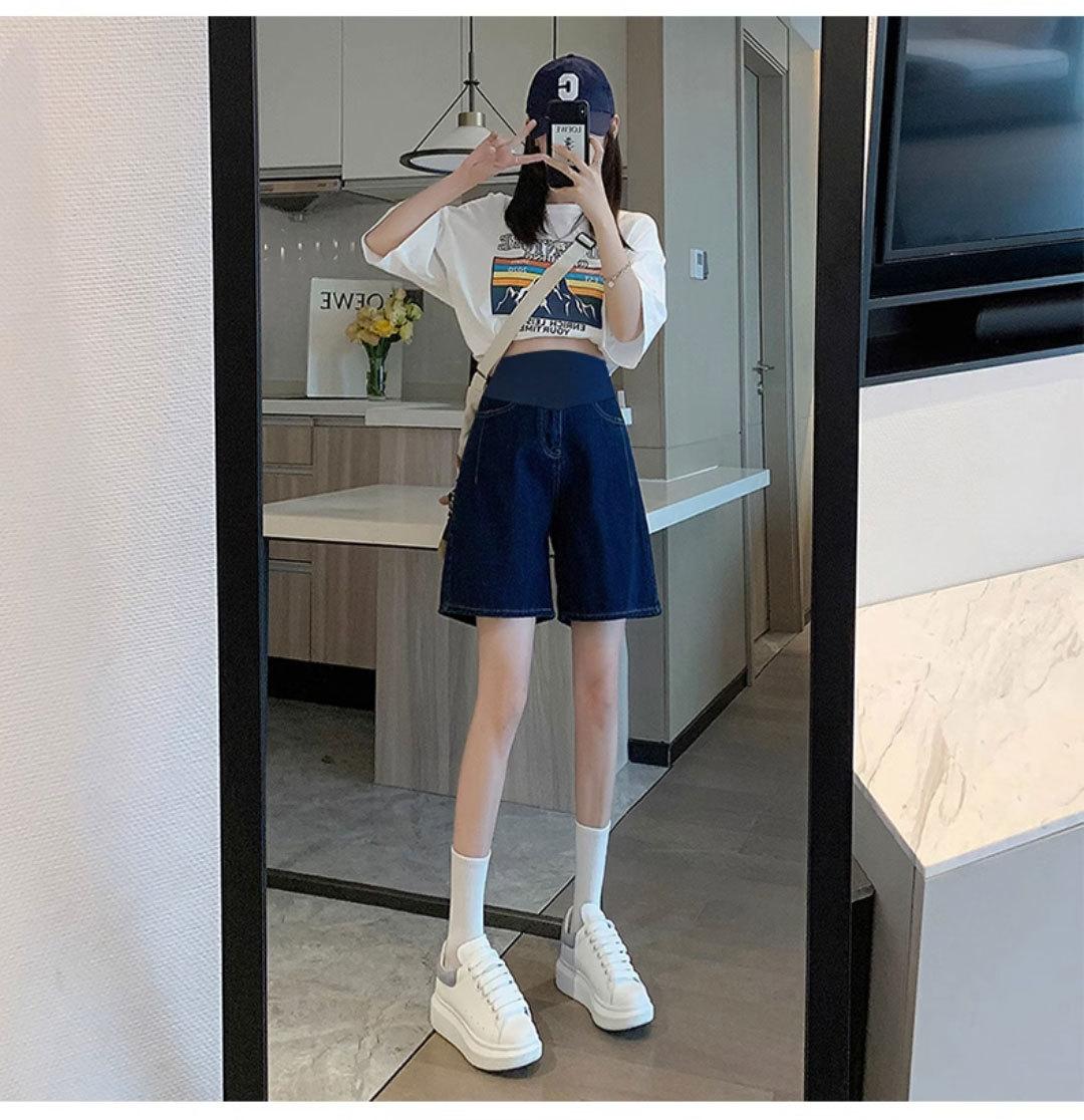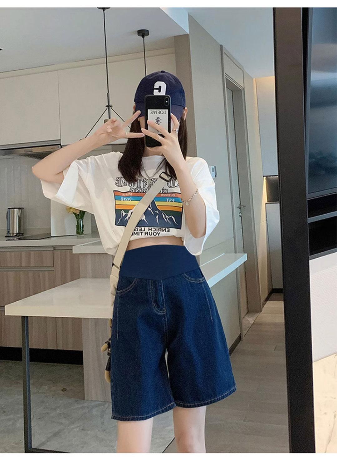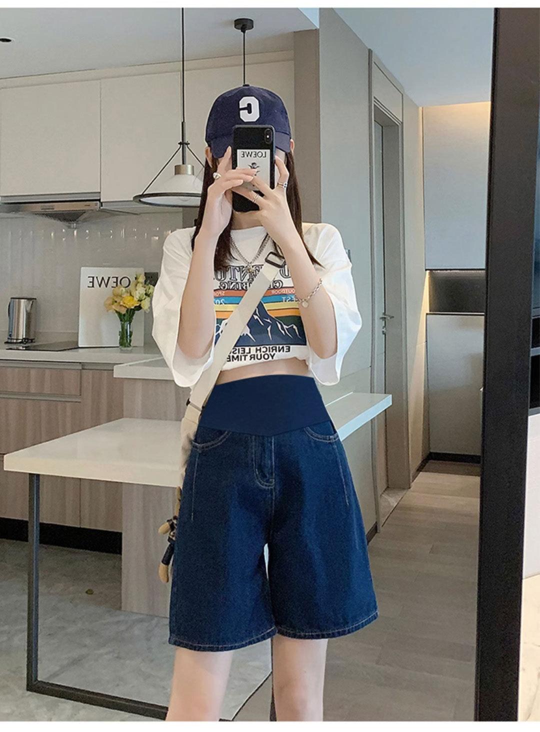 Shorts para Gestantes Roupas de Verão Femininas Cintura Alta Abdominal Calças para Gestantes 2024 Novo Estilo Coreano Solto Combina com Tudo Jeans Moderno