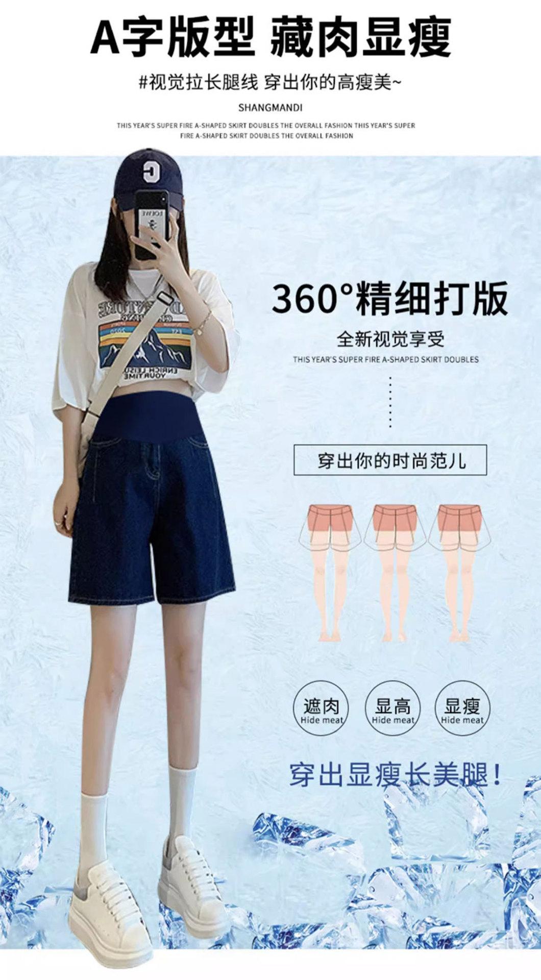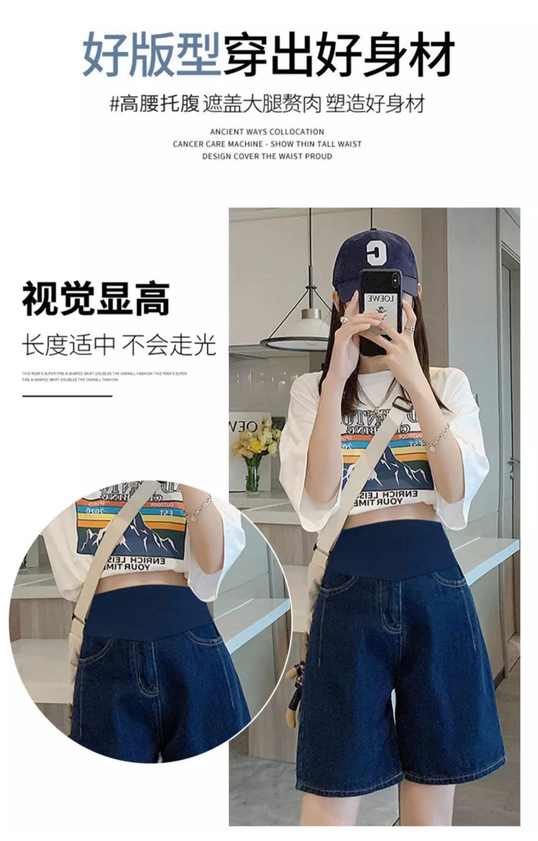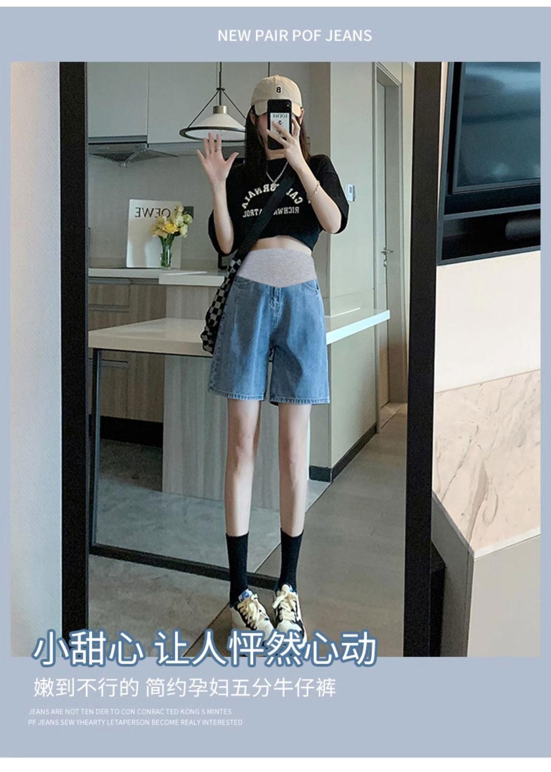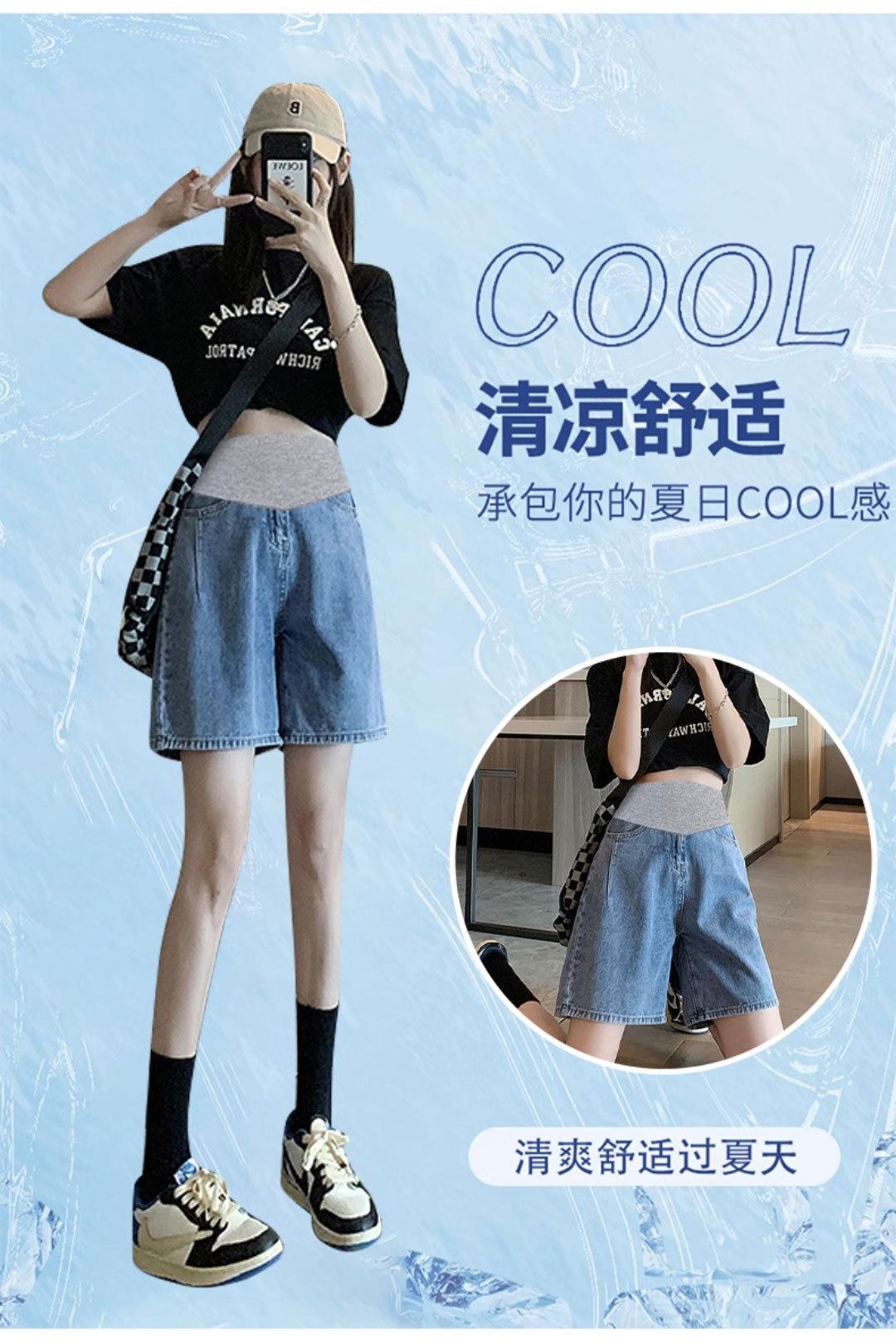 Shorts para Gestantes Roupas de Verão Femininas Cintura Alta Abdominal Calças para Gestantes 2024 Novo Estilo Coreano Solto Combina com Tudo Jeans Moderno