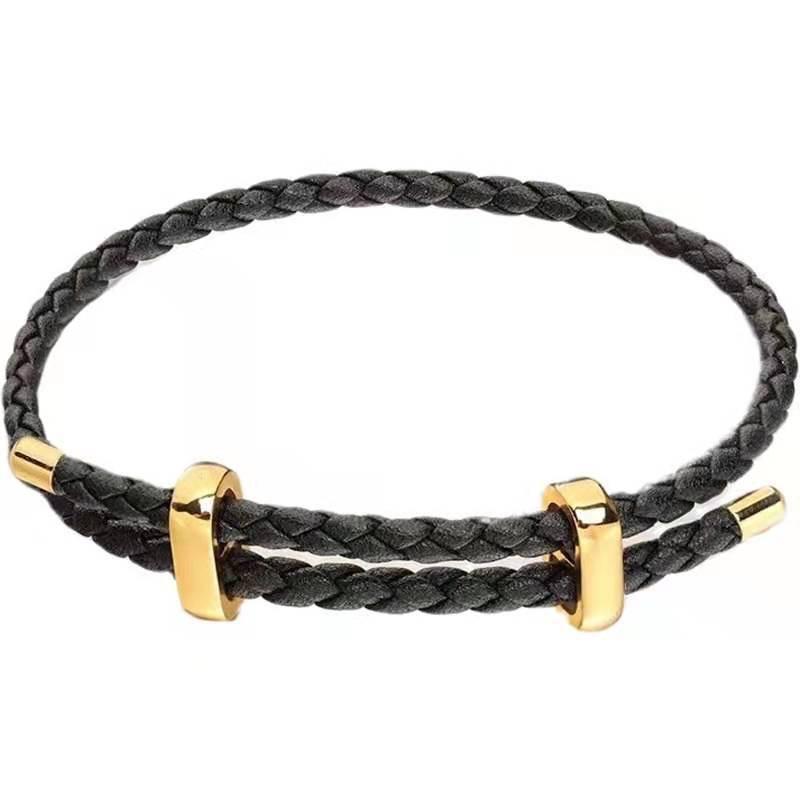 Black leather cord [bracelet]