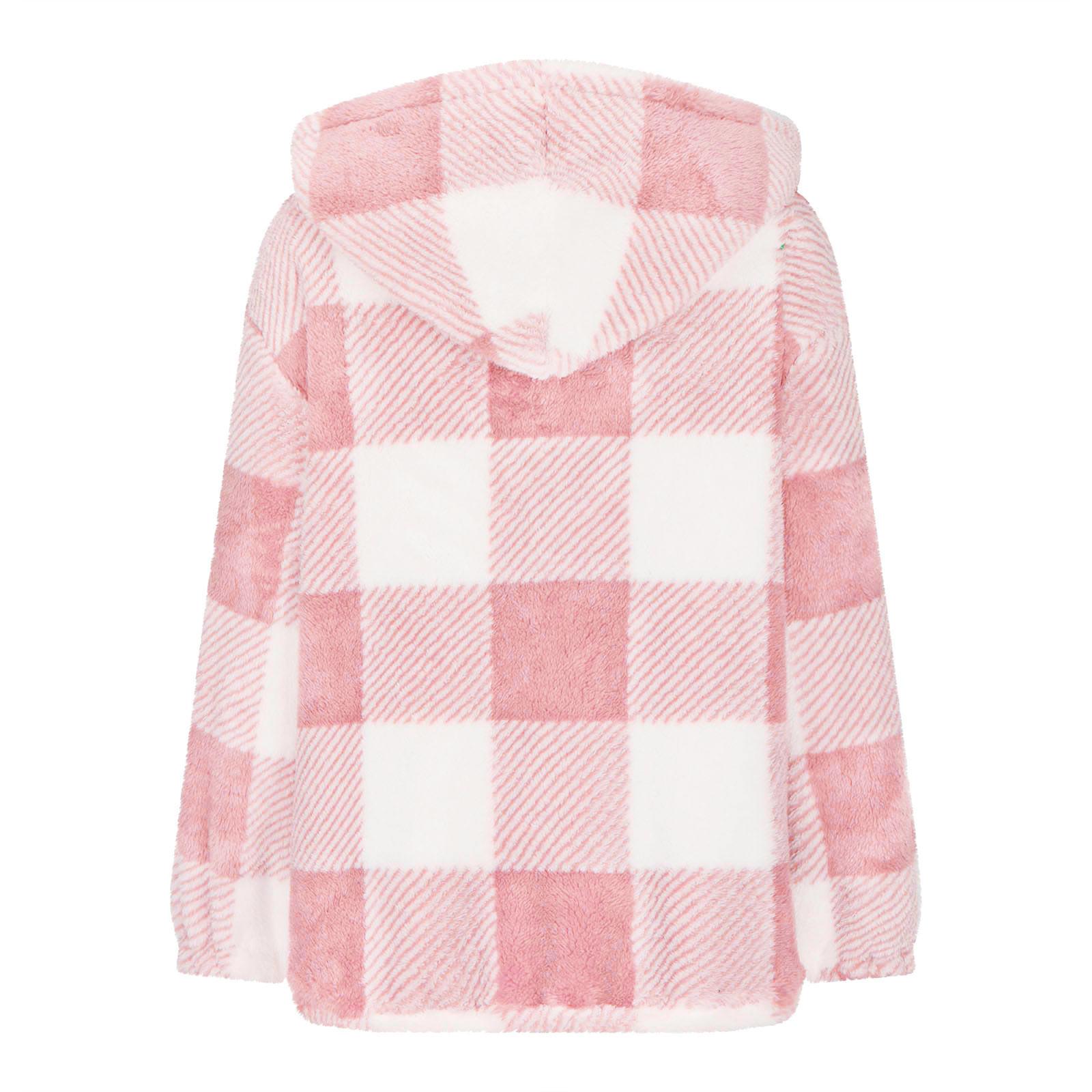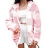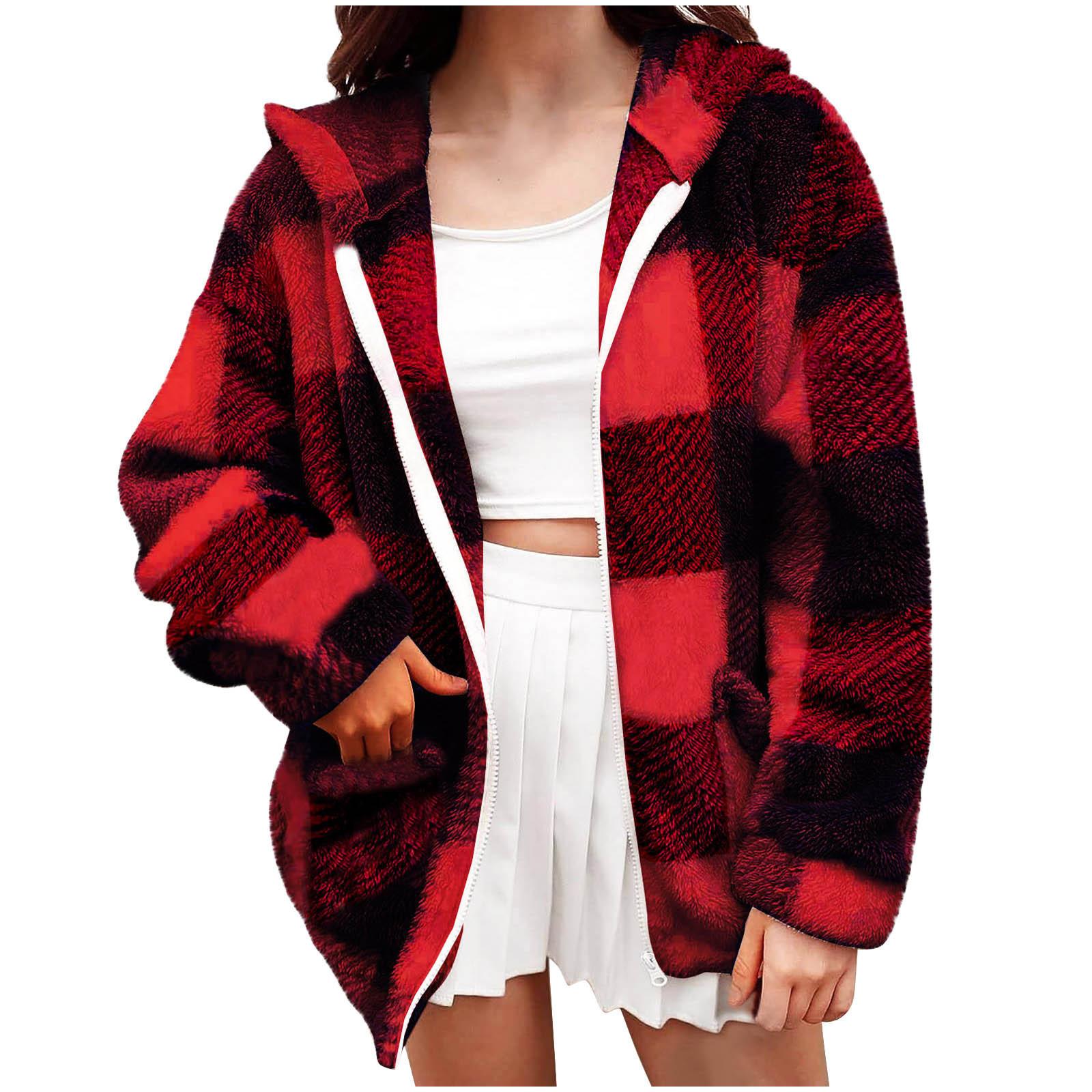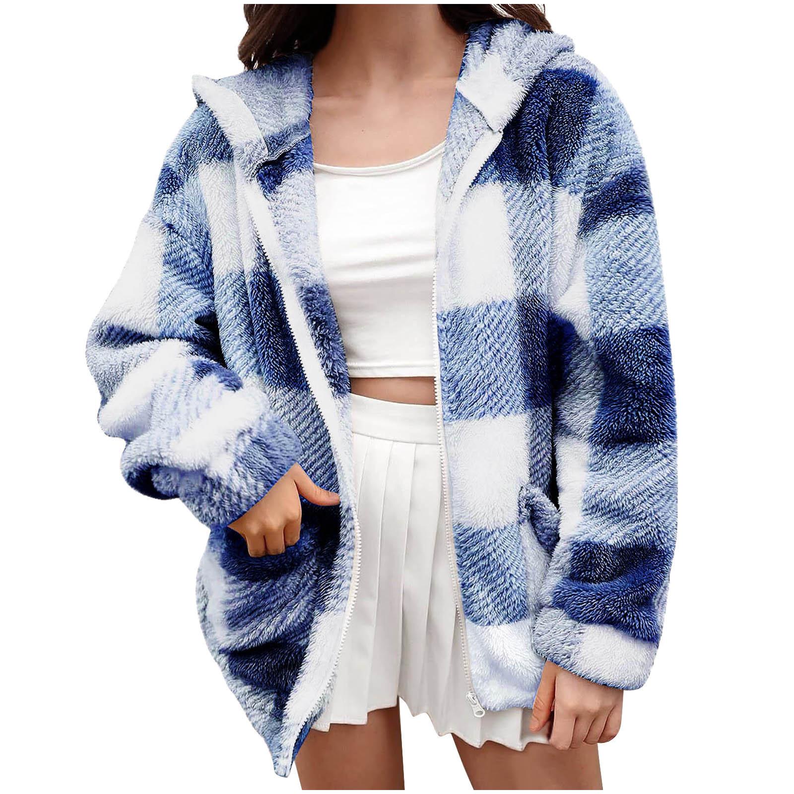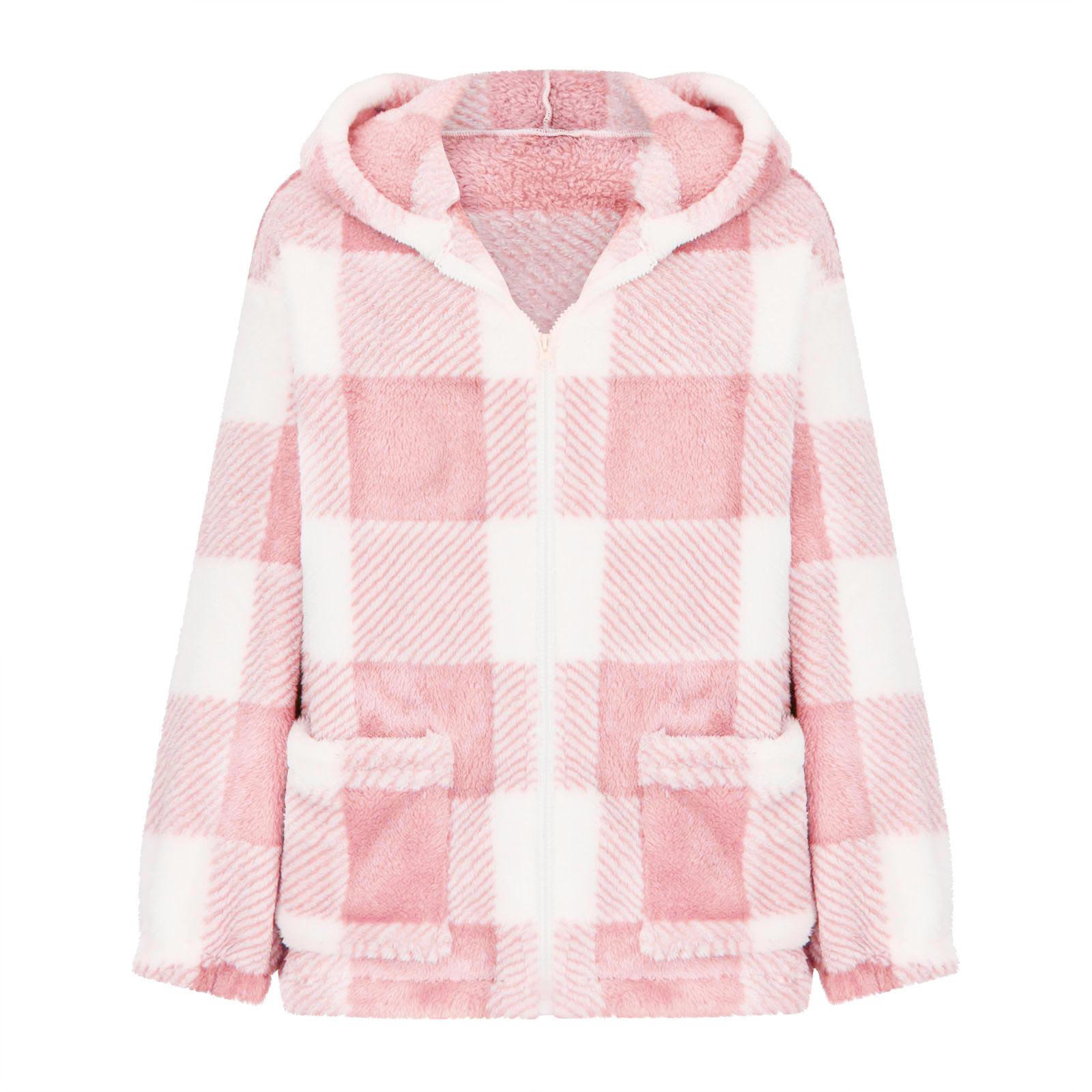 Novo 2024 Amazon Outono e Inverno Elegante Xadrez Solto Casual Manga Longa com Capuz Peludo Cardigan Jaqueta com Zíper