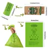 Cor: como a imagem principal Sacos Biodegradáveis para Resíduos de Animais de Estimação, Sacos para Cocô de Gato e Cachorro Sujeito ao estilo mostrado na imagem. Especificações do Saco de Lixo (Comprimento *Largura*Espessura) 230*330*0.015 mm 15 sacos por rolo, 4 rolos por caixa, 84 caixas por caixa Material: PEAD+EPI ou Amido de Milho +PLA+PBAT Aroma: Lavanda ou Jasmim, verde escuro sem aroma Mecanismo de biodegradação: Degradação fotoquímica dentro de 1-2 anos após o descarte