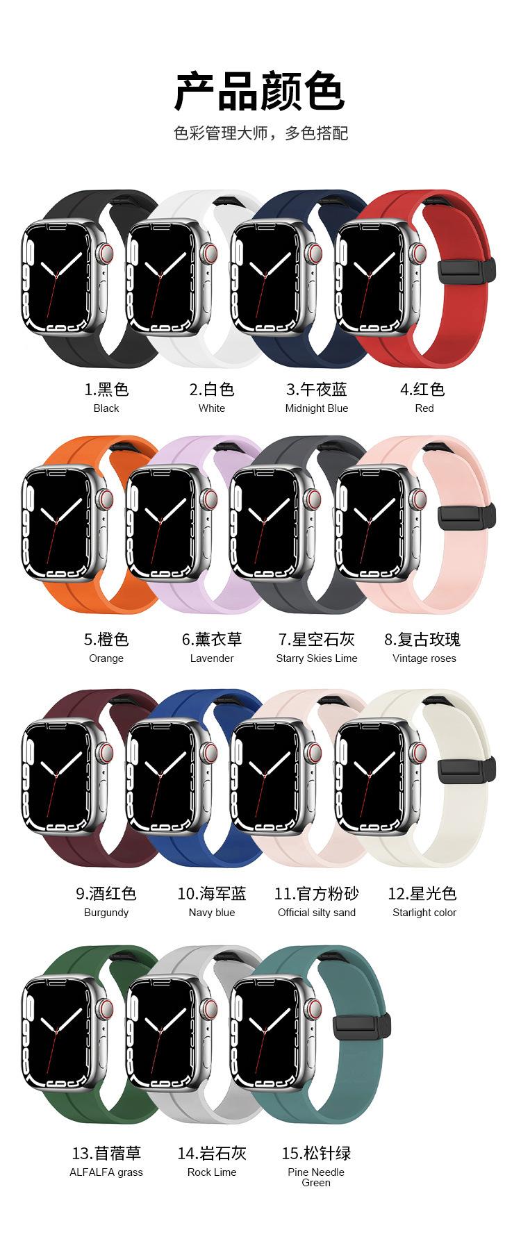 Adequado para Apple watchS8/7/6/5/SE/Ultra Pulseira de silicone ajustável com fivela magnética dobrável da Apple