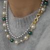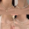 Colar de Pérolas Empilhadas em Camadas Duplas Retrô Luxo Acessível Nicho 2025 Novo Corrente Clavicular Sofisticada Colar de Pescoço Elegante