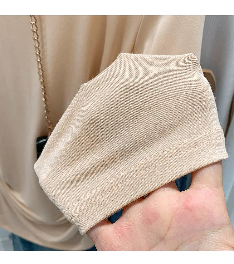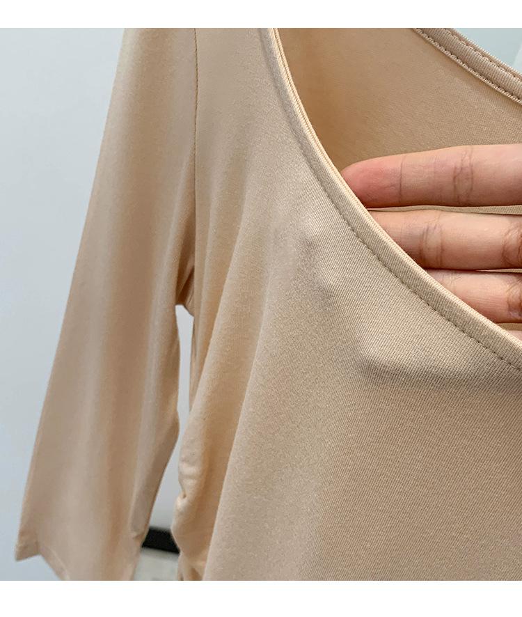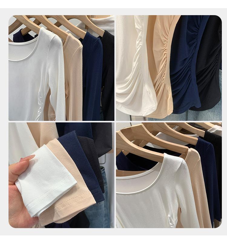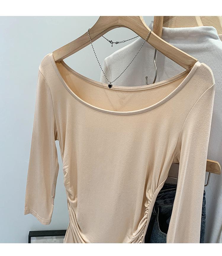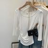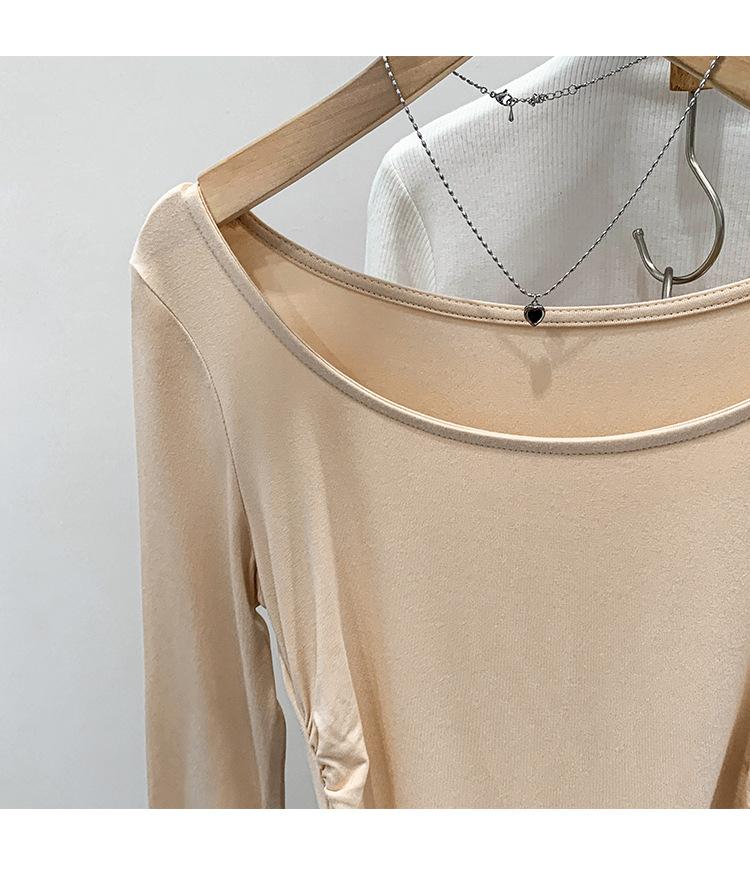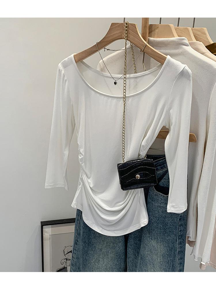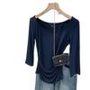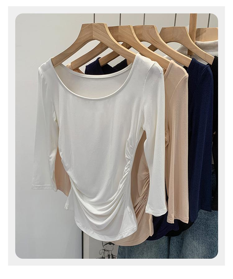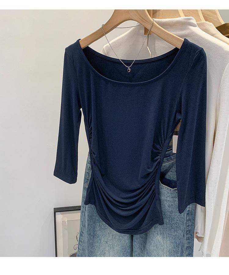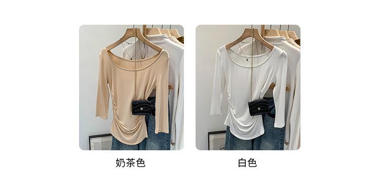 Camiseta feminina de estilo puro e sexy, decote U, ombro reto, roupa feminina moderna versão coreana 2025 outono nova, justa e que afina a silhueta, top de sete mangas