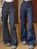 Calças Cargo Cinza Escuro de Cintura Alta Novas 2025 Estilo Americano Doce Cool Perna Reta Calças Casuais Emagrecendo Calças Flare Femininas para Mulheres Altas
