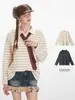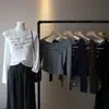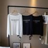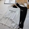 [Bi Zheng] 2025 Início do Outono Novo Estilo Coreano Ombro a Ombro Estampa de Letras Proteção Solar Ombro à Mostra Camiseta Fina de Manga Longa Feminina 4604