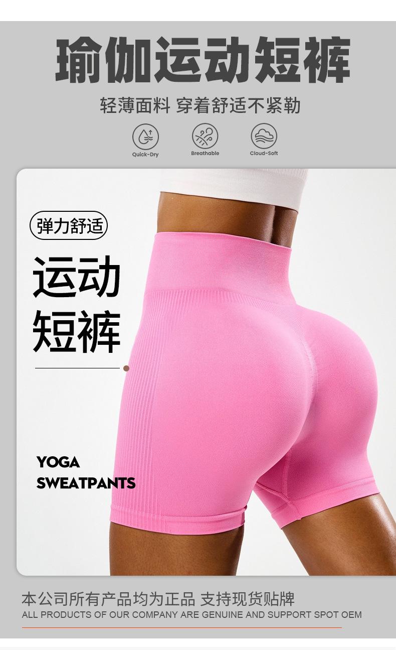 Shorts Esportivos de Yoga Sem Costura de Cintura Alta Antiderrapante Europeus e Americanos Femininos para Corrida ao Ar Livre Emagrecimento Calças de Fitness Bumbum Pêssego Shorts Três Pontos