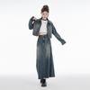 Jaqueta Jeans Vintage Estilo Hong Kong Feminina 2025 Início de Outono, Saia Jeans Longa Versátil e Fashion de Cintura Alta, Conjunto de Duas Peças para Mulheres