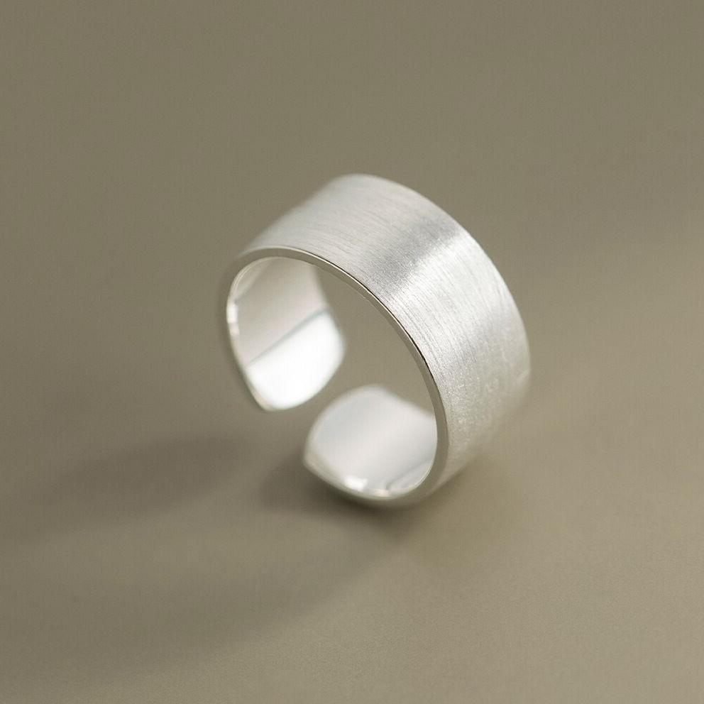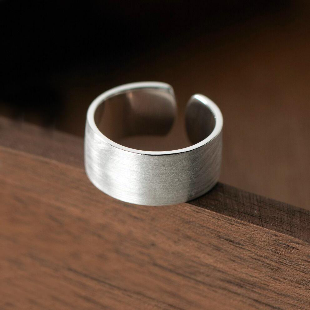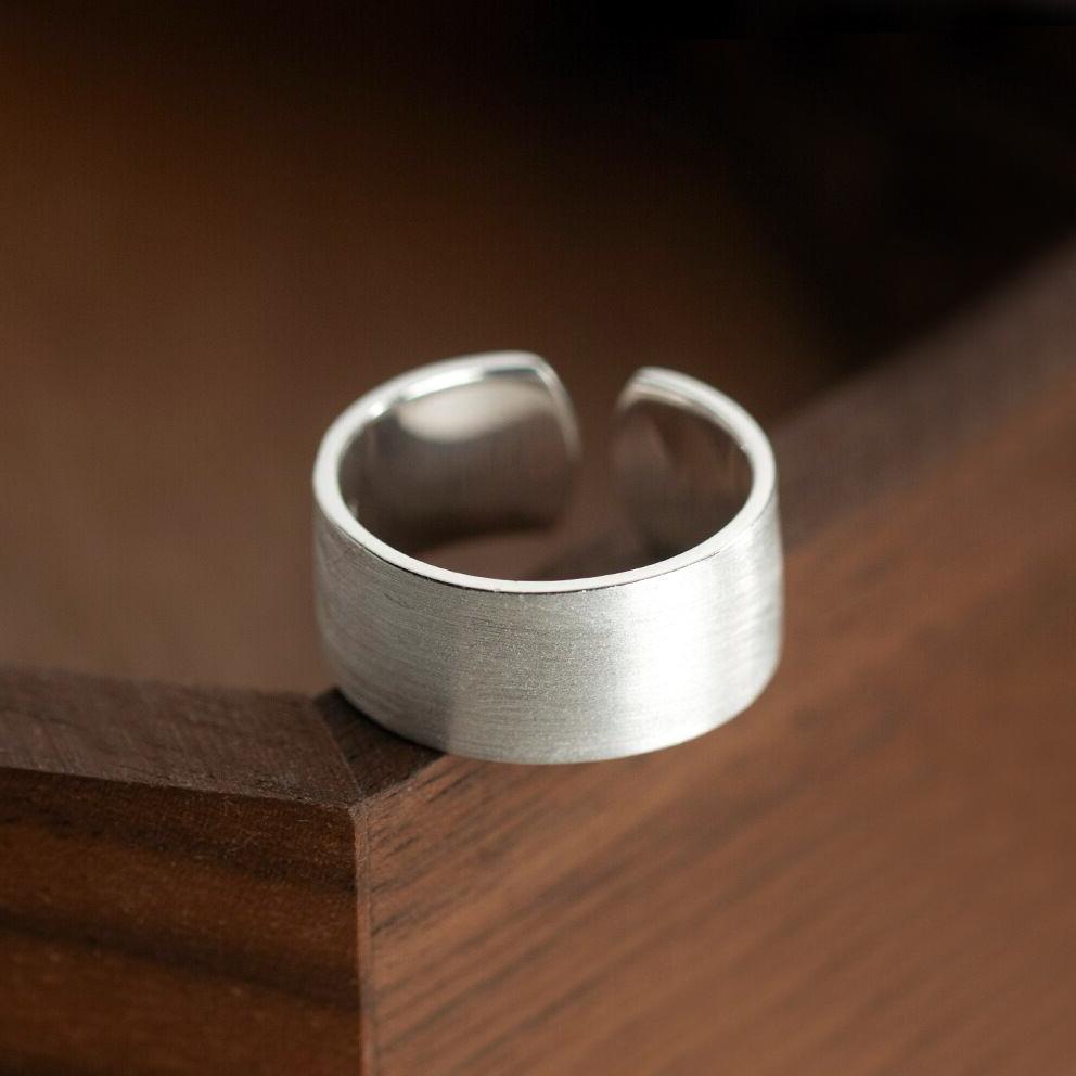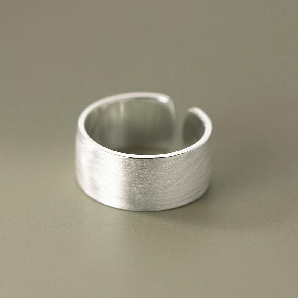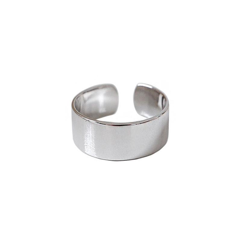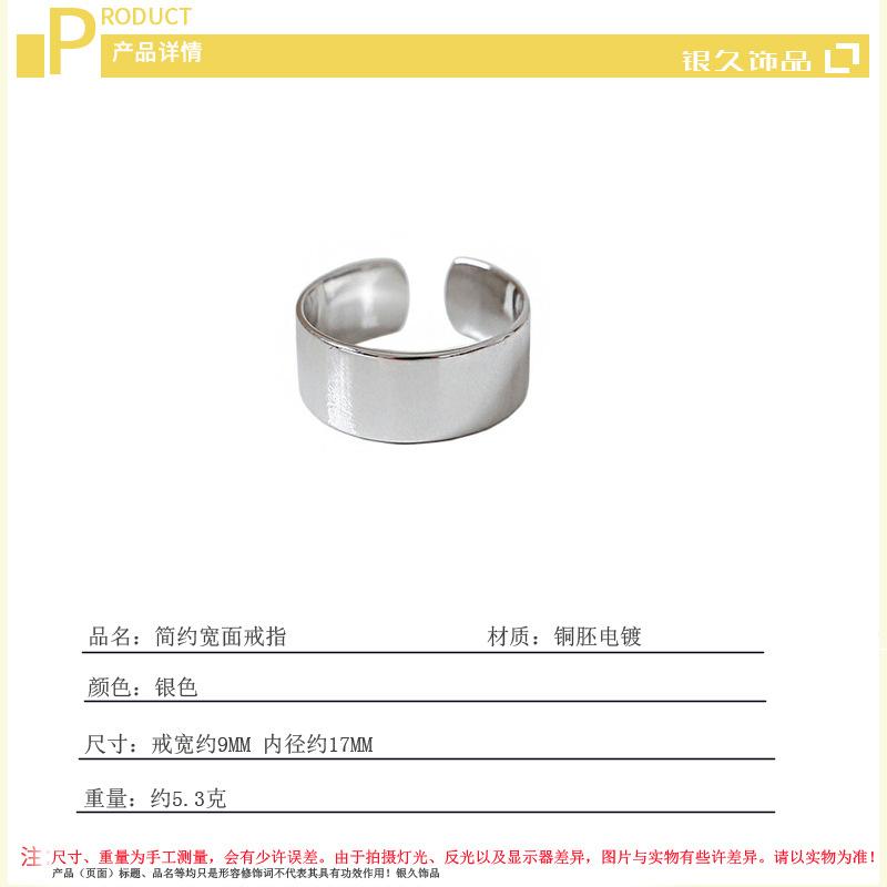 Anel Simples Estilo Coreano para Rosto Largo Design Elegante Vento Frio Prateado Desenho de Fio Geométrico Anel Aberto Feminino